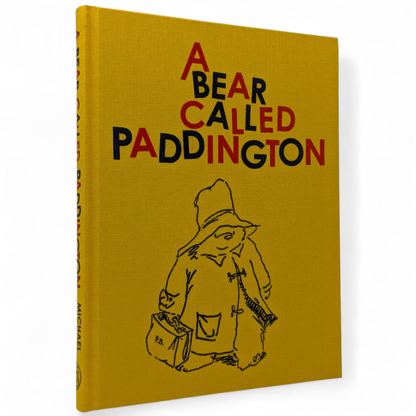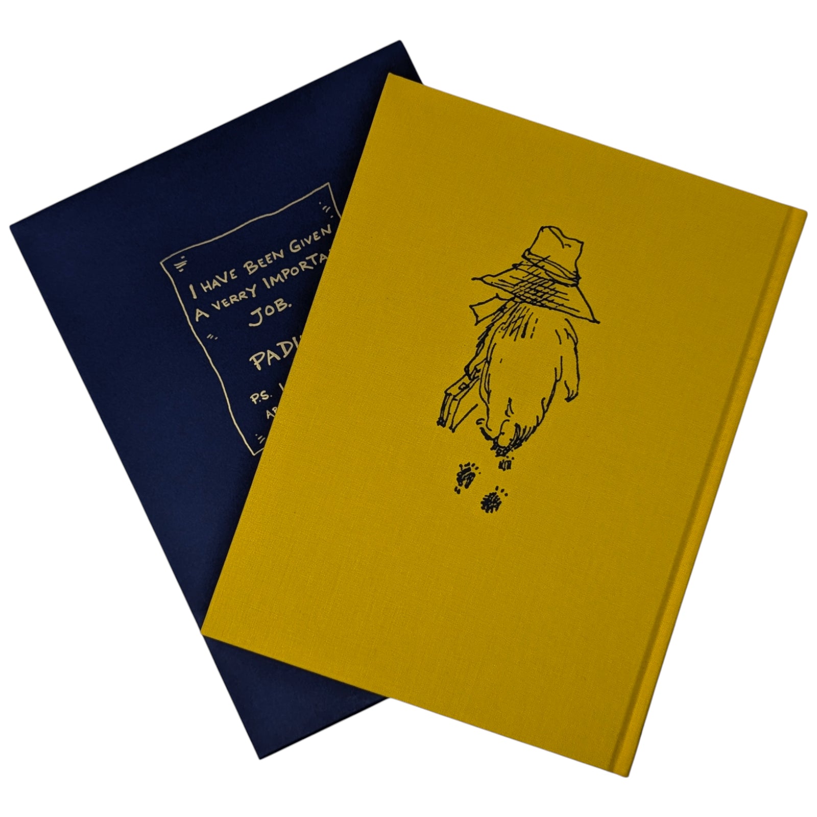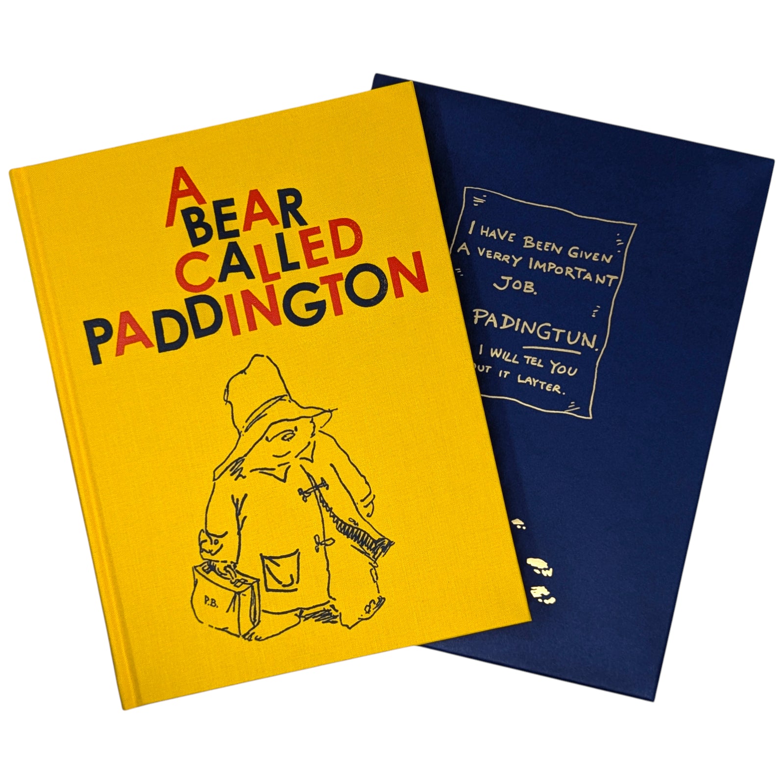 BOND, Michael. A Bear Called Paddington. London: The Folio Society, 2025. First printing thus. Introduced by Michael Morpurgo, extensively illustrated with Peggy Fortnum’s original integrated pictures, colourised and enlarged. 10 inches x 7½ inches, 128 pp. Bound in yellow cloth with red and blue lettering and illustrations of Paddington bear to upper and rear covers, printed orange endpapers with an illustration of a marmelade jar. Housed in a blue slipcase blocked with Peggy Fortnum's illustration of lettering and pawprints.