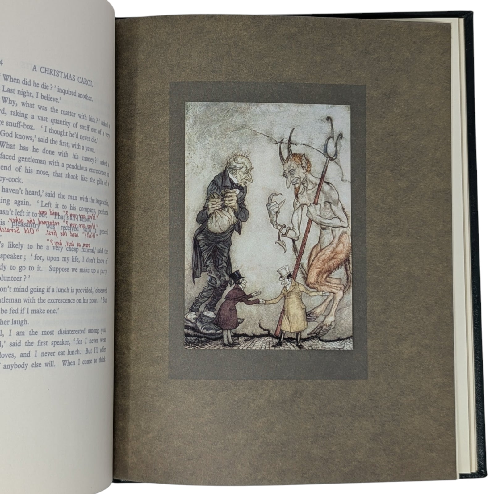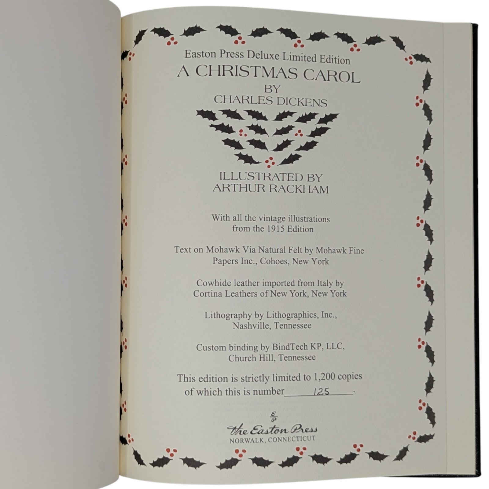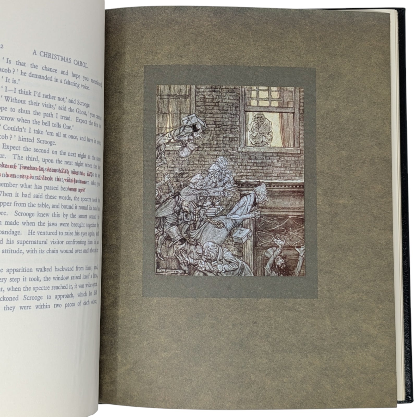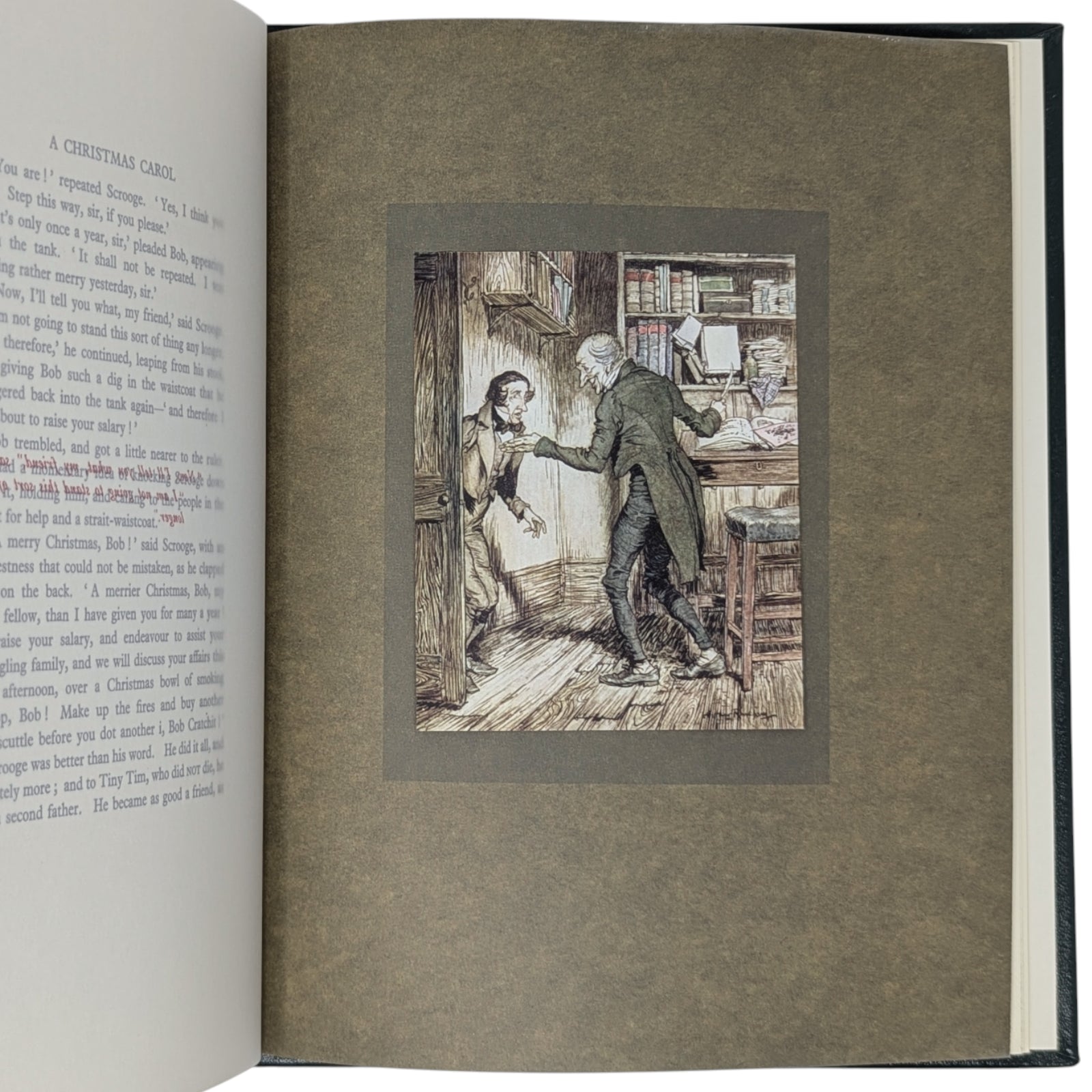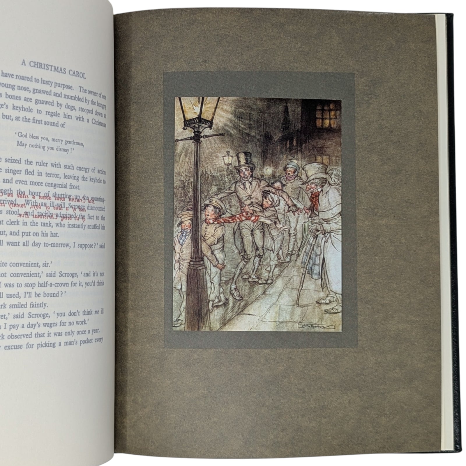 DICKENS, Charles. A Christmas Carol. Connecticut: Easton Press, 2021. A stunning reproduction of the 1915 edition illustrated by Arthur Rackham. With 12 hand-tipped color plates and other black-and-white images. Limited to 1200 hand-numbered copies.