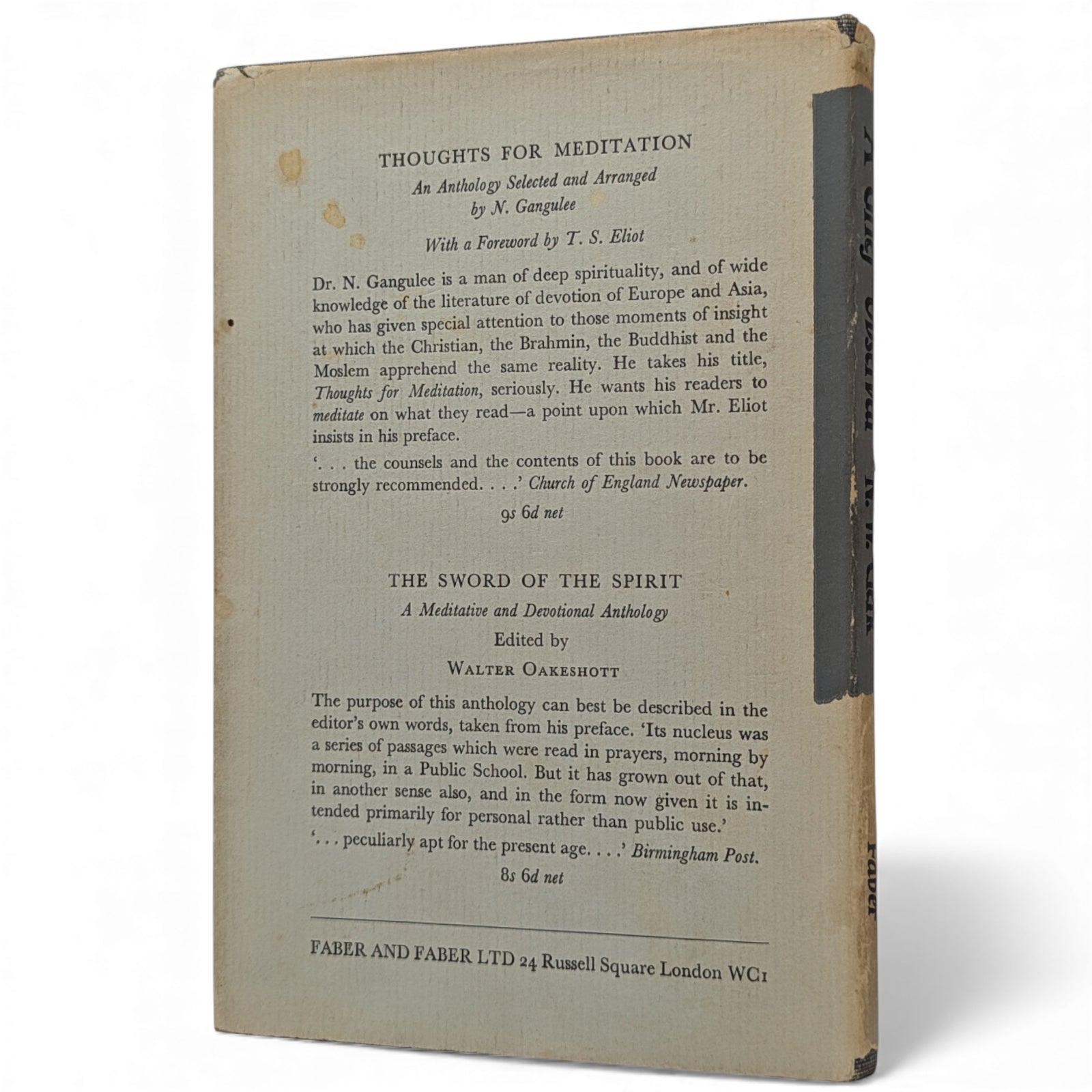 Hardback, 20.5 x 13.8 cm, 60 pp. Publisher's cloth, gilt titles to spine; with unclipped (8s 6d net) dustwrapper. A good copy, with binding square and firm, with mild crushing to spine tips, a few spots of foxing to the closed text block, offsetting to prelims, and one inscription penned to FFEP and one to title page (attempting to clarify that N.W. Clerk is in fact C.S. Lewis); else a clean and bright copy. In the typographical dust jacket that has a tanned spine and a few stains to panels, is a little chipped to the extremities with small areas of loss to spine tips, and has a few small, closed tears, as pictured. Still a very presentable copy.