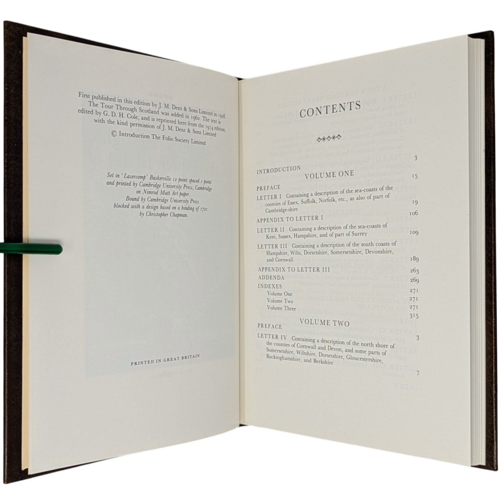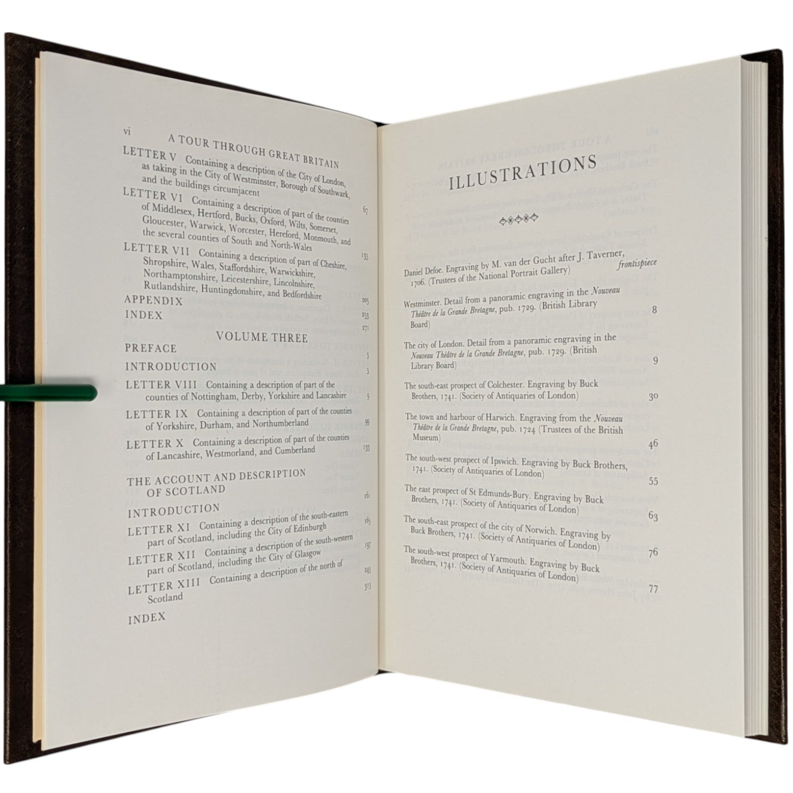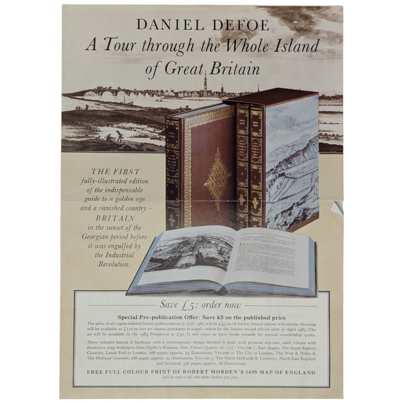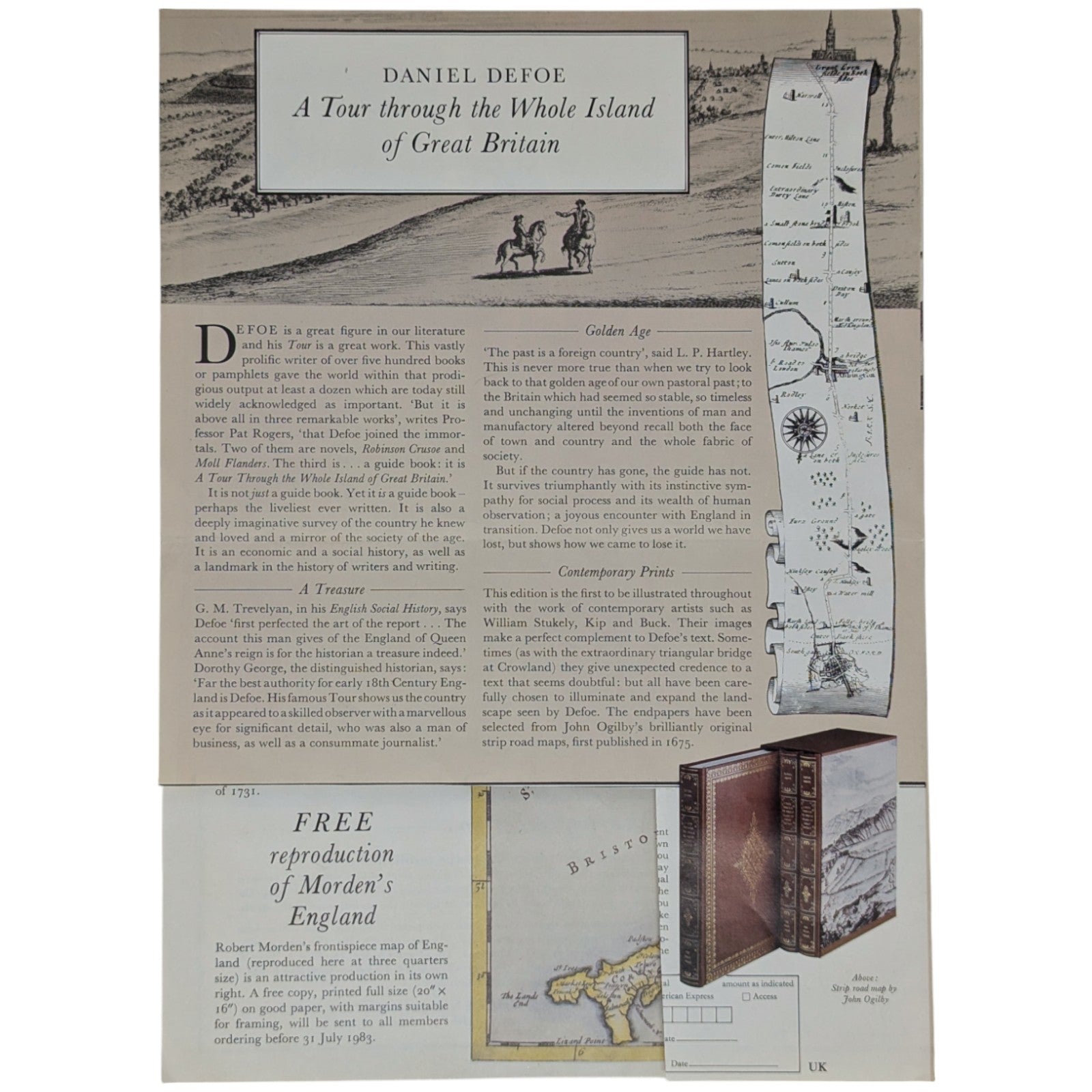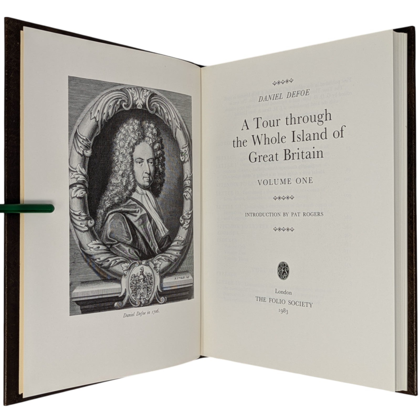 Daniel Defoe, A Tour Through the Whole Island of Great Britain. London: The Folio Society, 1983. Limited, special edition offered by the Society in a special binding of full dark brown Morocco, in a dark brown cloth-covered slip case.