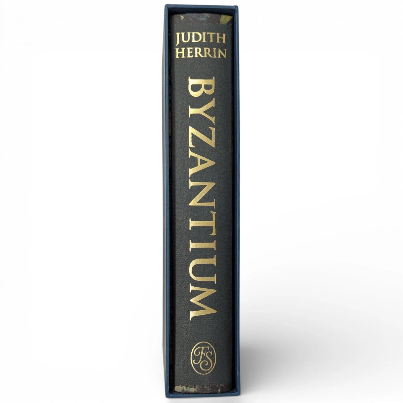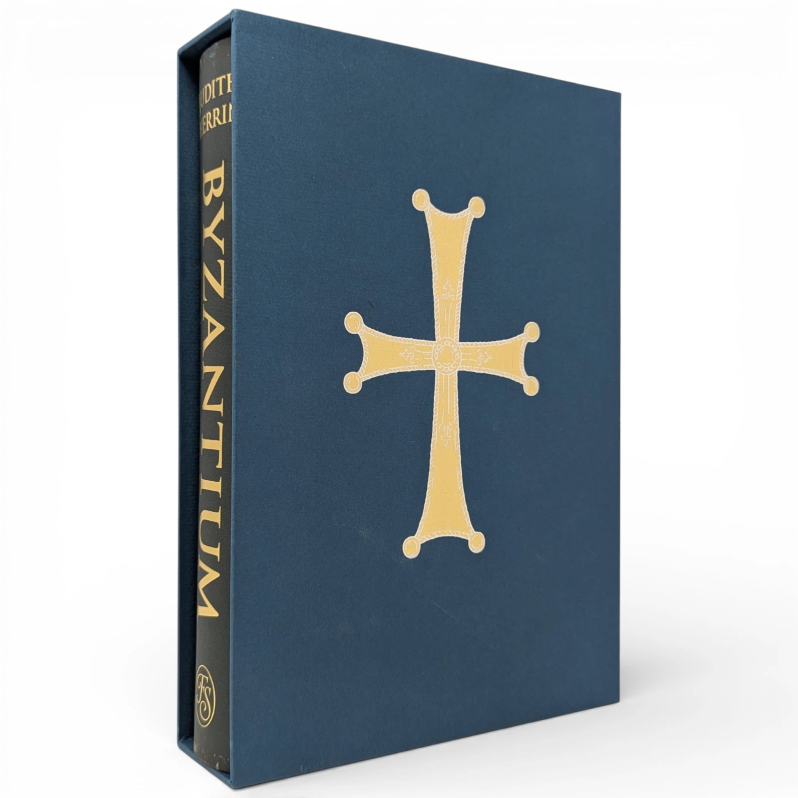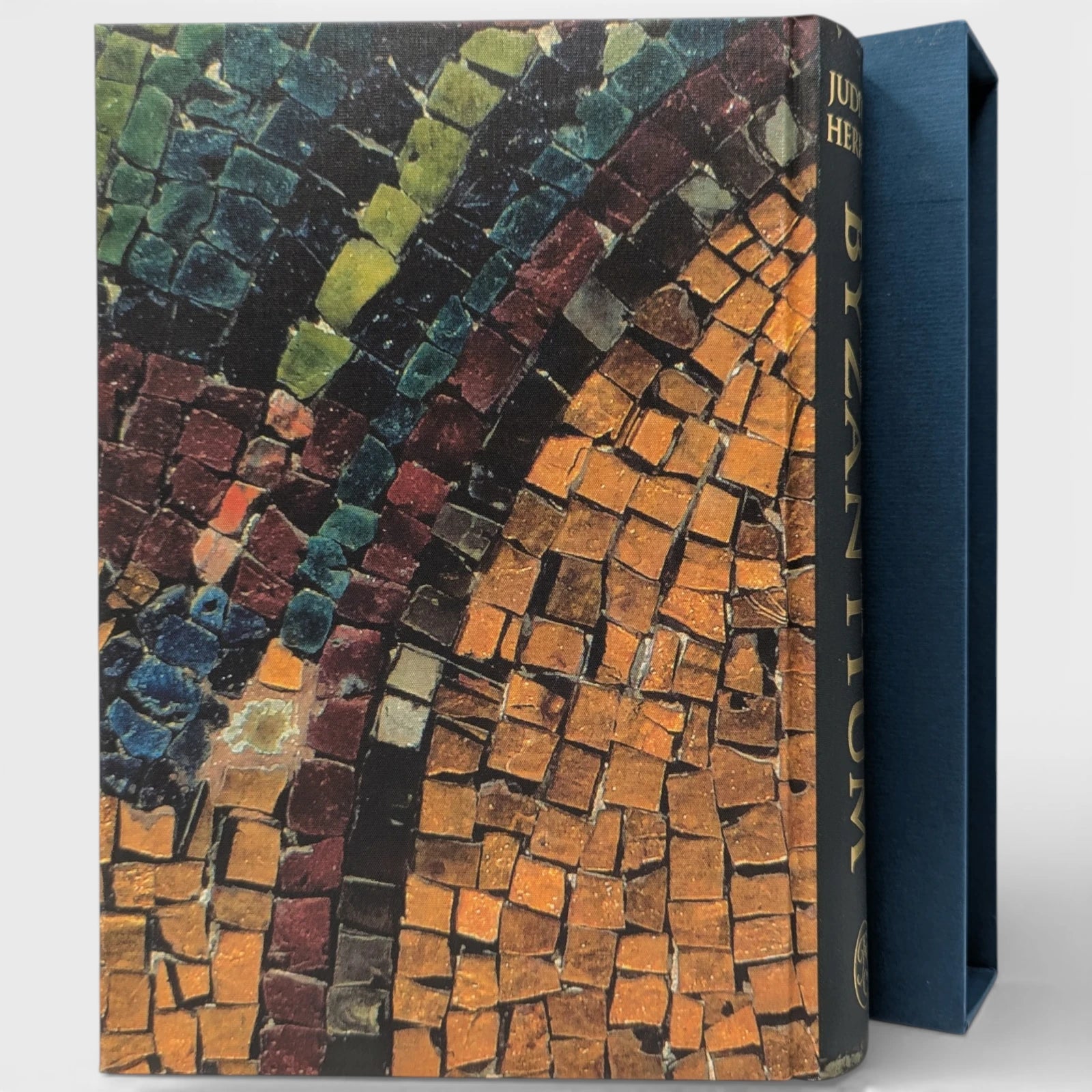 HERRIN, Judith. Byzantium, The Surprising Life of a Medieval Empire. London: The Folio Society, 2022. First printing thus. With a new preface by the author. 253 × 177 × 43 mm. Pp. [i–v] vi–xxv [xxvi], [1–3] 4–428 [429–430]: [14] leaves of colour plates. Type: Bembo Book with Baker Signet for display. Printed and bound by Neografia in full cloth printed with detail from mosaic and blocked in gold; dark blue-green endleaves. Dark blue-green slip case blocked with cross in silver and gold. The plates reproduce photographs ranging from mosaics and frescoes to manuscripts and metal work. Six maps are on pages [389–399] and further black and white illustrations are in the text.