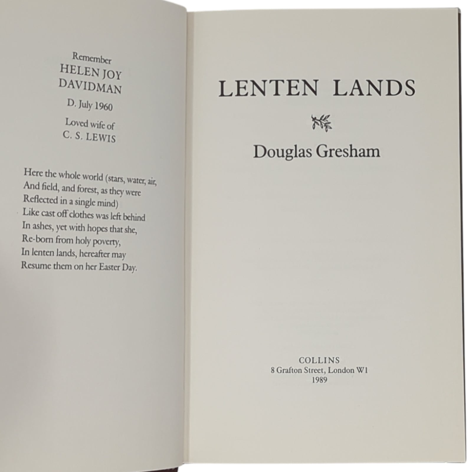 - GRESHAM, Douglas. Lenten Lands. Collins, 1989. First reprint. A fine, clean and uninscribed book in like dustjacket.