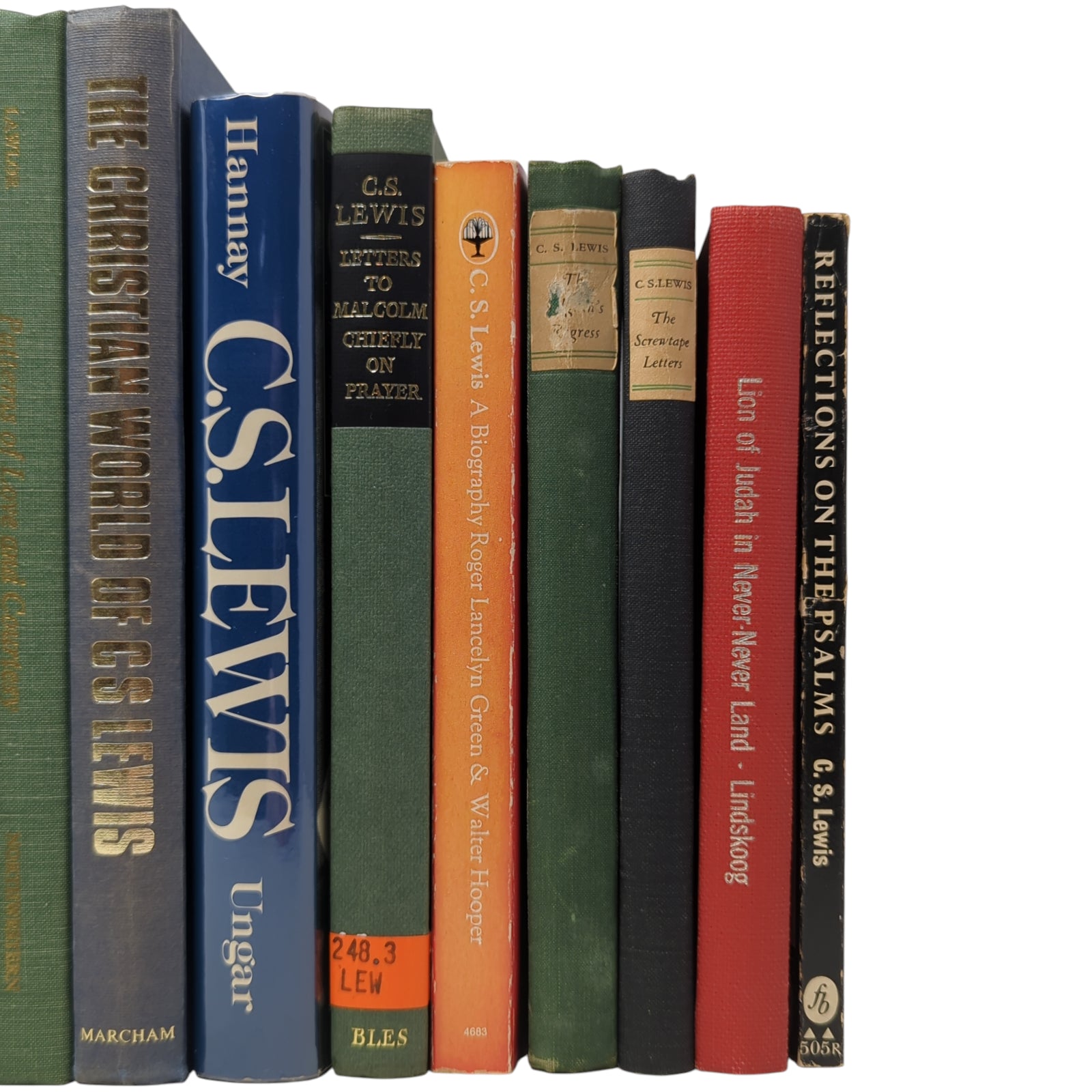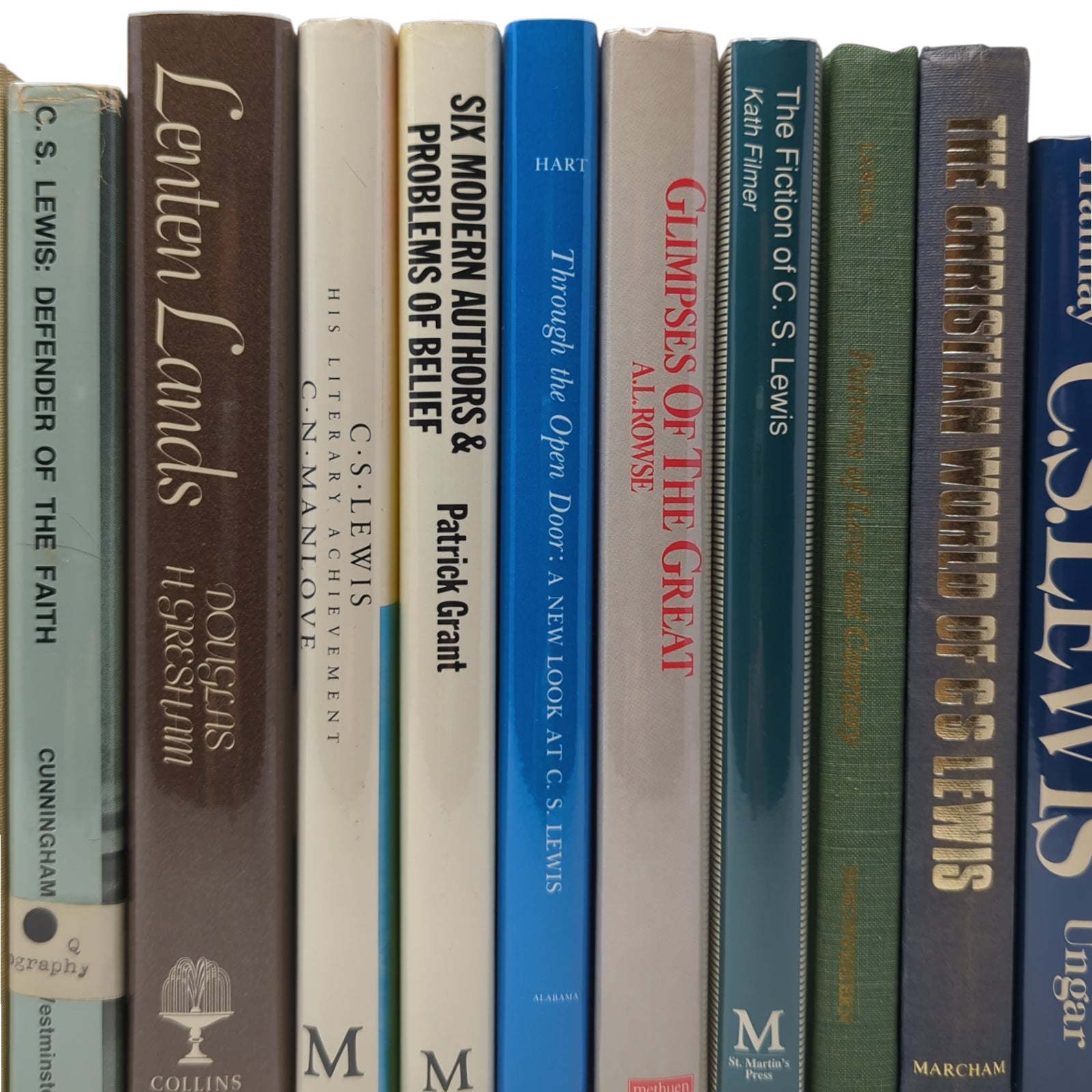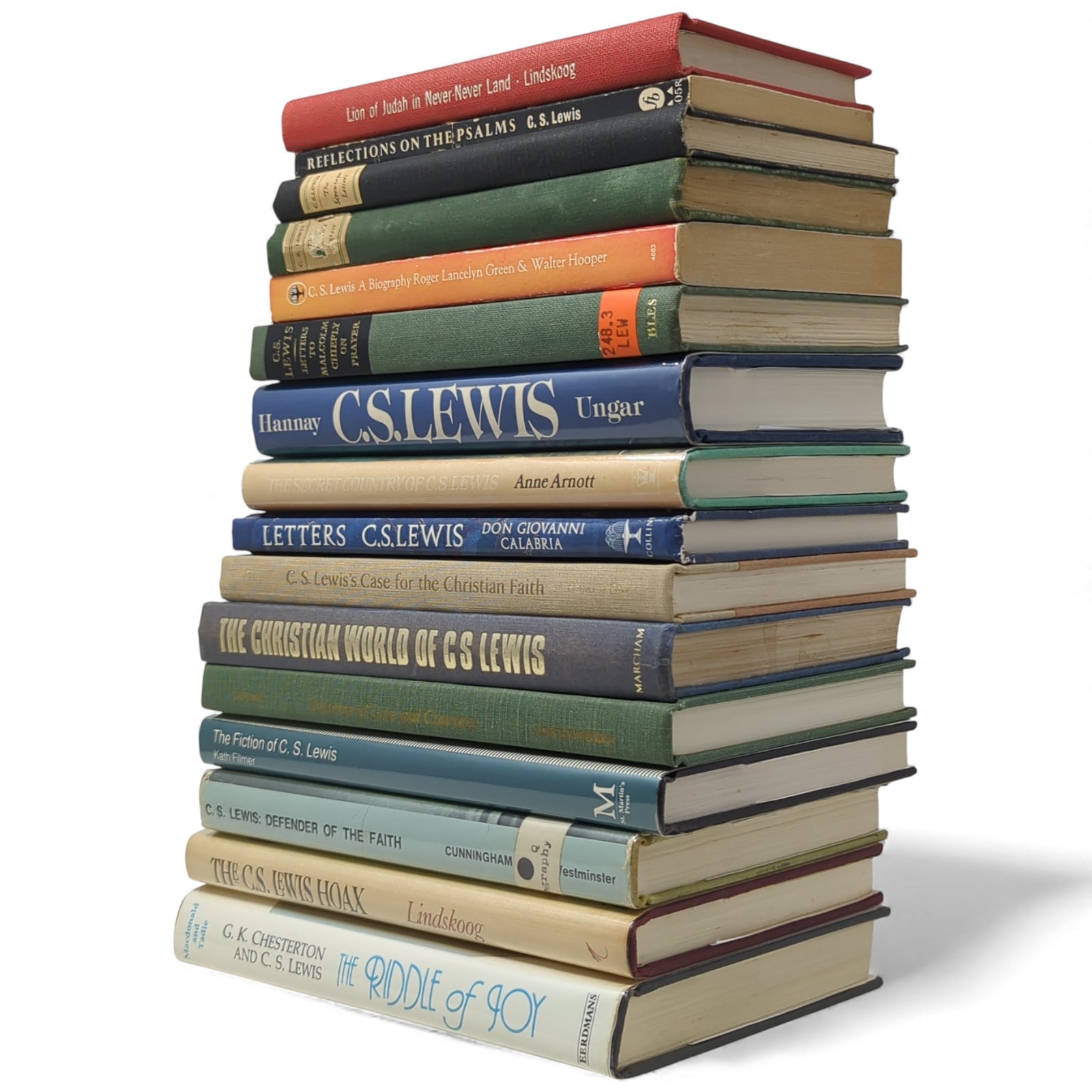 A mixed group of 25 titles by and related to C. S. Lewis, covering biography, literary criticism, correspondence, and more, in both hardback and paperback. Conditions range from fine copies to well-used ex-library examples - some with foxing and/or the odd inscription; reflecting a working reference collection rather than a bundle in collectible condition.