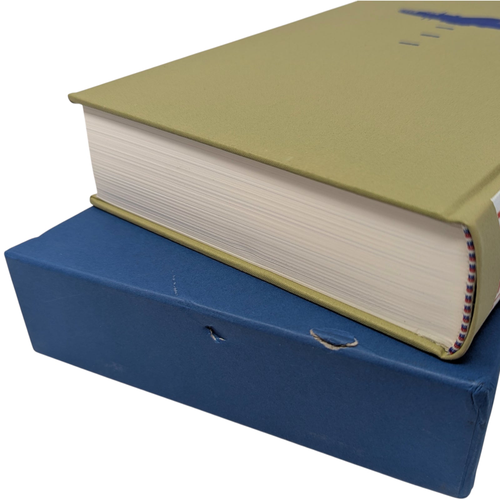A very good minus copy with a bump to the bottom corner of the rear cover and a few tiny marks to top edge. In a damaged - but structurally-sound - slipcase with several bumps and a few marks to panels, as well as two small punctures to bottom.