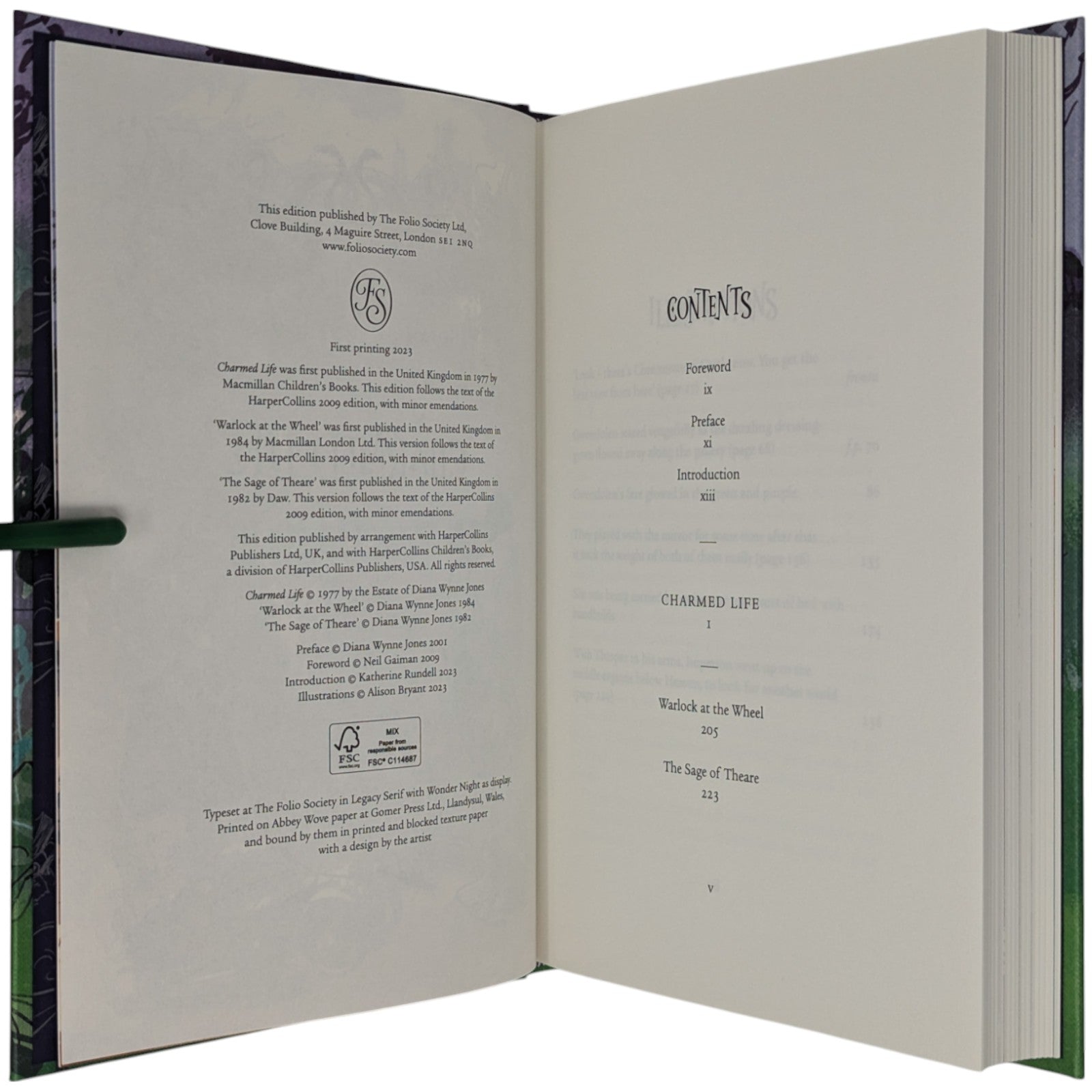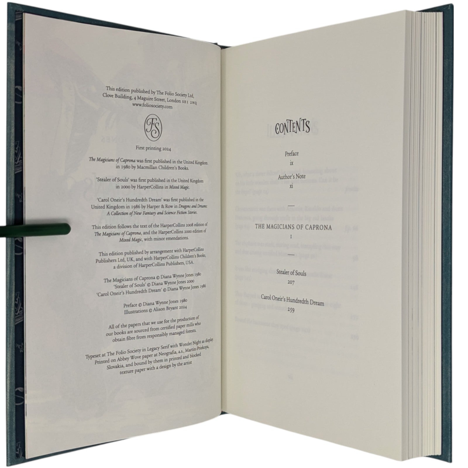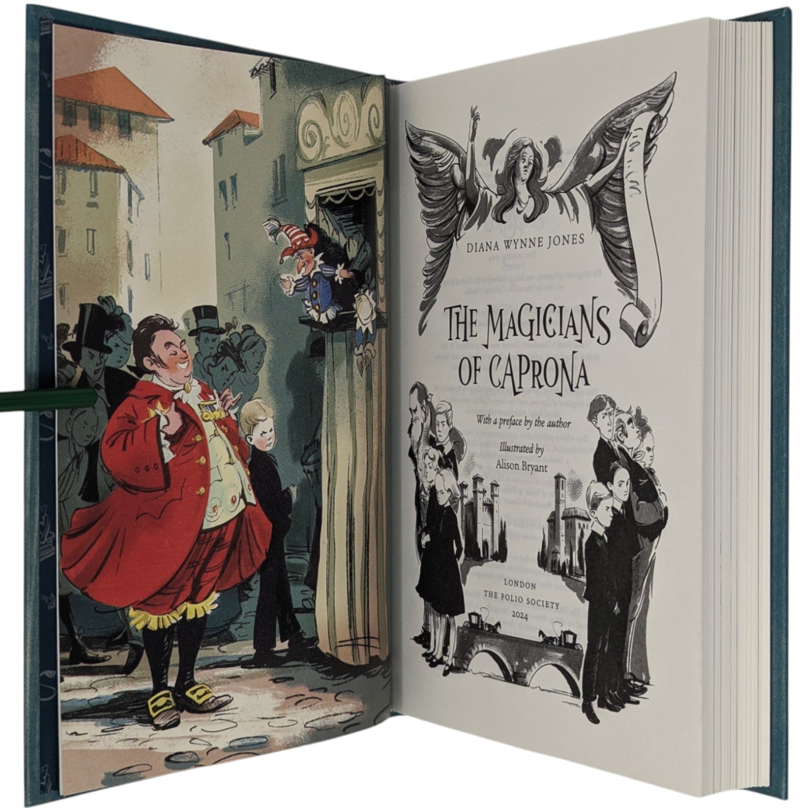 The first three books in The Chrestomanci series currently being published by The Folio Society. Written by Diana Wynne Jones and illustrated by Alison Bryant, these are Charmed Life, The Magicians of Caprona, and Witch Week.