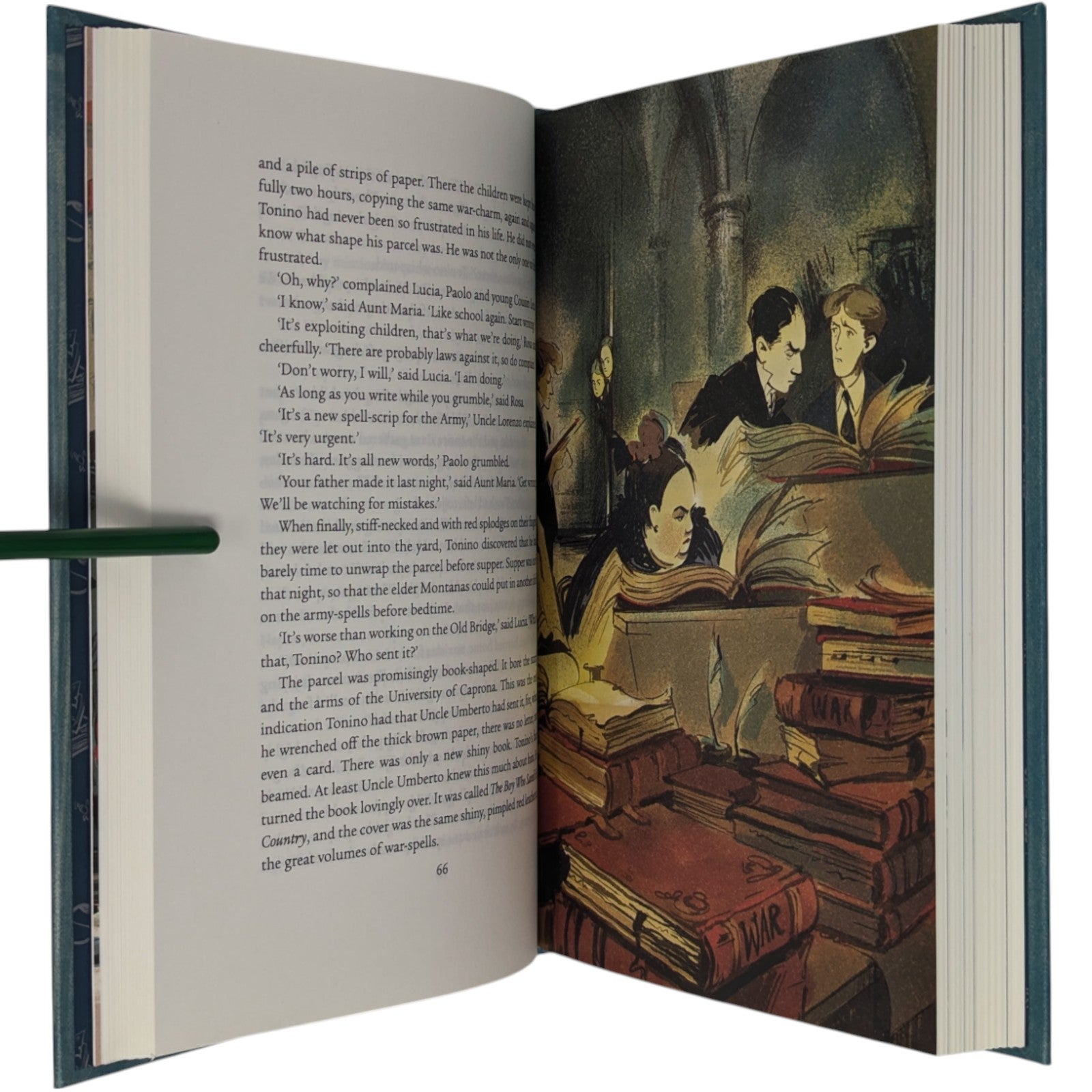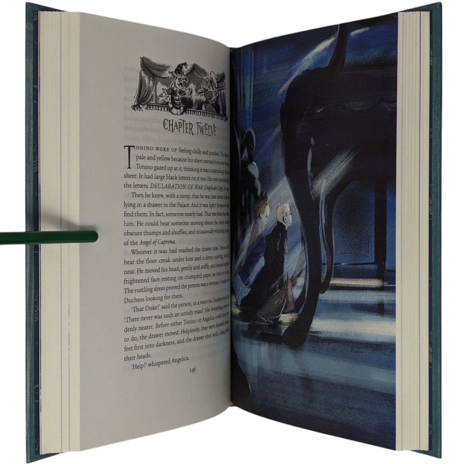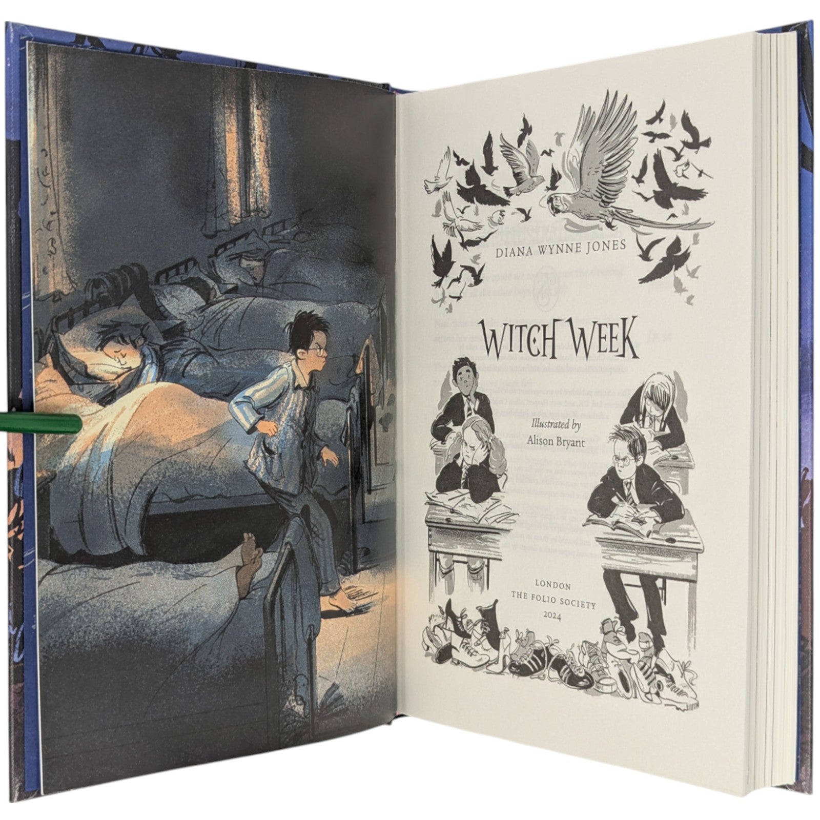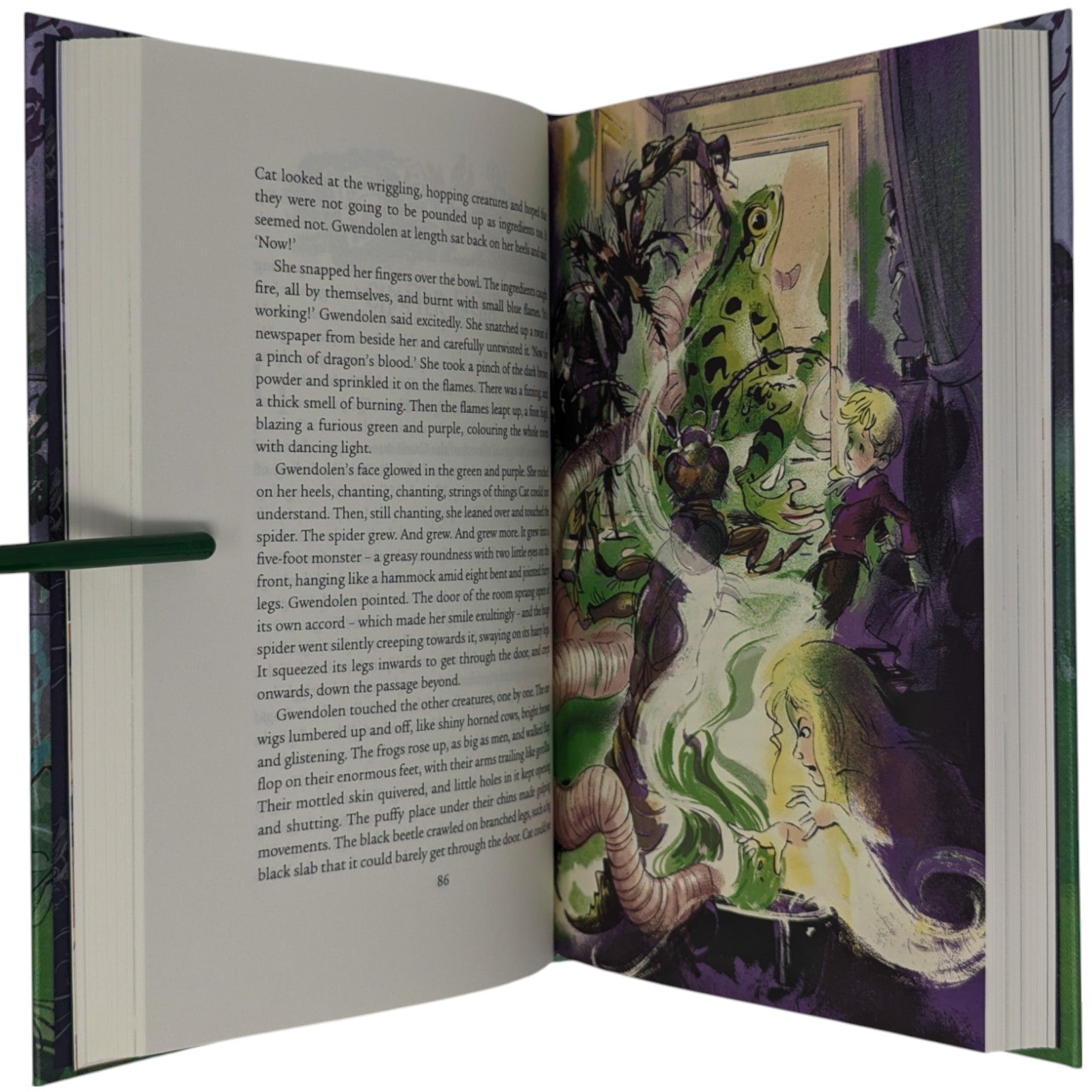 The first three books in The Chrestomanci series currently being published by The Folio Society. Written by Diana Wynne Jones and illustrated by Alison Bryant, these are Charmed Life, The Magicians of Caprona, and Witch Week.