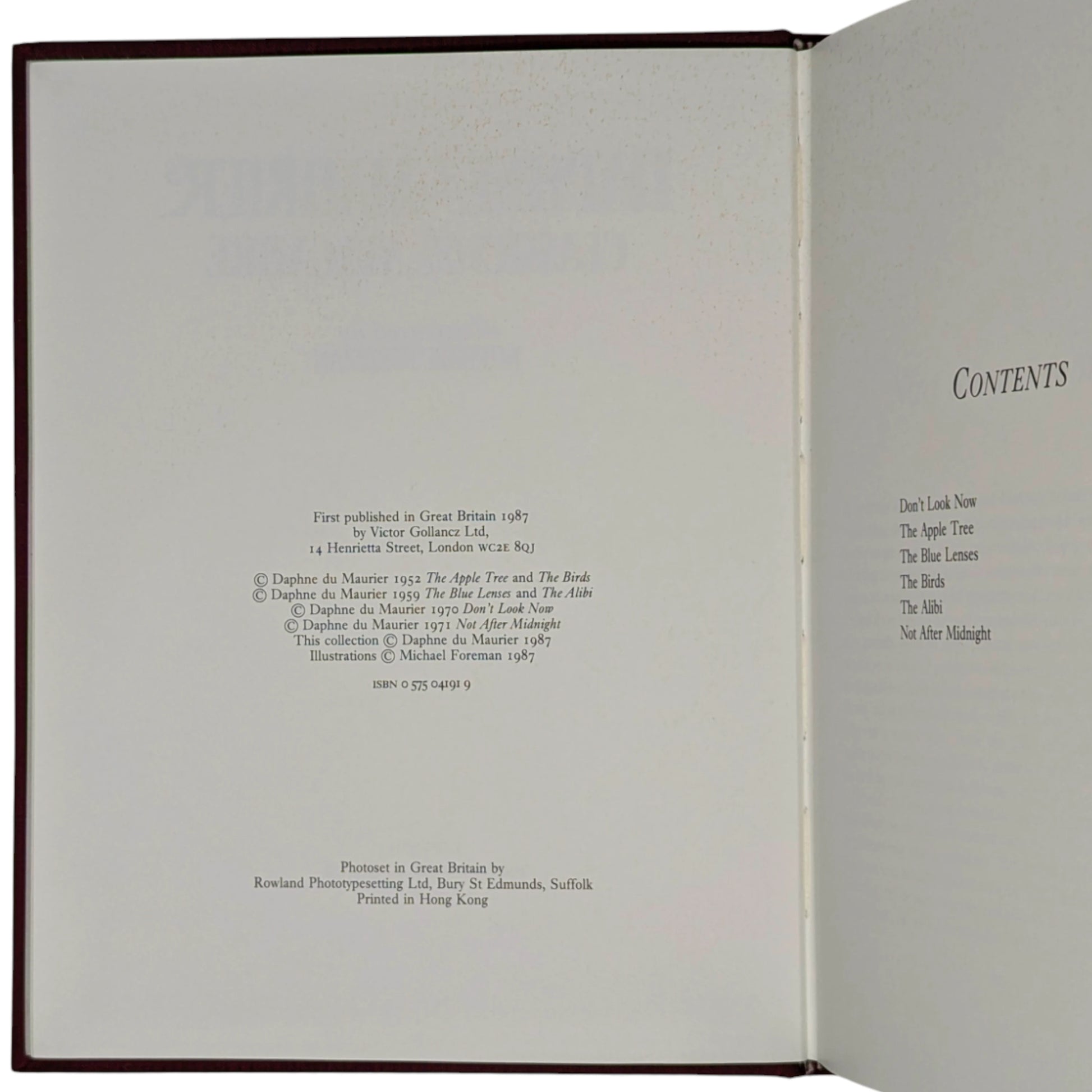 Collects six stories from the author of Rebecca and Jamaica Inn: 'Don't Look Now', "The Apple Tree," "The Blue Lenses," The Birds," "The Alibi" and "Not After Midnight".
