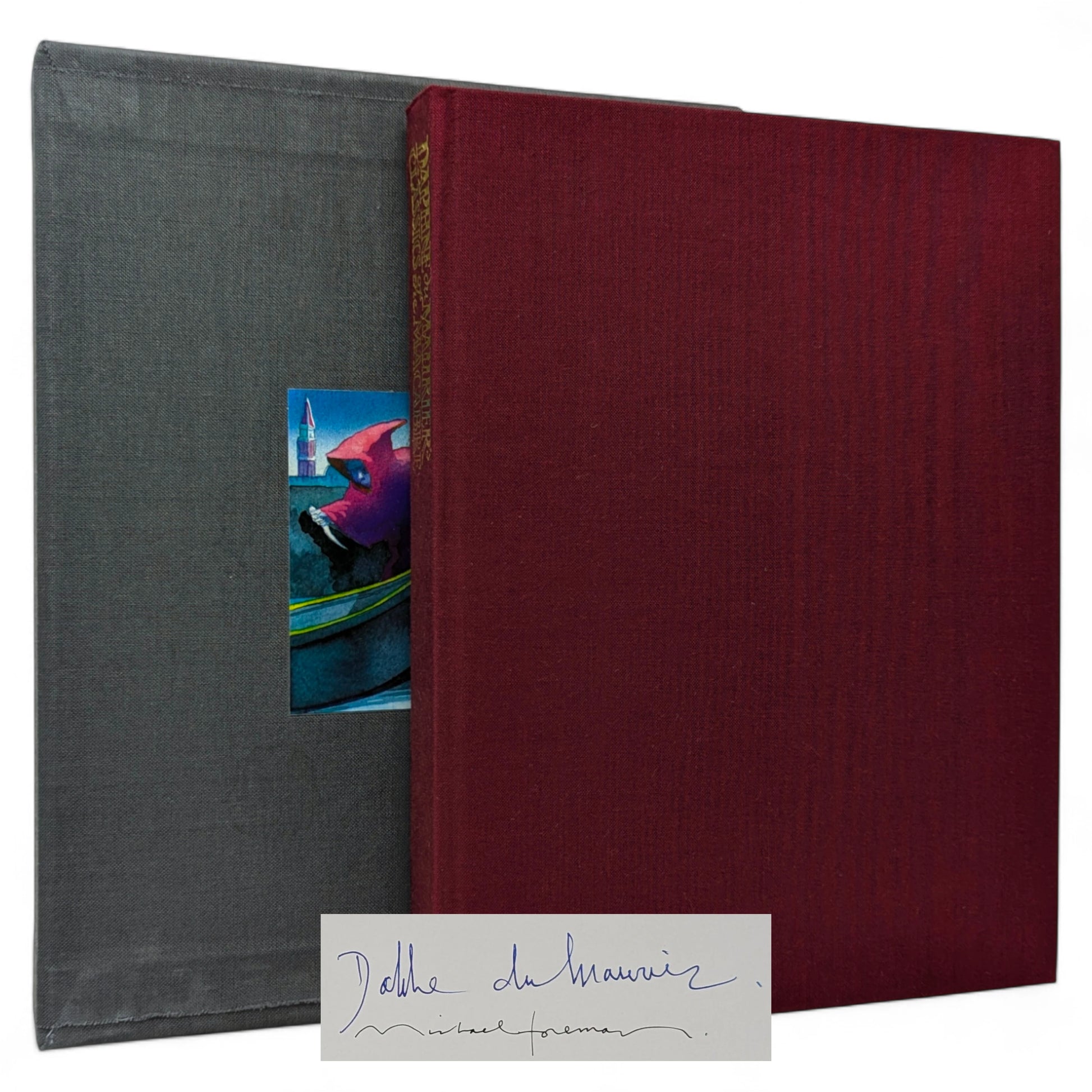 Publisher's burgundy cloth, gilt titles to spine, all edges gilt, illustrated endpapers, signed on a limitation page by Du Maurier and Foreman. Housed in a grey cloth slipcase with an illustration tipped to one panel. A near-fine copy, binding firm and secure, pages clean and uninscribed, with the spine tips ever-so-slightly bumped. In a slightly worn cloth slipcase that has a few faded stains, as pictured, and the seams lightly worn.