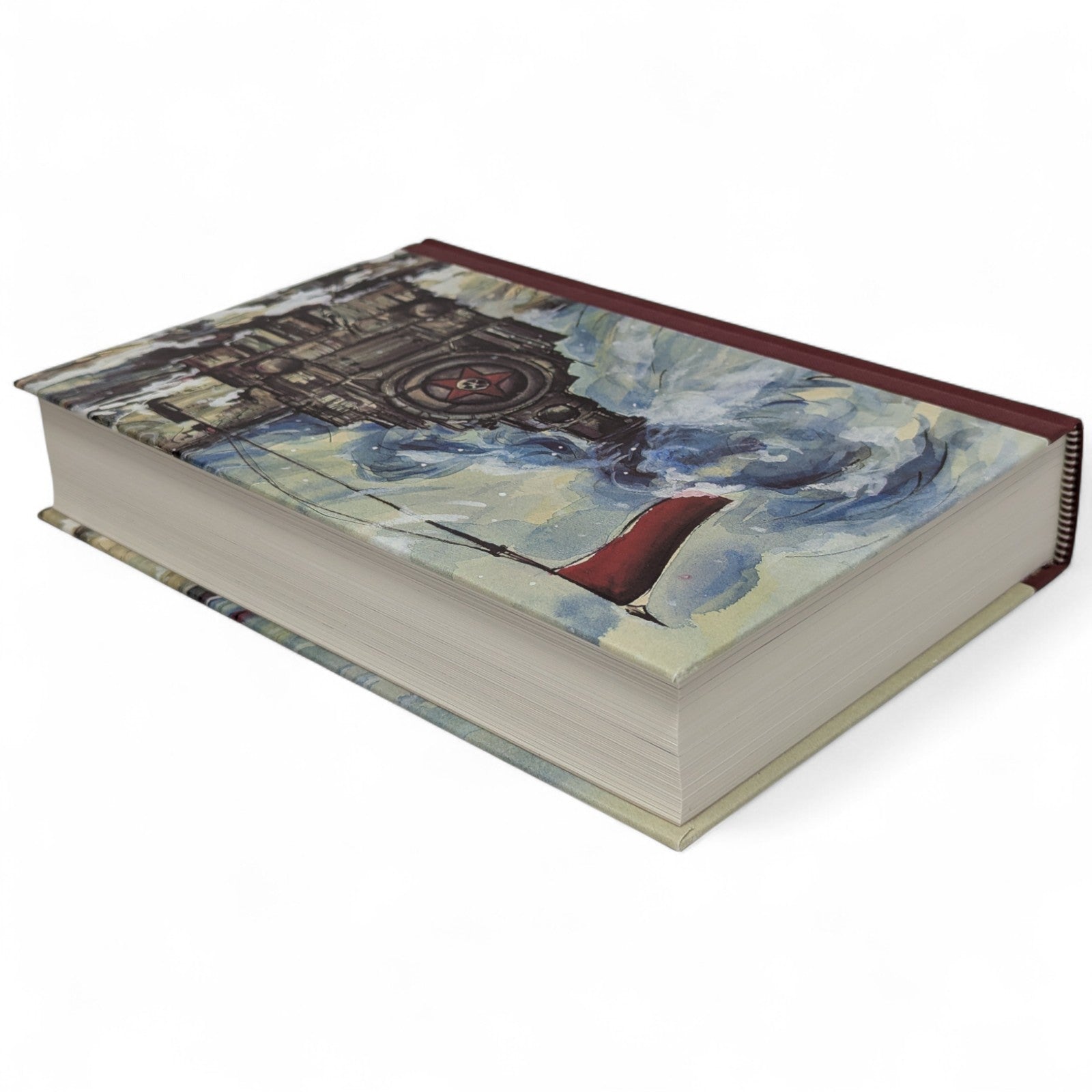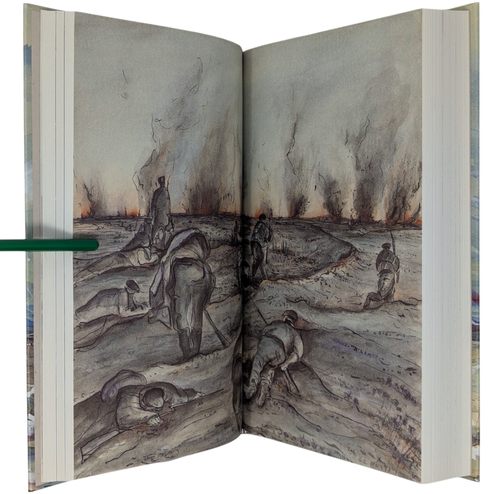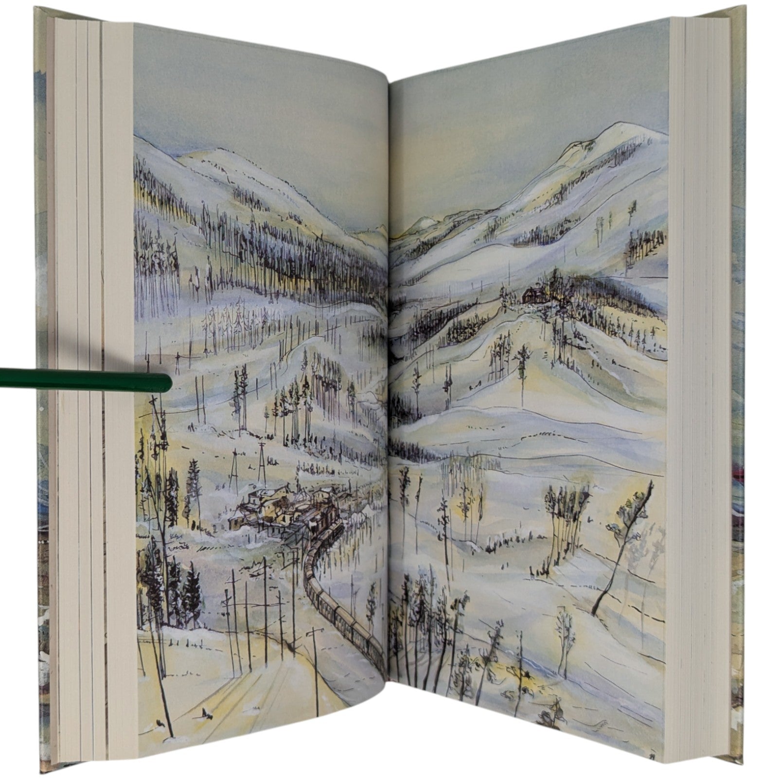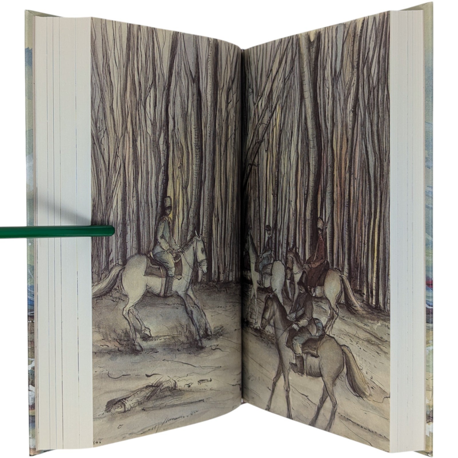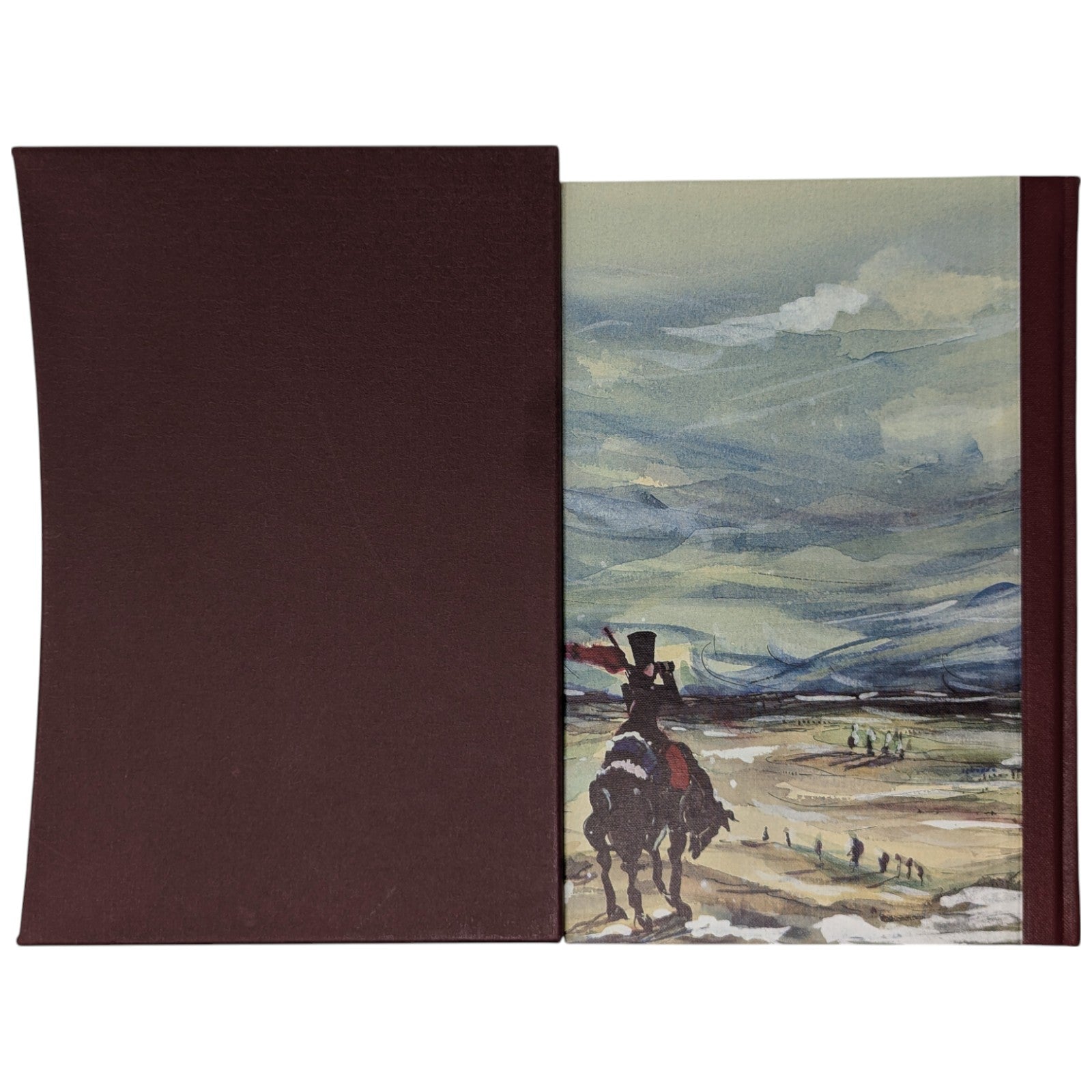 Boris Pasternak, Doctor Zhivago. London: The Folio Society, 1997. Second printing thus, 1997. Translated from the Russian by Max Hayward and Manya Harari, introduction by Yevgeny Yevtushenko, illustrations by Véronique Bour. 239 × 165 × 44 mm. Pp. [i–viii] ix–xx, 1–460: [9] leaves of colour plates (facing p. [iii] and between pp. 36–37, 68–69, 100–101, 180–181, 244–245, 292–293, 356–357 and 388–389). Type: Ehrhardt with Latin Condensed for display. Printed by the Saint Edmundsbury Press. Bound by Hunter and Foulis in quarter dark red cloth, embossed white paper boards with a design in colour by Bour; grey-brown flecked endleaves. Dark red slip case. All the plates except for the frontispiece are double-page. Part of the edition was later issued as one of the Great Russian novels.