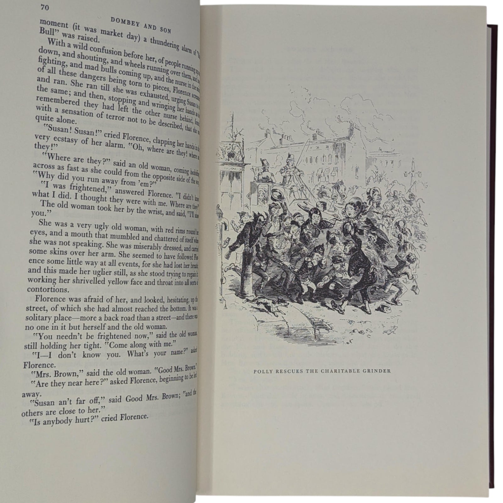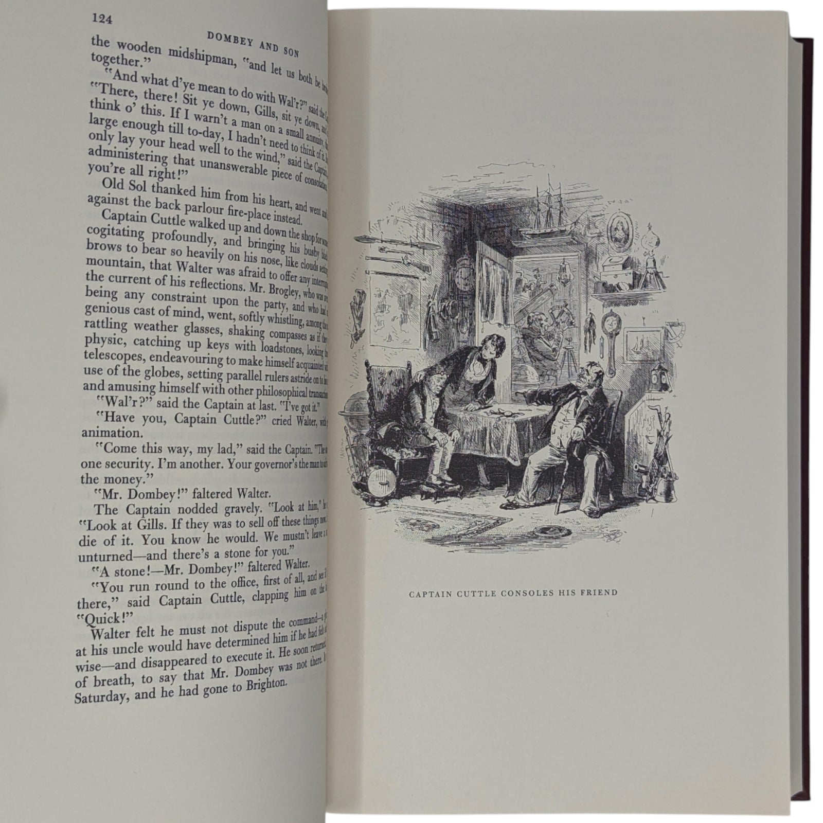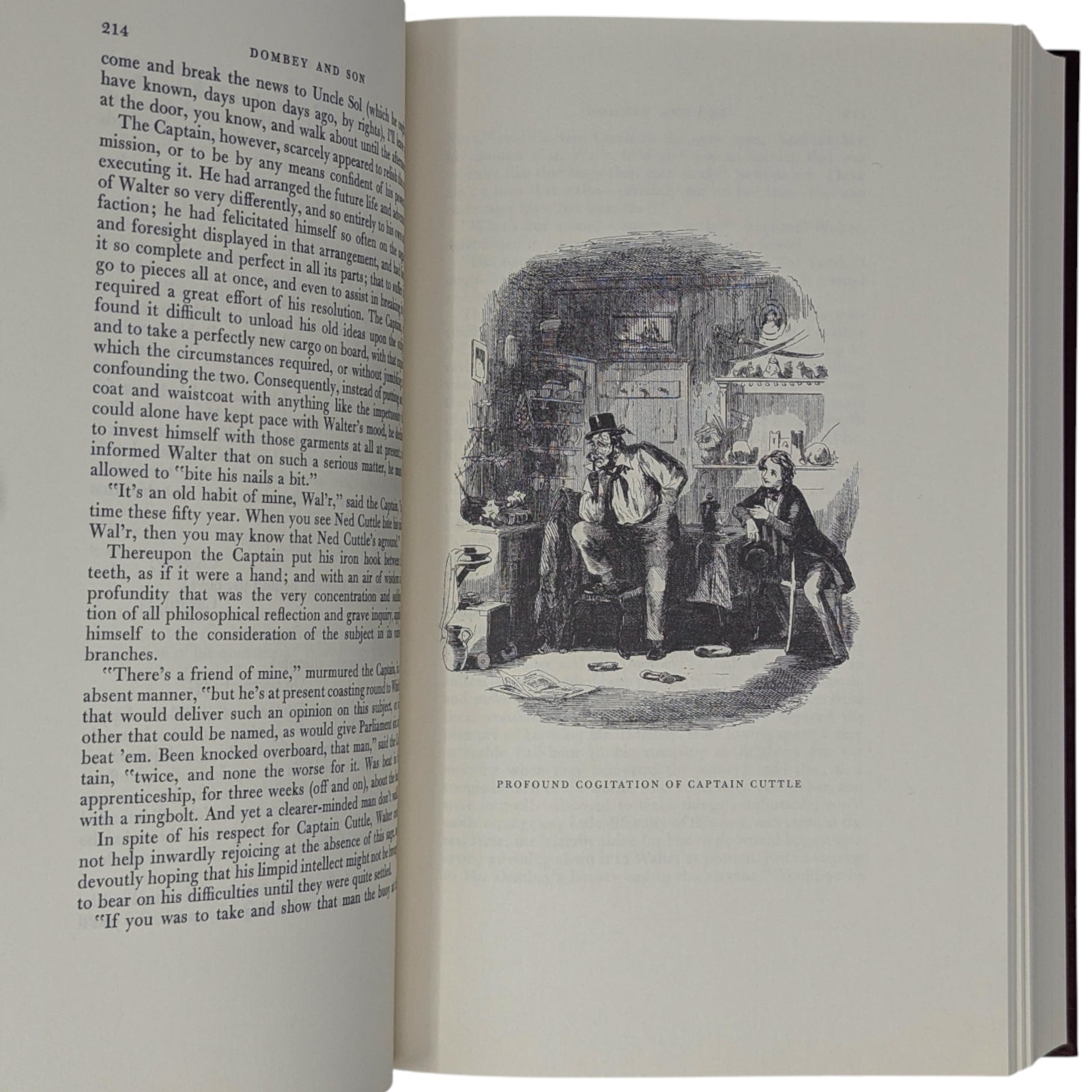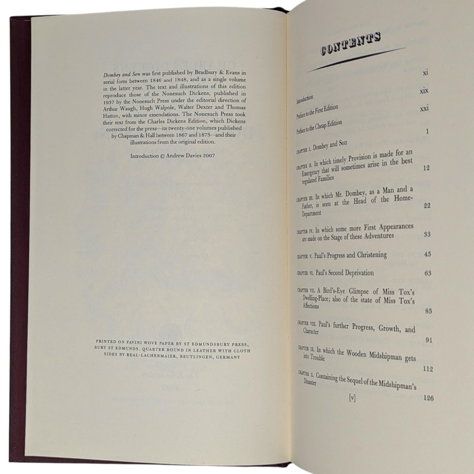 Charles Dickens, Dealings with the Firm of Dombey and Son: Wholesale, Retail and for Exportation. London: The Folio Society, [2007]. With the original illustrations by “Phiz” [Hablot K. Browne], introduction by Andrew Davies. 261 × 170 × 57 mm. Pp. [1–2], [i–iv] v–xxi [xxii–xxiv], 1–880 [881–882]: [38] leaves of ‘plates’. Type: Bulmer with Verdi for display. Typeset by R. and R. Clark for the Nonesuch Press in 1937 (the preliminaries by Folio), printed by the Saint Edmundsbury Press. Bound by Real Lachenmaier in series binding.