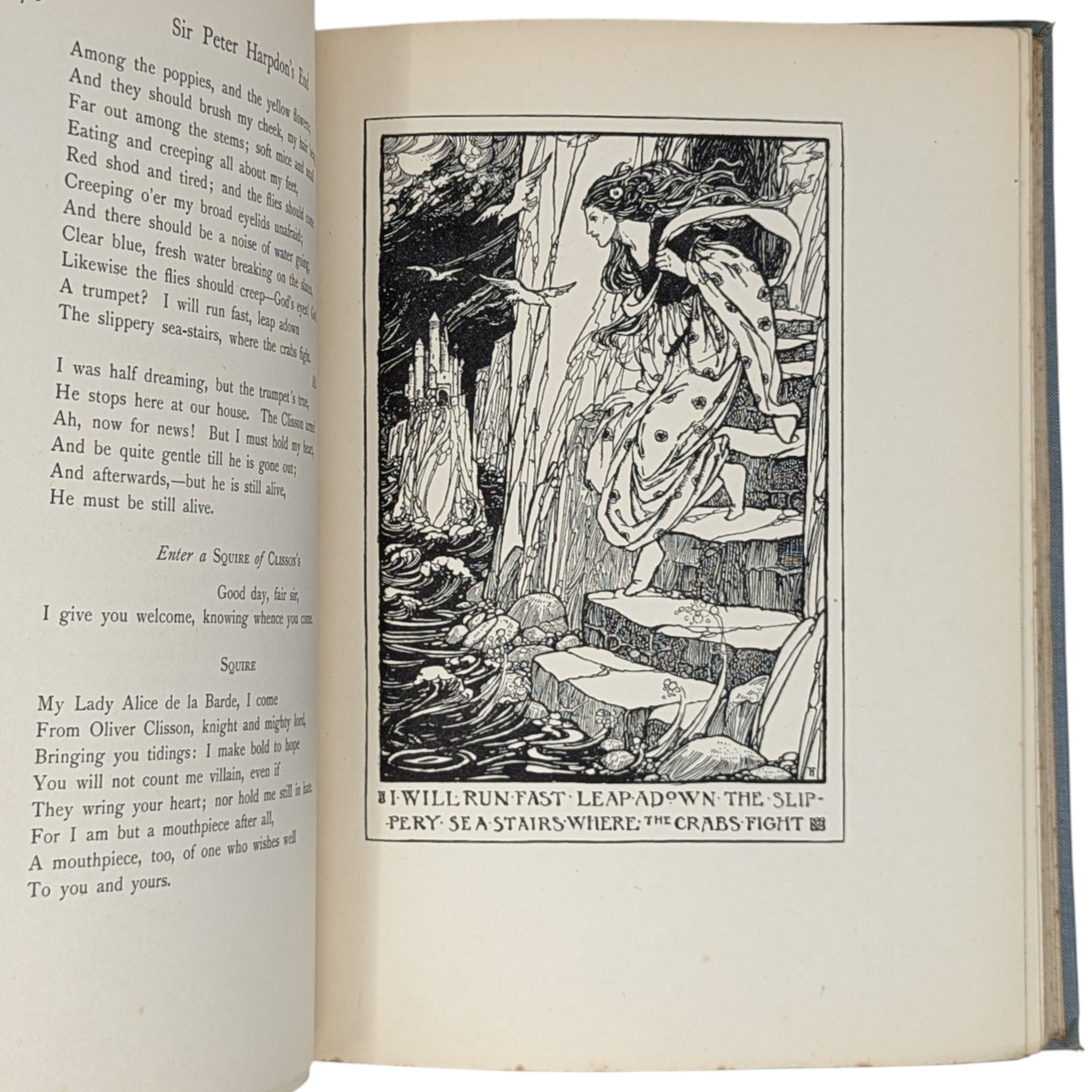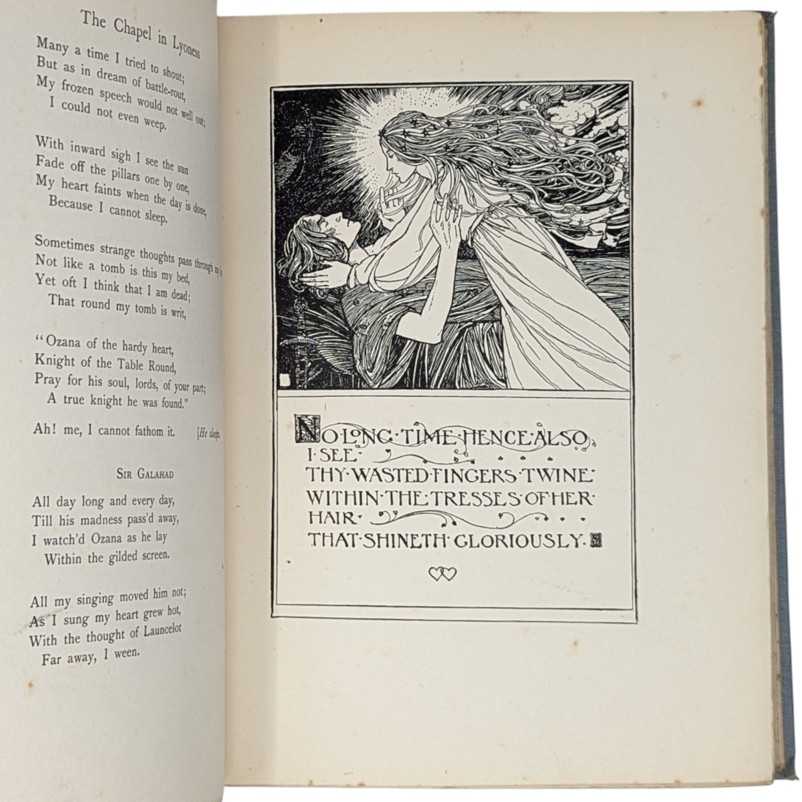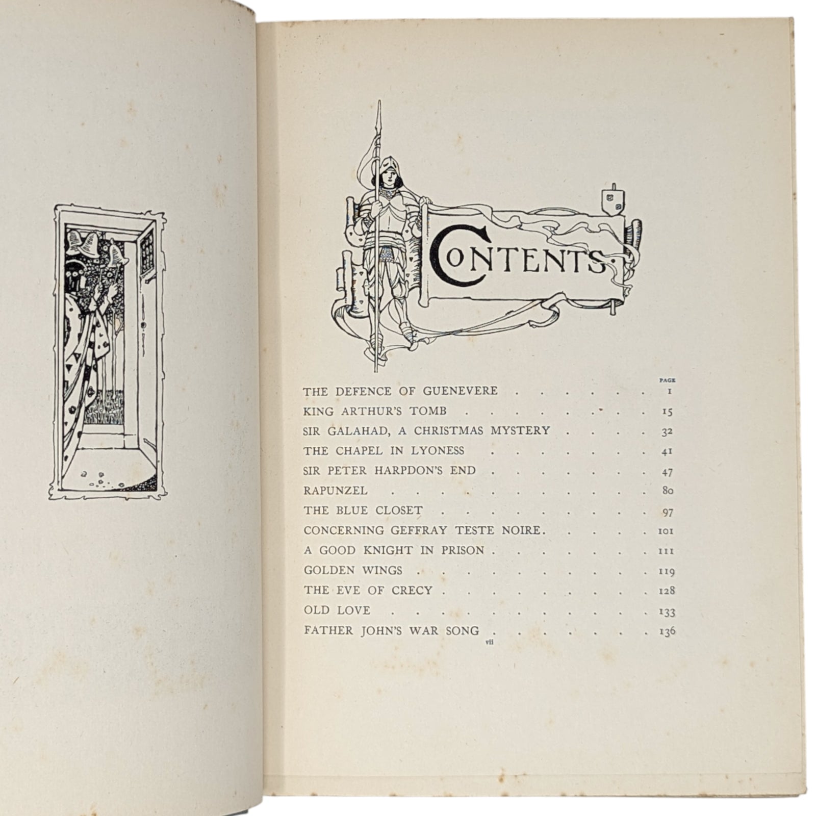 A beautiful, very clean copy of the first 'Florence Harrison' trade edition, including notable works such as "The Defence of Guenevere", "King Arthur's Tomb", "Sir Galahad, a Christmas Mystery", "Rapunzel" with the artist's easily-recognisable illustrations complementing each poem perfectly.