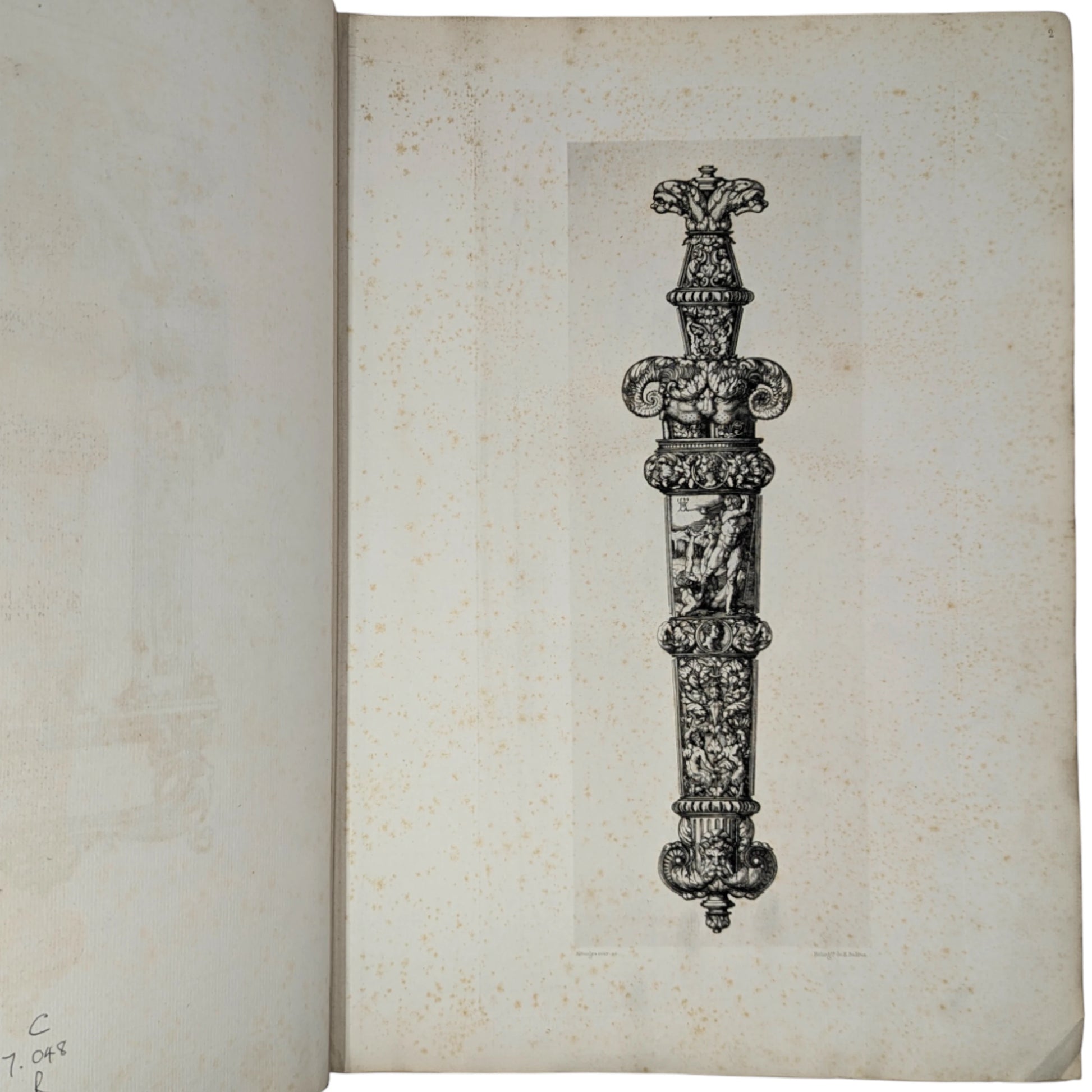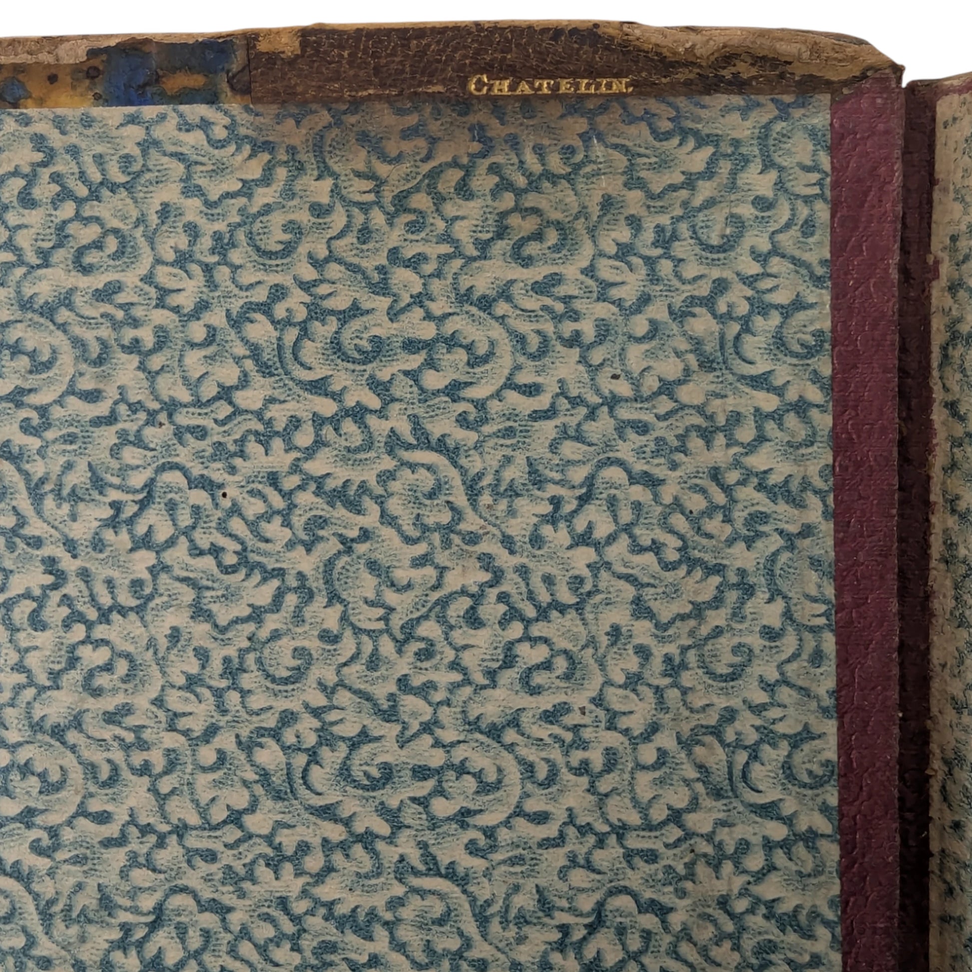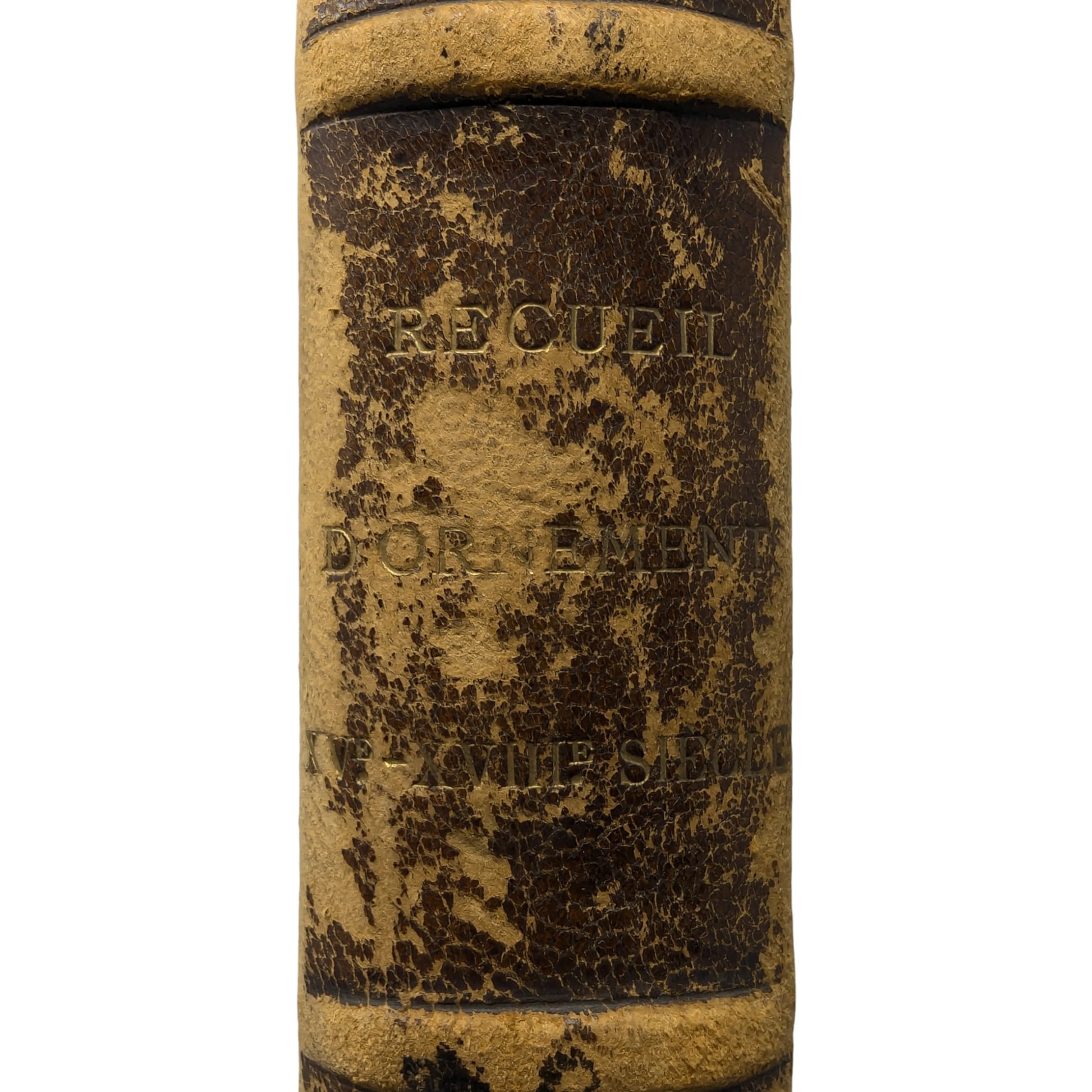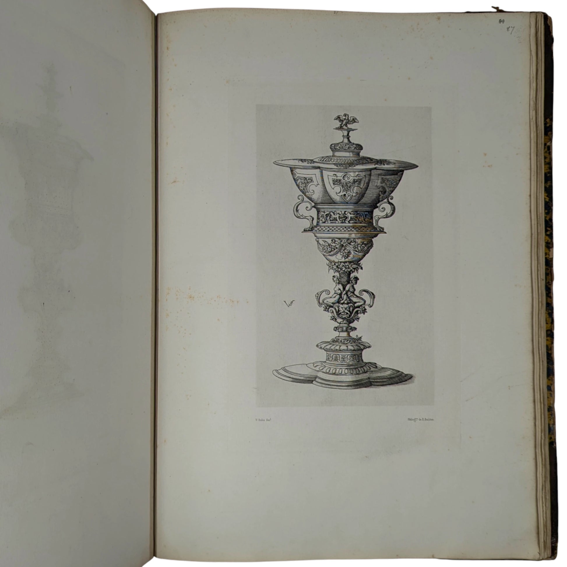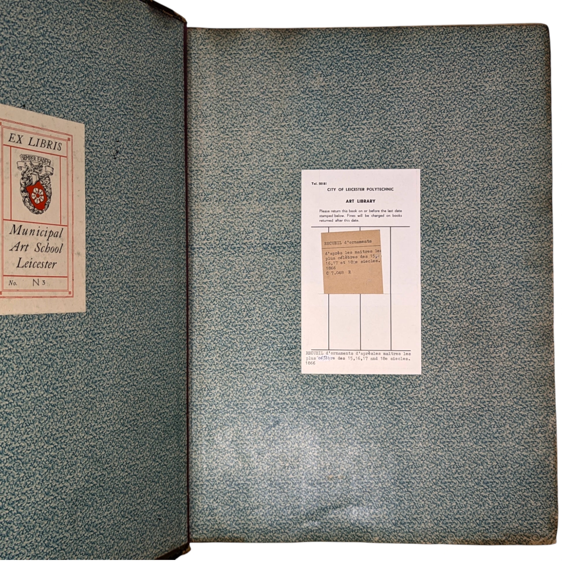 Large folio, 448 x 328 mm. French text. First edition. Ornamental heliogravure title, 99 further heliogravure plates of designs after Aldegraver, Beham, Durer, Delaune, and others (100 in total, as called for). Contemporary half-calf, top edge gilt, gilt lettering to spine, decorated endpapers with a repeated pattern. Ex-library plates (City of Leicester Polytechnic Art Library) to both front paste-down and endpaper, as well as library call number to foot of spine. Small gilt 'Chatelin' binder's stamp to inside front board. Antoine Chatelin (1820 - c.1890) was a French bookbinder responsible for many fine bindings. Forced into exile in London 1852, after being convicted for taking part in a banquet commemorating the proclamation of the 1848 Republic, Chatelin exhibited in the 1862 International Exhibition alongside Bedford and Riviere, and worked for the French aristocratic political exiles, including the dukes of Aumale and Chartres.