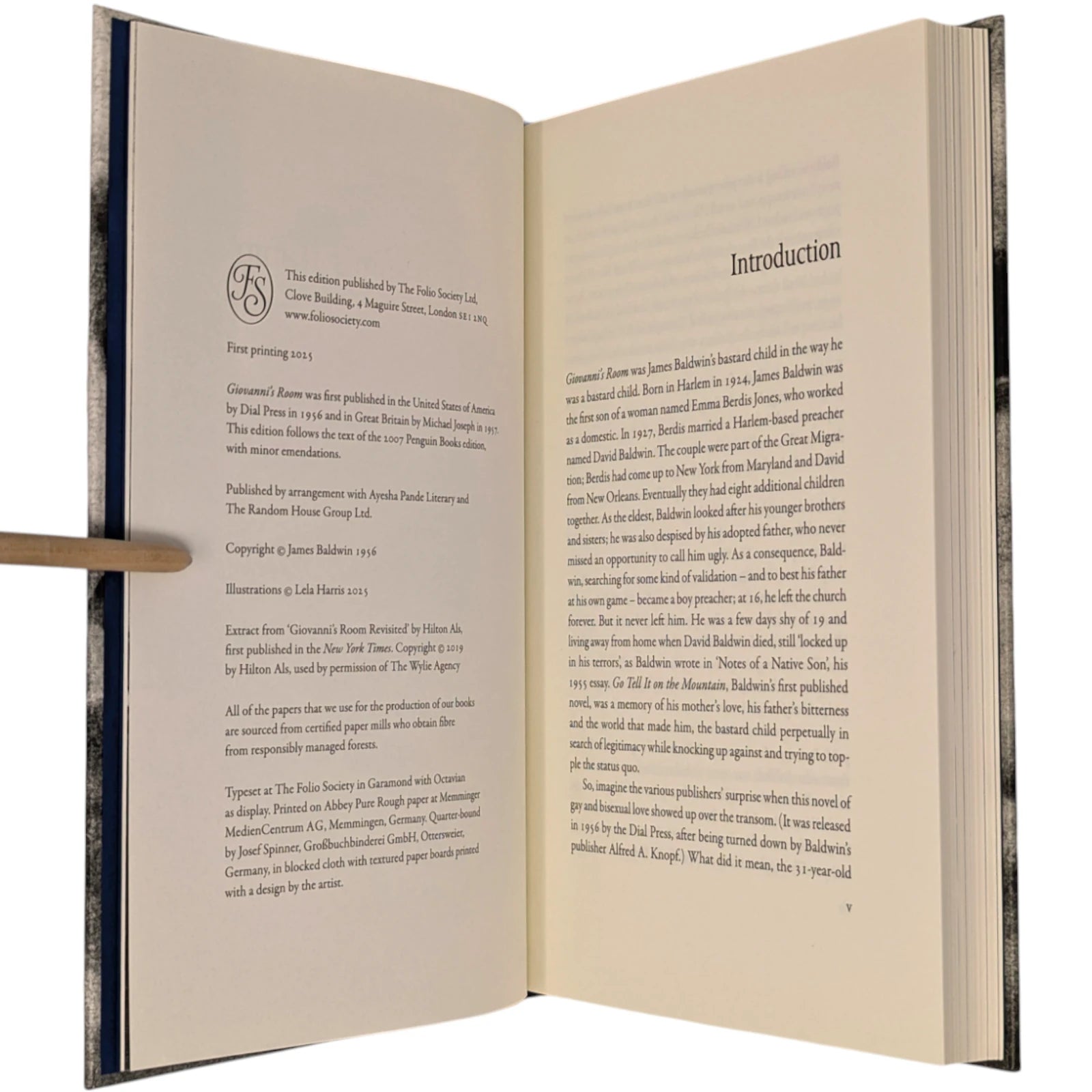Giovanni's Room, by James Baldwin. London: The Folio Society, 2025. First printing thus. Illustrated by English artist Lela Harris, and introduced by Pulitzer-Prize winner Hilton Als of The New Yorker. One of a limited run of 50 exclusive copies signed by illustrator and introducer.