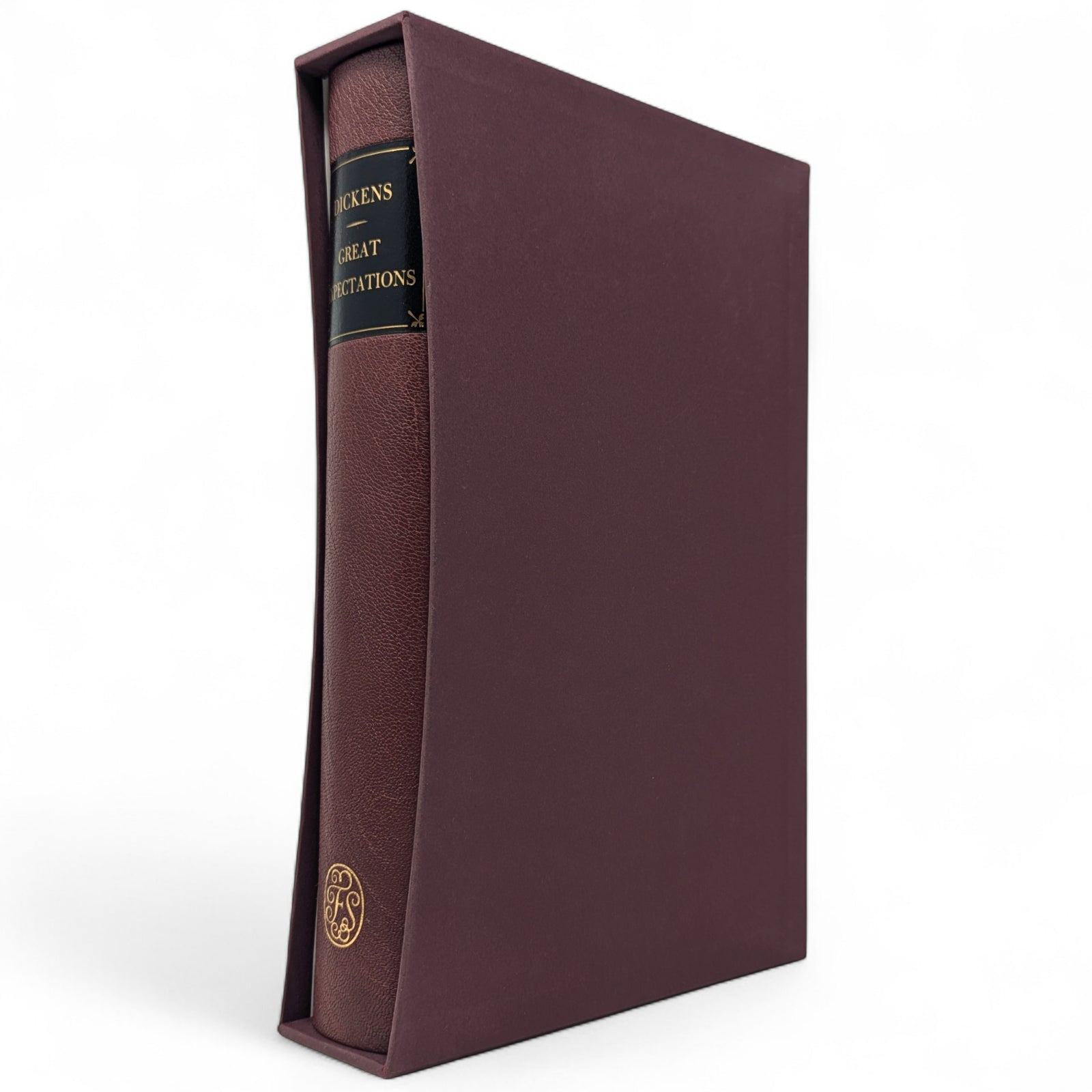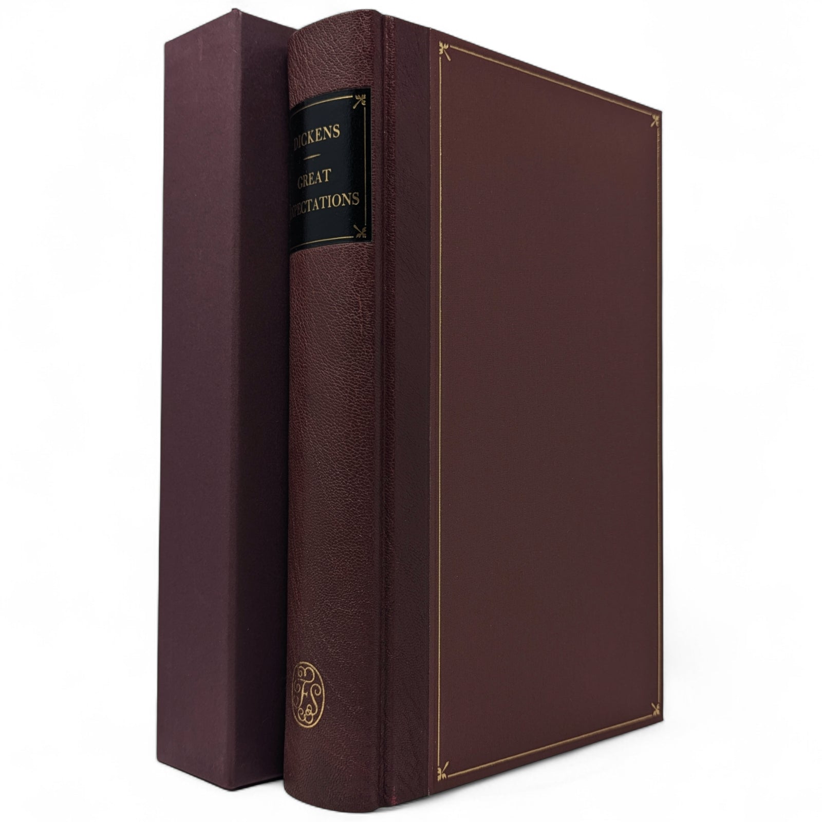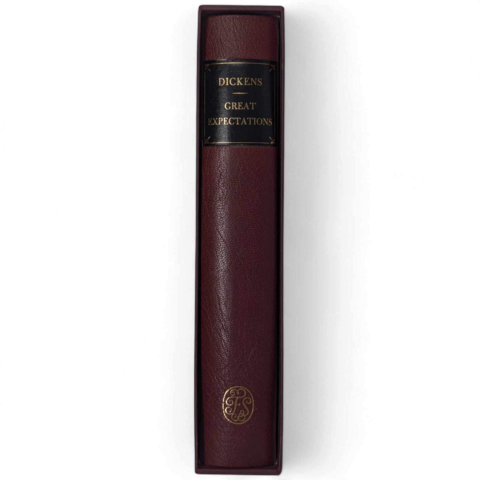 Great Expectations by Charles Dickens. London: The Folio Society, [2004]. With the original illustrations by Marcus Stone, introduction by D.J. Taylor. 262 × 170 × 45 mm. Pp. [i–iv] v–xv [xvi–xviii], 1–478. Type: Bulmer with Verdi for display. Typeset by R. and R. Clark for the Nonesuch Press in 1937 (the preliminaries by Folio), printed by the Saint Edmundsbury Press. Bound by Real Lachenmaier in series binding (see item 1197). The illustrations consist of eight full-page wood-engravings (on pages [iii], [81], [145], [179], [239], [359], [415] and [475]). This title was the ‘Castaway’s Choice’ of several celebrities.