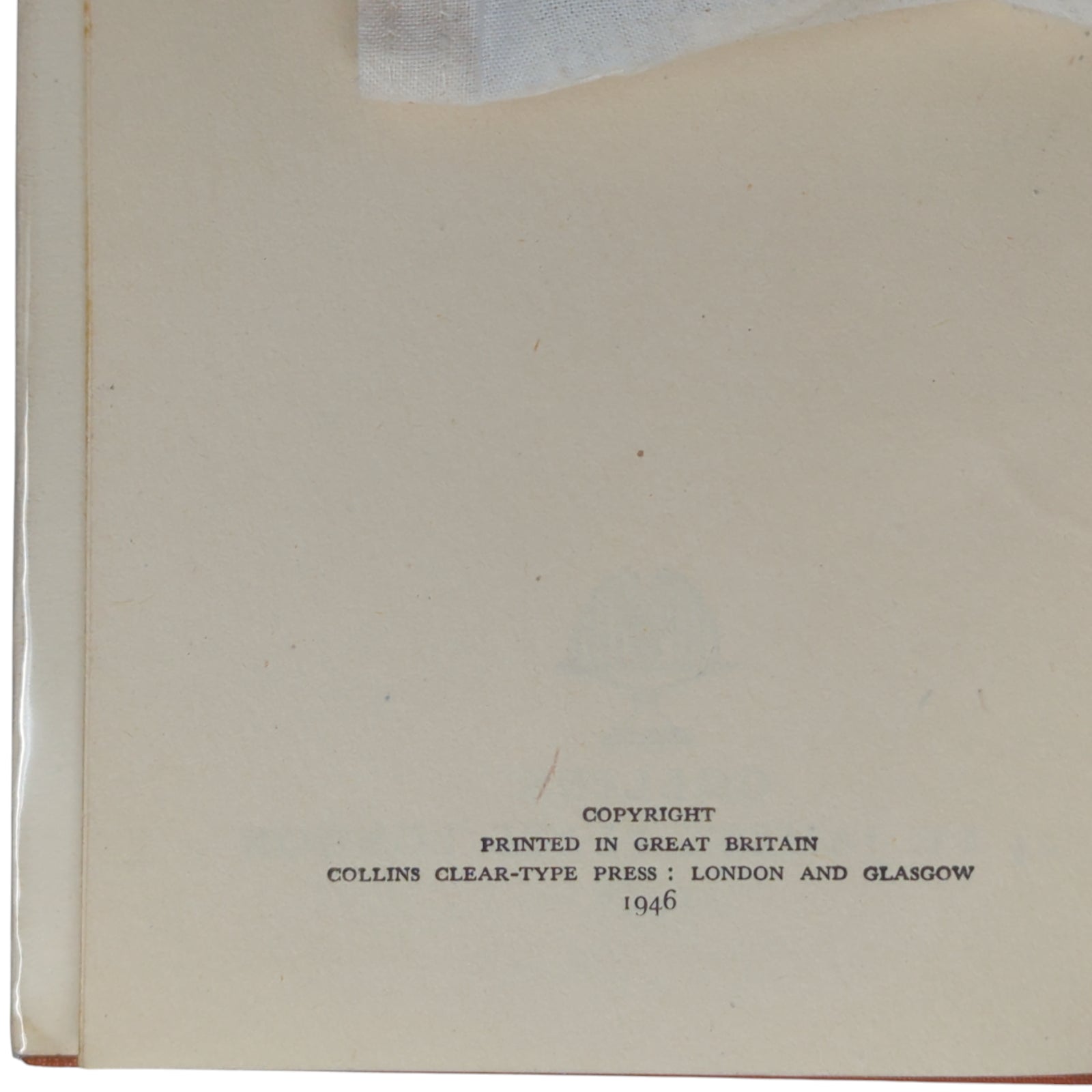 Publisher's red cloth, gilt titles to spine, plain endpapers; in unclipped (2/6 net) dustwrapper. A good copy, binding square and firm, with corners and spine tips a little bumped and a ding to upper extremity of the rear board, slightest wear to covers, with a few foxing spots to the closed text block and small bookseller's ticket to rear pastedown; else clean and uninscribed. In the typographical yellow dustwrapper, a little worn along the spine with a few rubbed patches, and panels a little marked and extremities slightly nibbled; now in an archival wrapper.