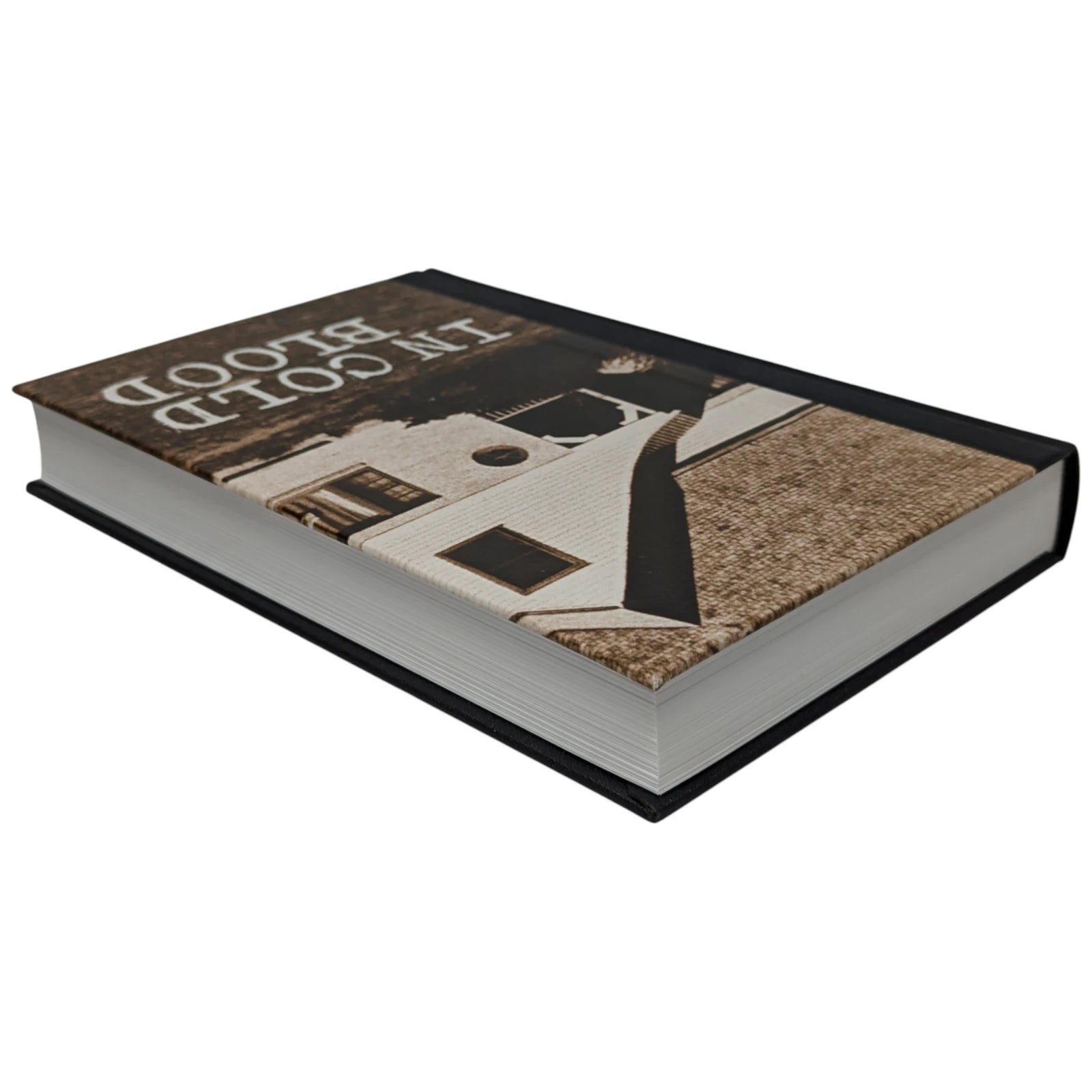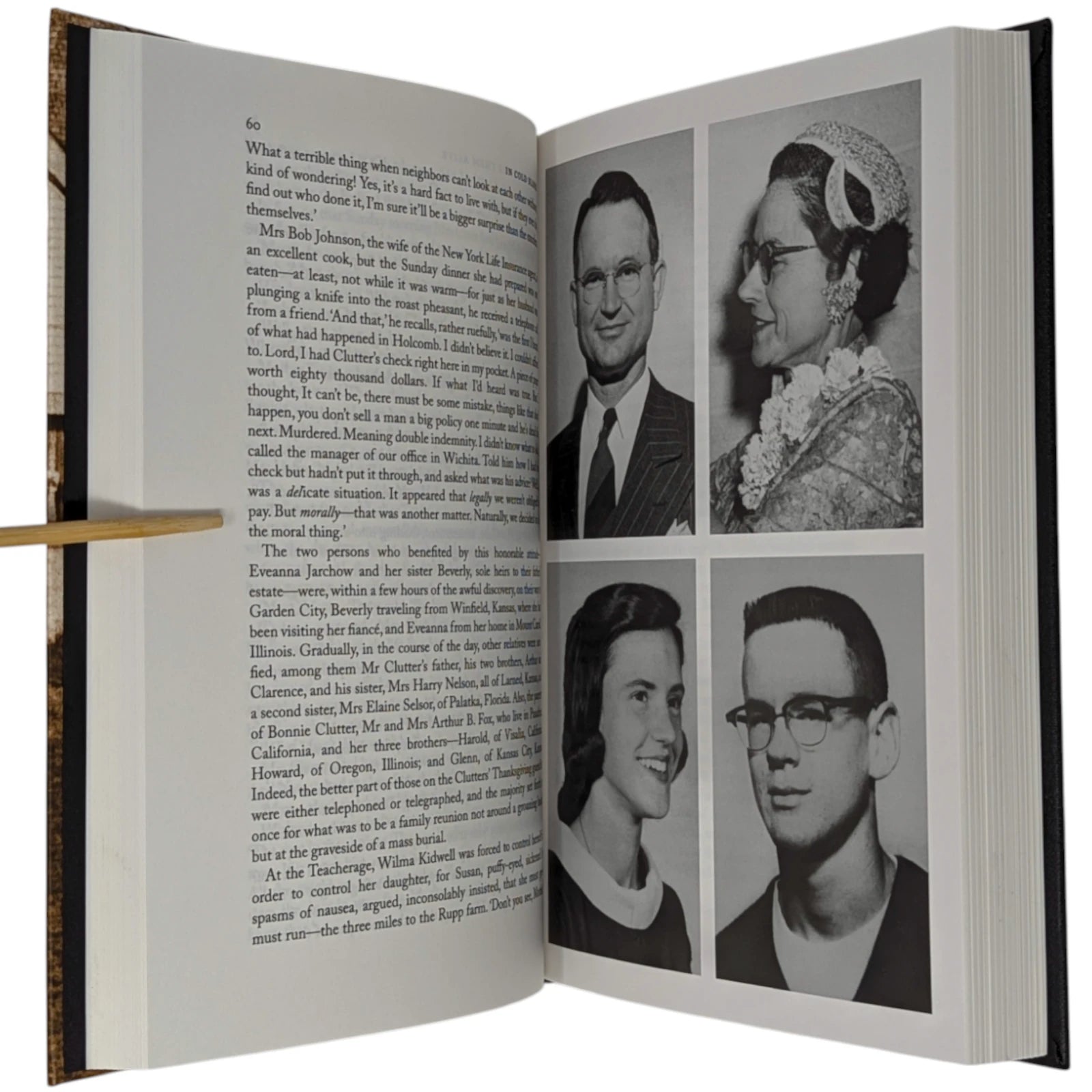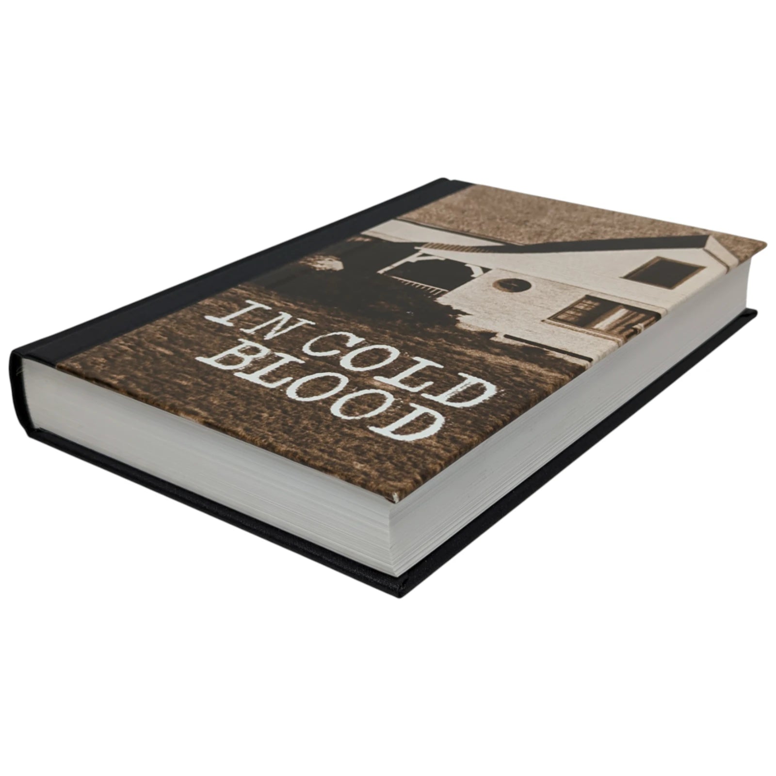 Truman Capote, In Cold Blood, A true account of a multiple murder and its consequences. London: The Folio Society, 2011. First printing thus. Introduced by Rupert Thomson. 241 × 162 × 31 mm. Pp. [i–vii] viii–xiv [xv–xx], [1–5] 6–284: [13] leaves of plates. Type: Caslon. Printed and bound by L.E.G.O. in three-quarter black buckram with printed front board; black endleaves. Black slip case. The plates reproduce contemporary photographs.