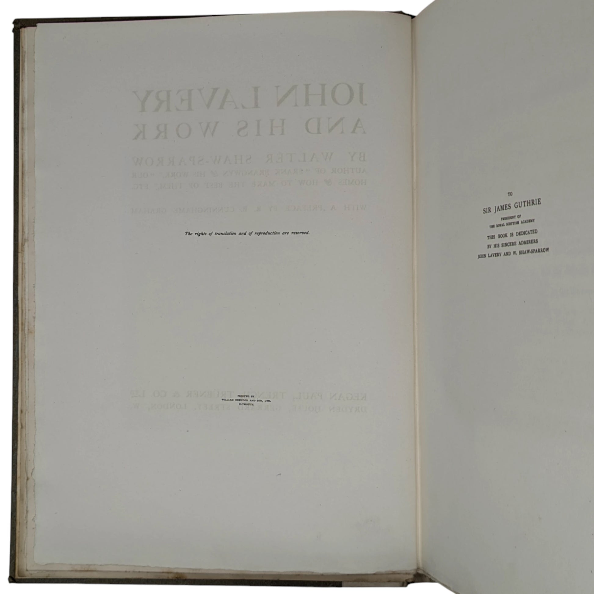 SHAW-SPARROW, Walter. John Lavery and His Work. London: Kegan Paul, Trench, Trubner & Co., Undated, ca. 1911.