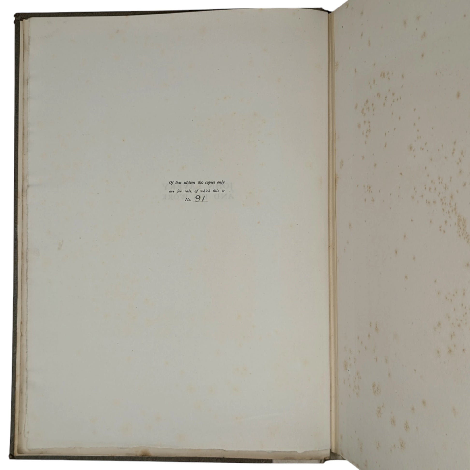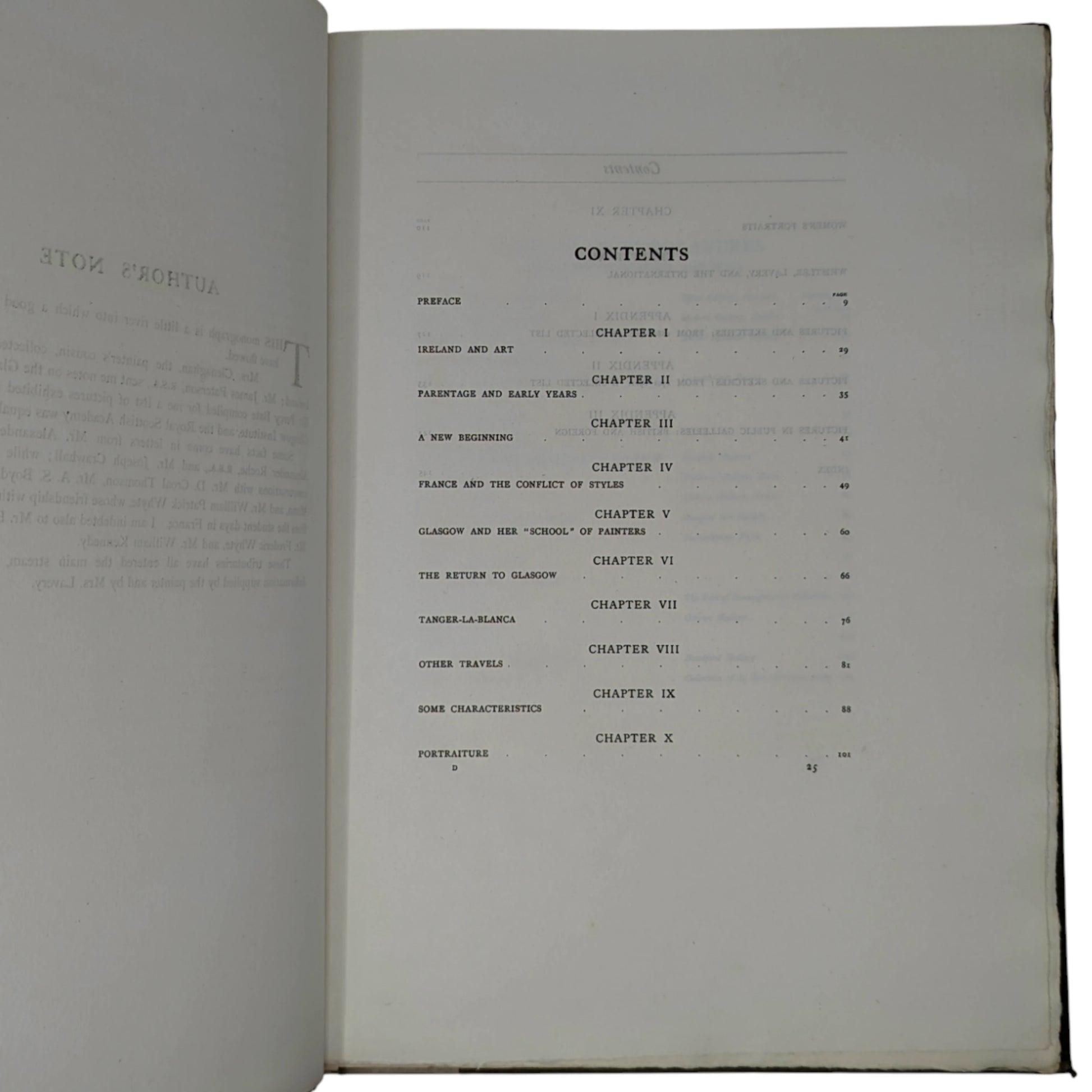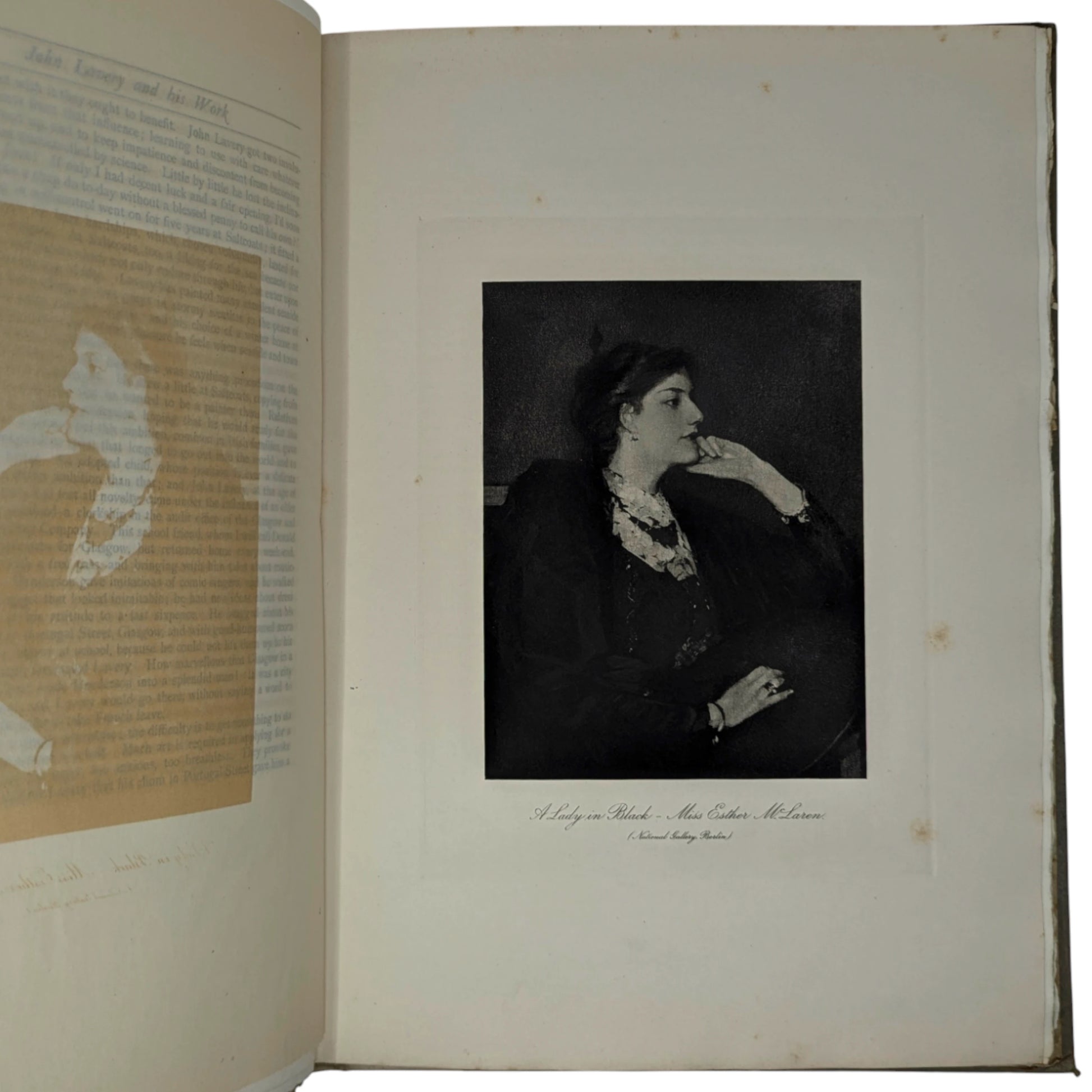Number 91 of a limited edition of 160. Folio, 410 x 294 mm. Printed on lovely thick watermarked paper, with 20 tissue protected photogravure plates including the frontis. Vellum spine printed in gilt, gray boards, 150 pages. Together with two early 1990s newspaper cut-outs, loosely inserted, one on the life of Lavery and the other one on Lavery's 'The Terrace, Cap d'Ail' painting recently sold at Philips Auction for £130,000.