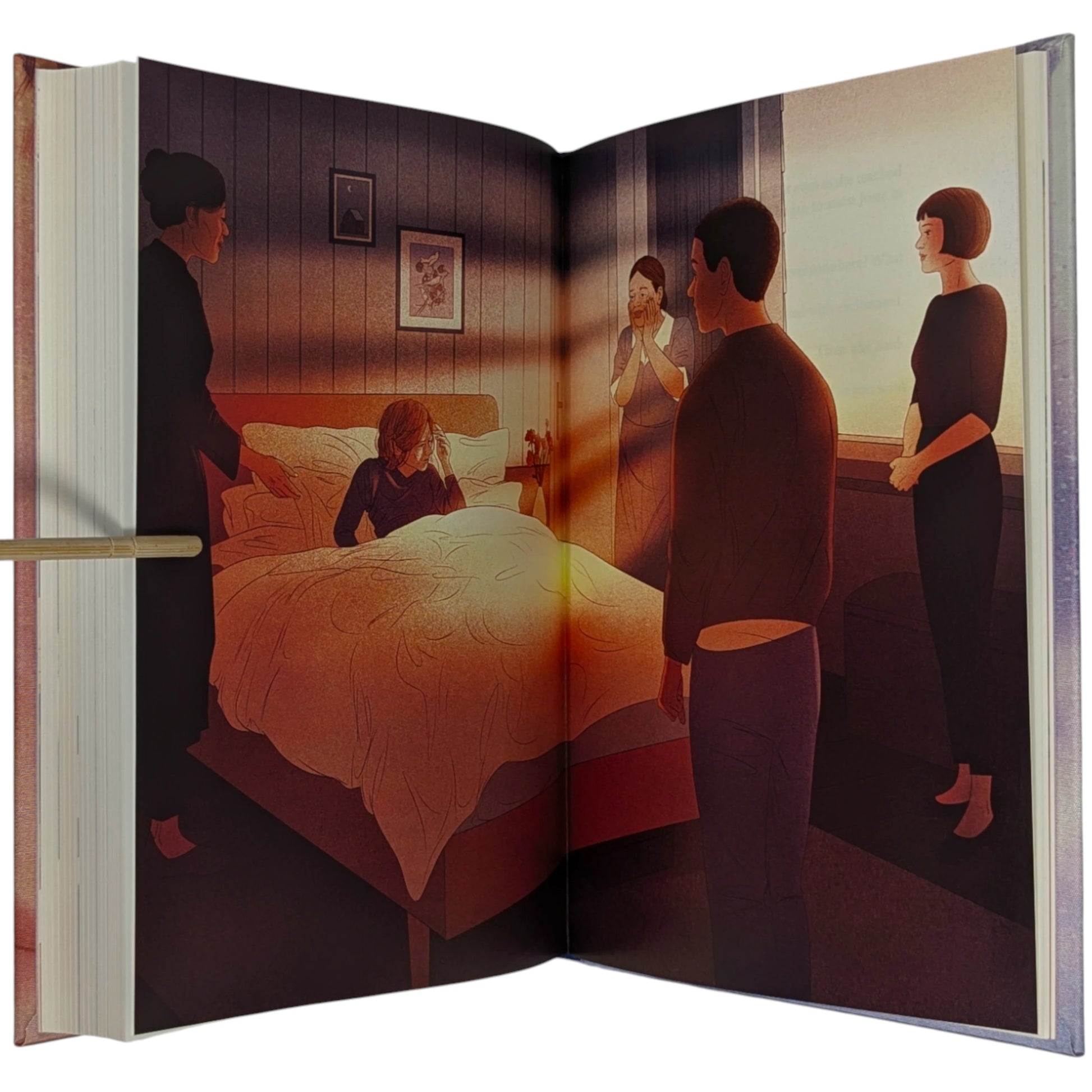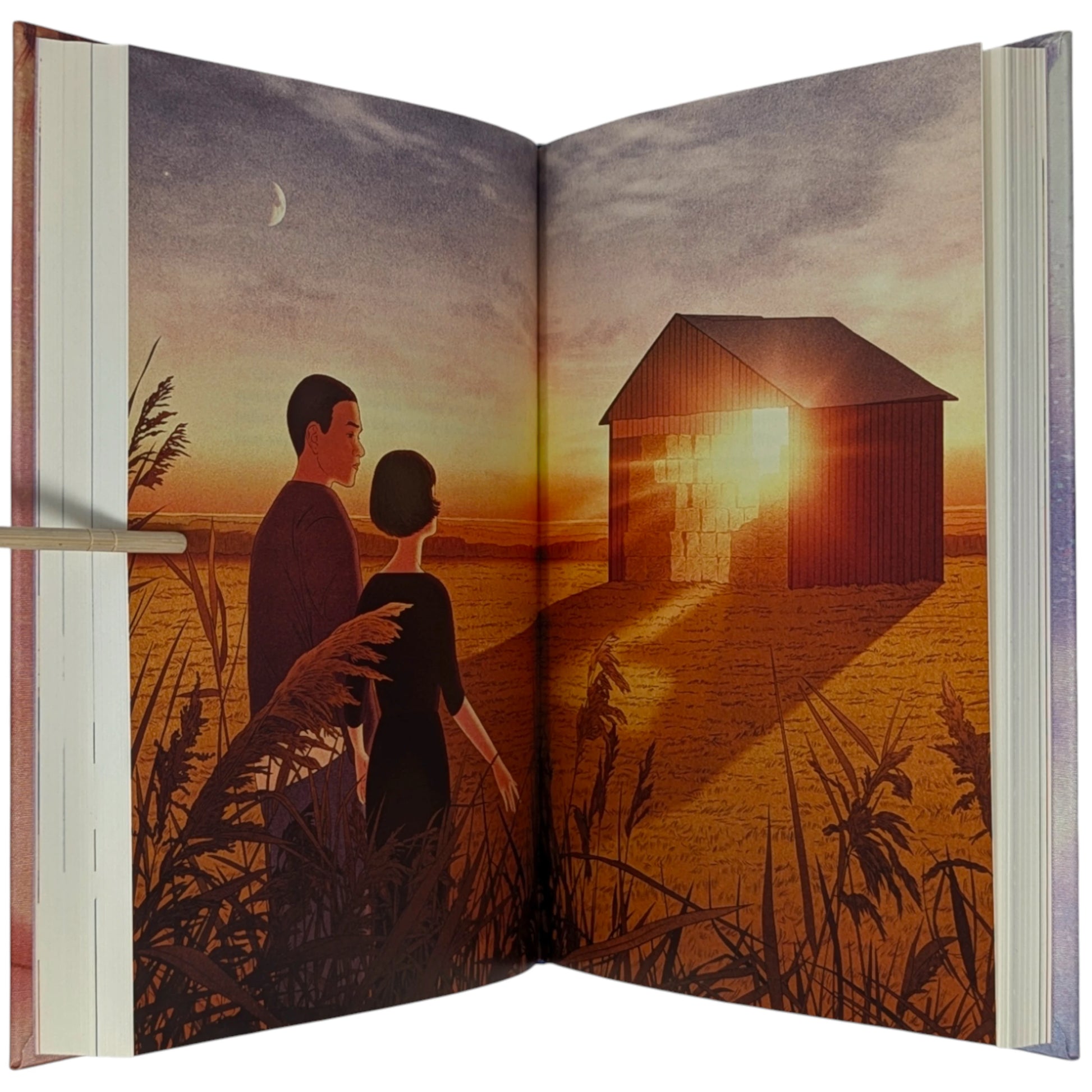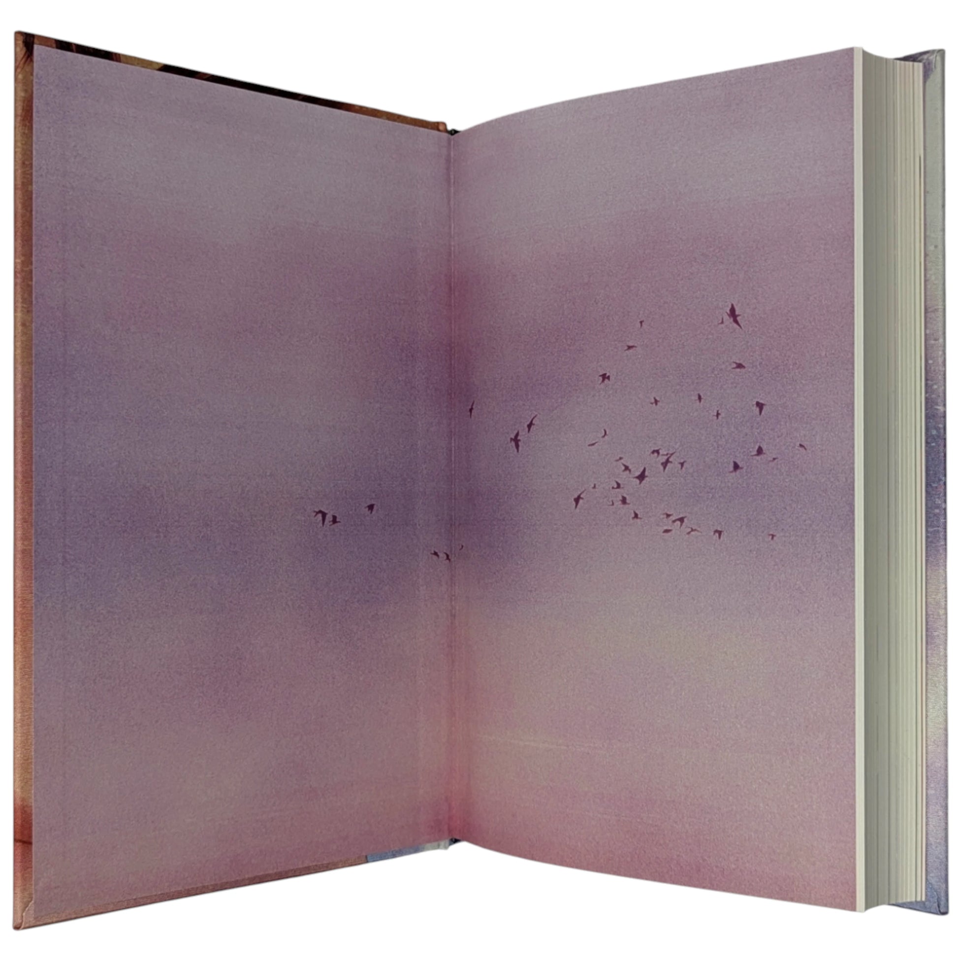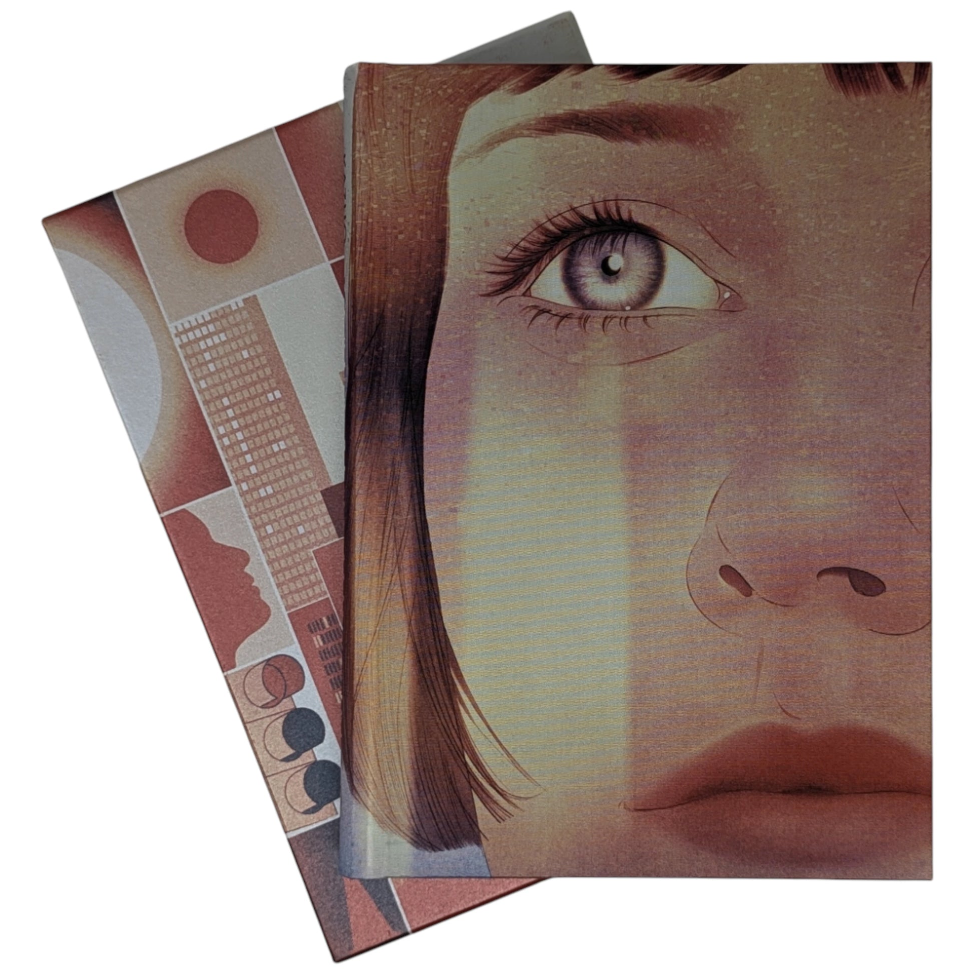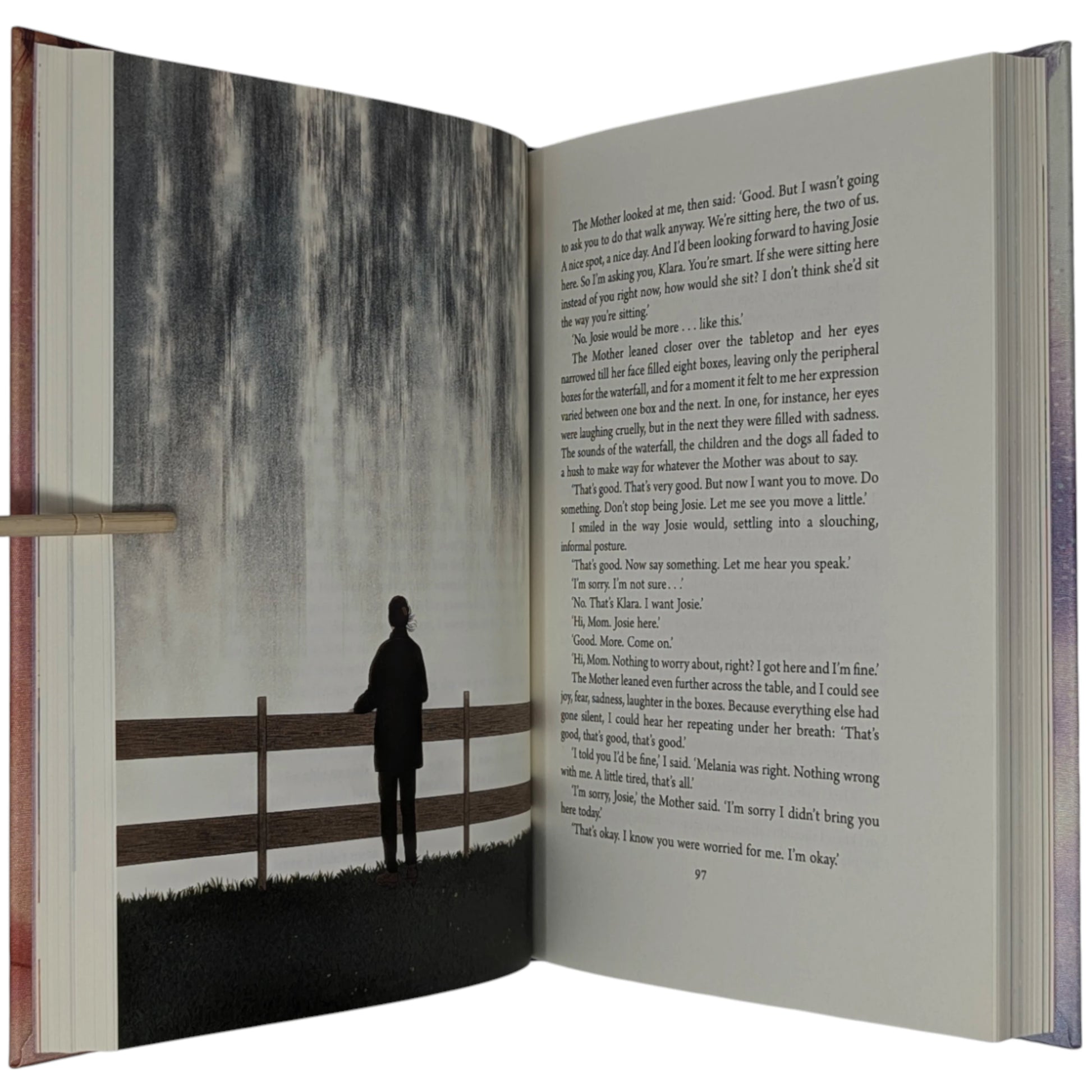 ISHIGURO, Kazuo. Klara and the Sun. London: The Folio Society, 2025. First printing thus. 288pp. 22.9x15.9cm. Bound in pixel-detailed colour picture printed and blocked cloth. Printed metallic paper endpapers in shades of pink and purple. Housed in a colour pattern printed metallic paper slipcase. With seven colour illustrations, including 2 double-page spreads by Isabel Seliger.