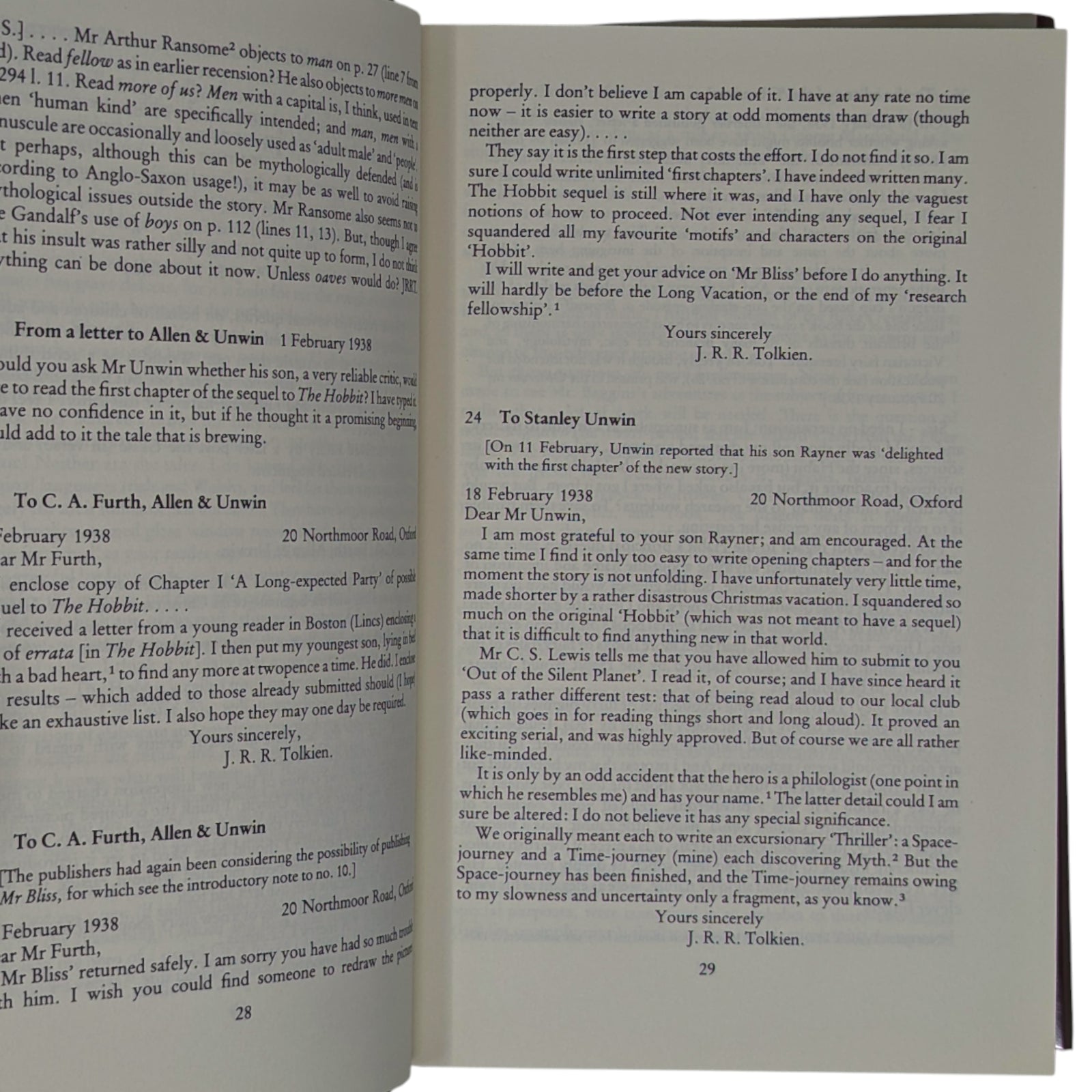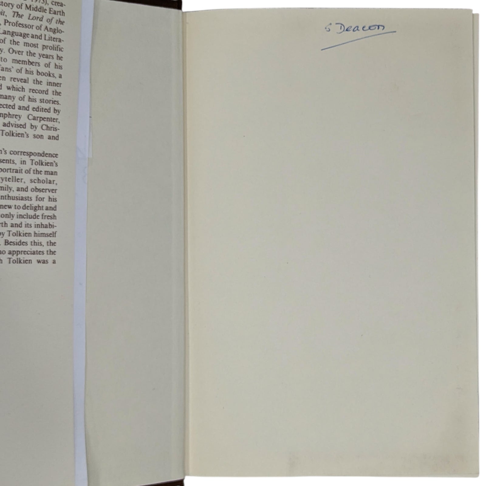 [Accompanied by] the original Sunday Telegraph feature “I Am in Fact a Hobbit…” (16 August 1981), published to mark the imminent release of The Letters of J. R. R. Tolkien, edited by Humphrey Carpenter; an extensive article that previews Tolkien’s correspondence and includes extracts revealing his humour, faith, and humility. The article pages are not very neatly cut and are heavily tanned with folds and creases; perfectly legible however.