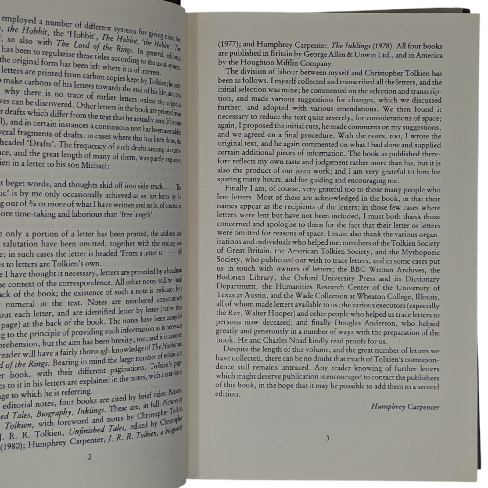 CARPENTER, Humphrey (Edited by); TOLKIEN, Christoper (Assistance of)