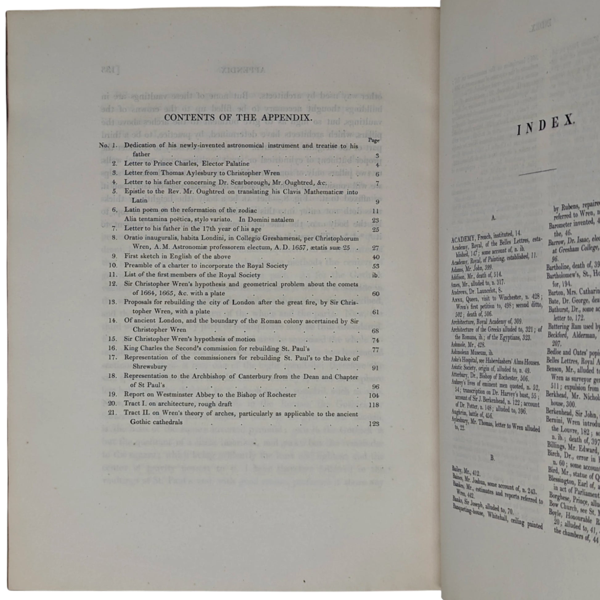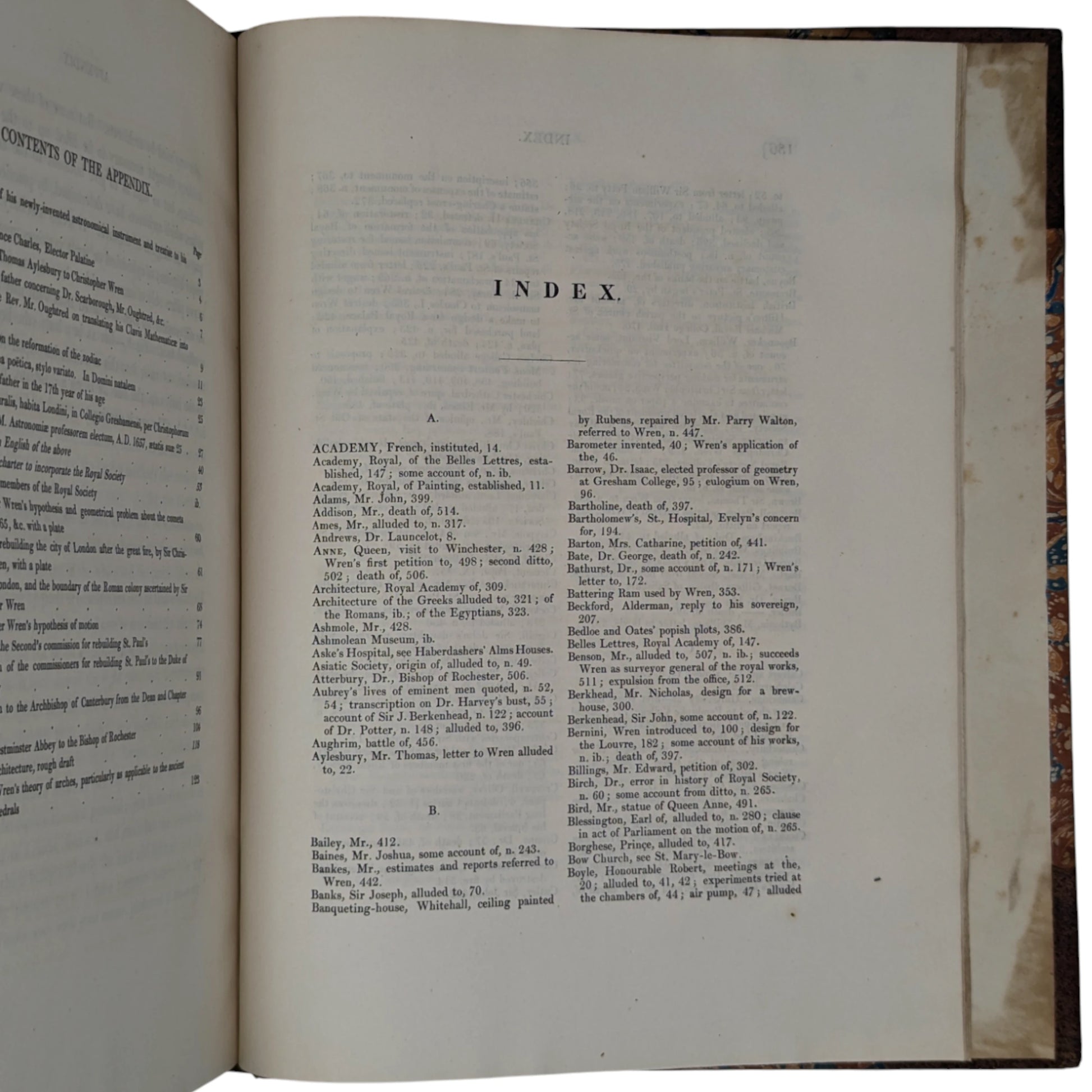 London: Priestley and Weale, 1823. First edition of the first biography of Christopher Wren, dedicated to the President and Fellows of the Royal Society, of which Wren was a founder member in 1660. This was the work which assured Elmes a place in the history of architectural scholarship (Colvin, p. 193). With engraved frontispiece and plates (some folding), 11 in total as called for.