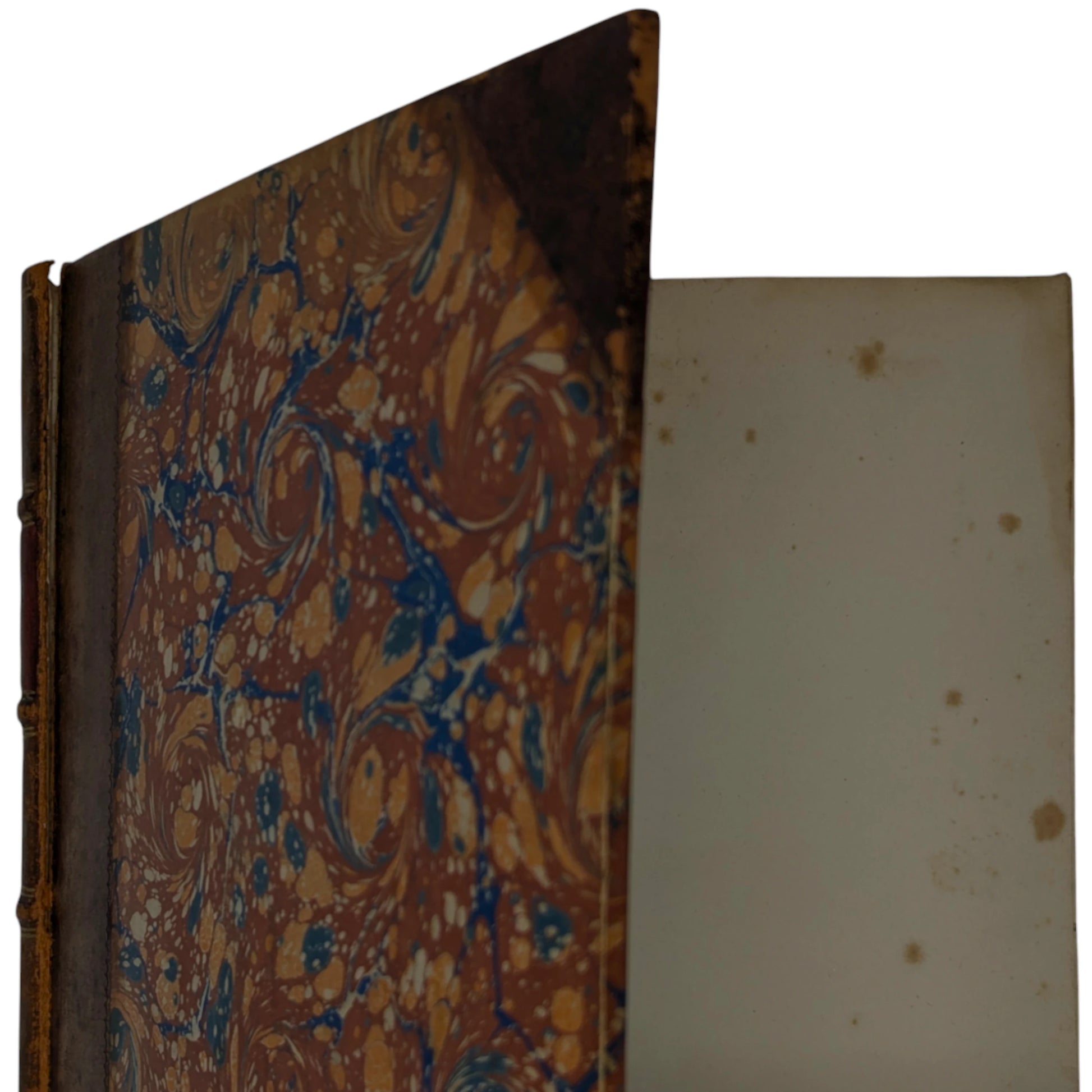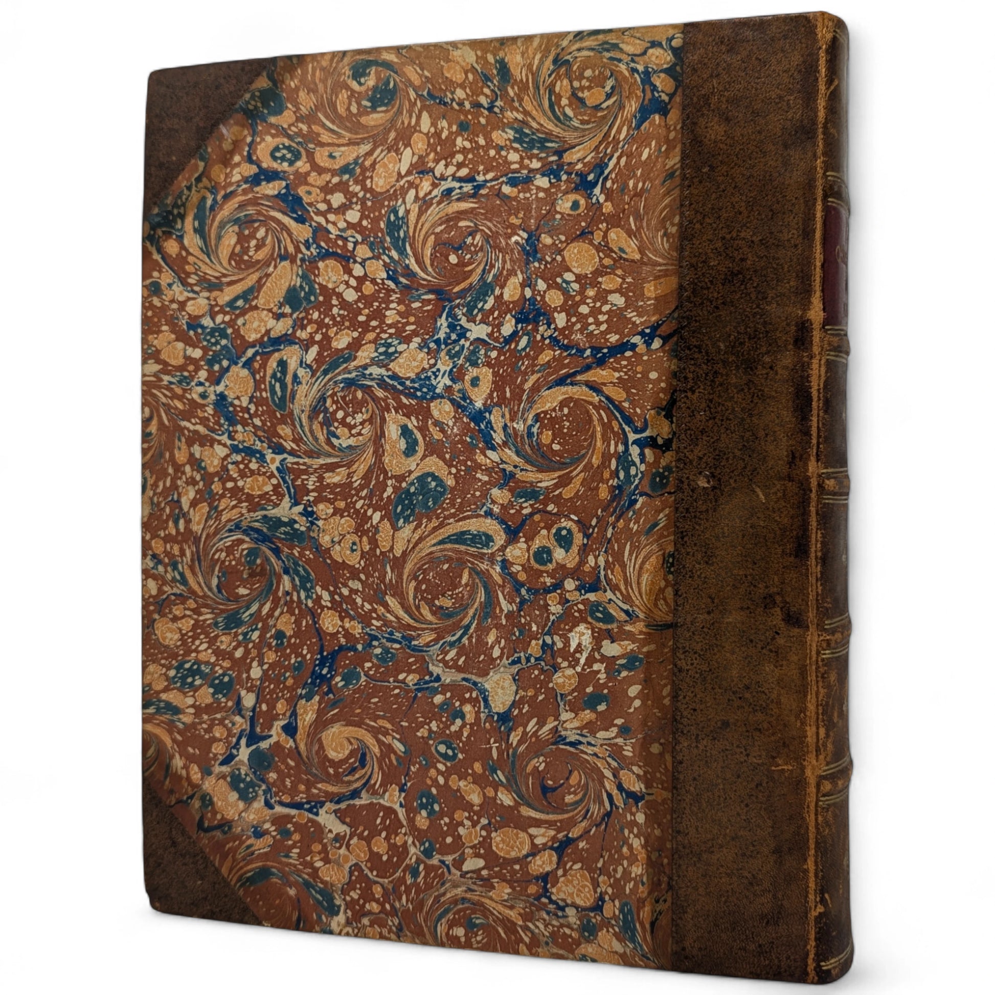 283 x 227 mm. Contemporary half calf with hand-marbled paper sides, raised bands and gilt titles on red leather label to spine, top edge coloured, plain endpapers. Wear to extremities, early signs of red rot to the degrading leather, joints and hinges weak but not fully detached, occasional spotting and offsetting (particularly from plates) throughout. Else a tightly bound copy with pages clean and uninscribed.