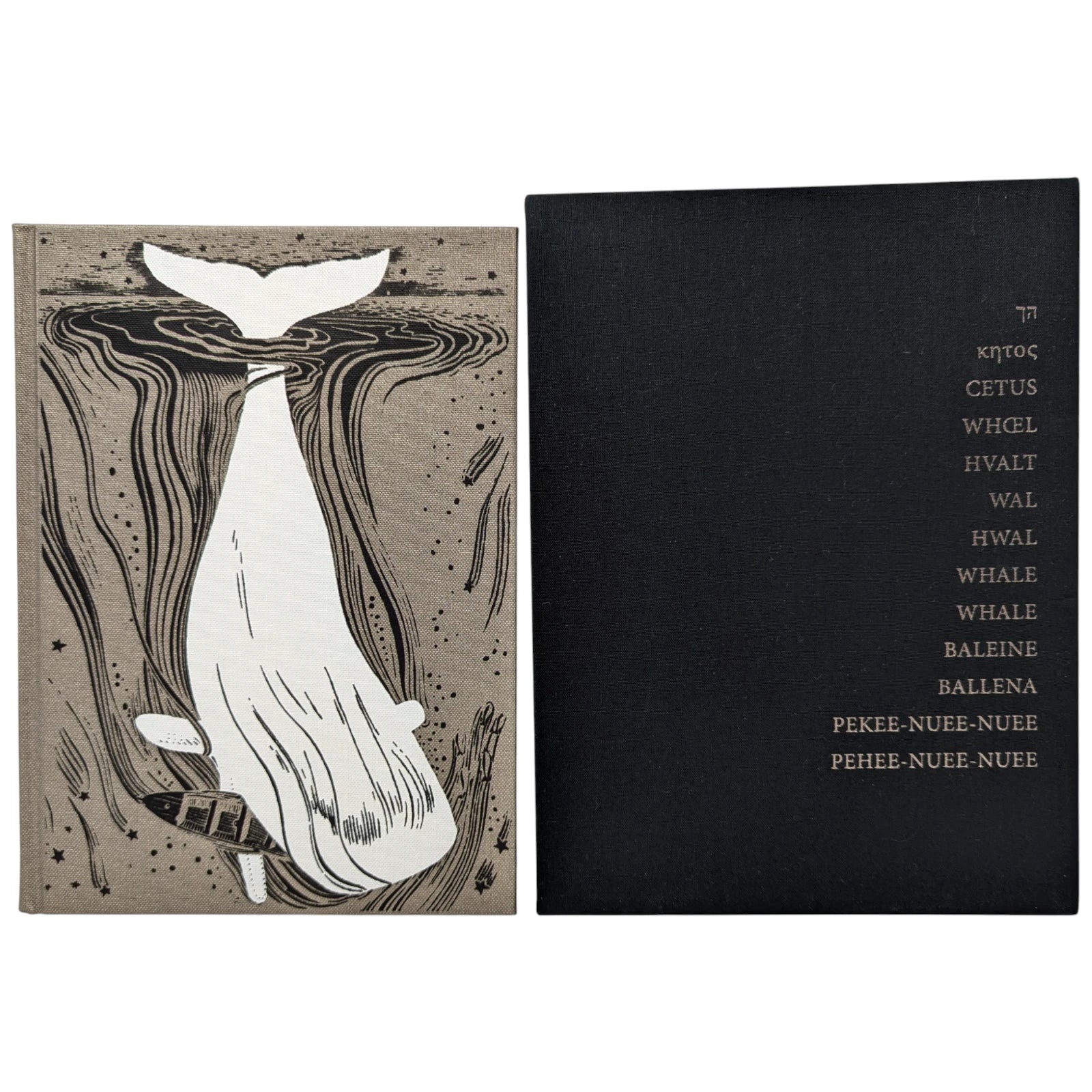 Moby-Dick, or The Whale, Herman Melville. London: The Folio Society, 2017. First printing thus. Illustrations by Rockwell Kent. 240 × 178 × 57 mm. Pp. [i–vi] vii xxxii, [1–2] 3–730 [731–736]. Type: Fournier. Standard Edition. Printed and bound by C & C Offset in full dark gold buckram blocked in black and white with a new design; black endleaves decorated with gold strands. Black cloth slip case blocked in dark gold.