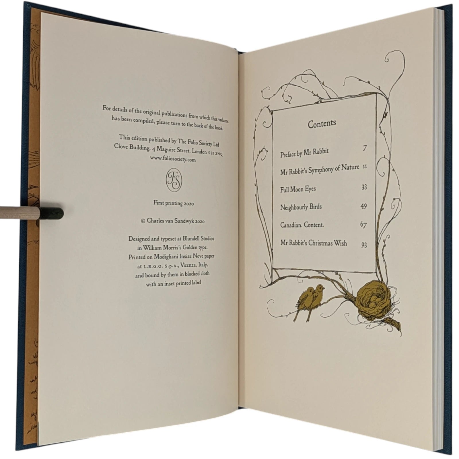 Mr Rabbit’s Symphony of Nature, and Other Tails, translated for humans by Charles van Sandwyk. London: The Folio Society 2020. New and sealed, and thus unsure of exact printing number.