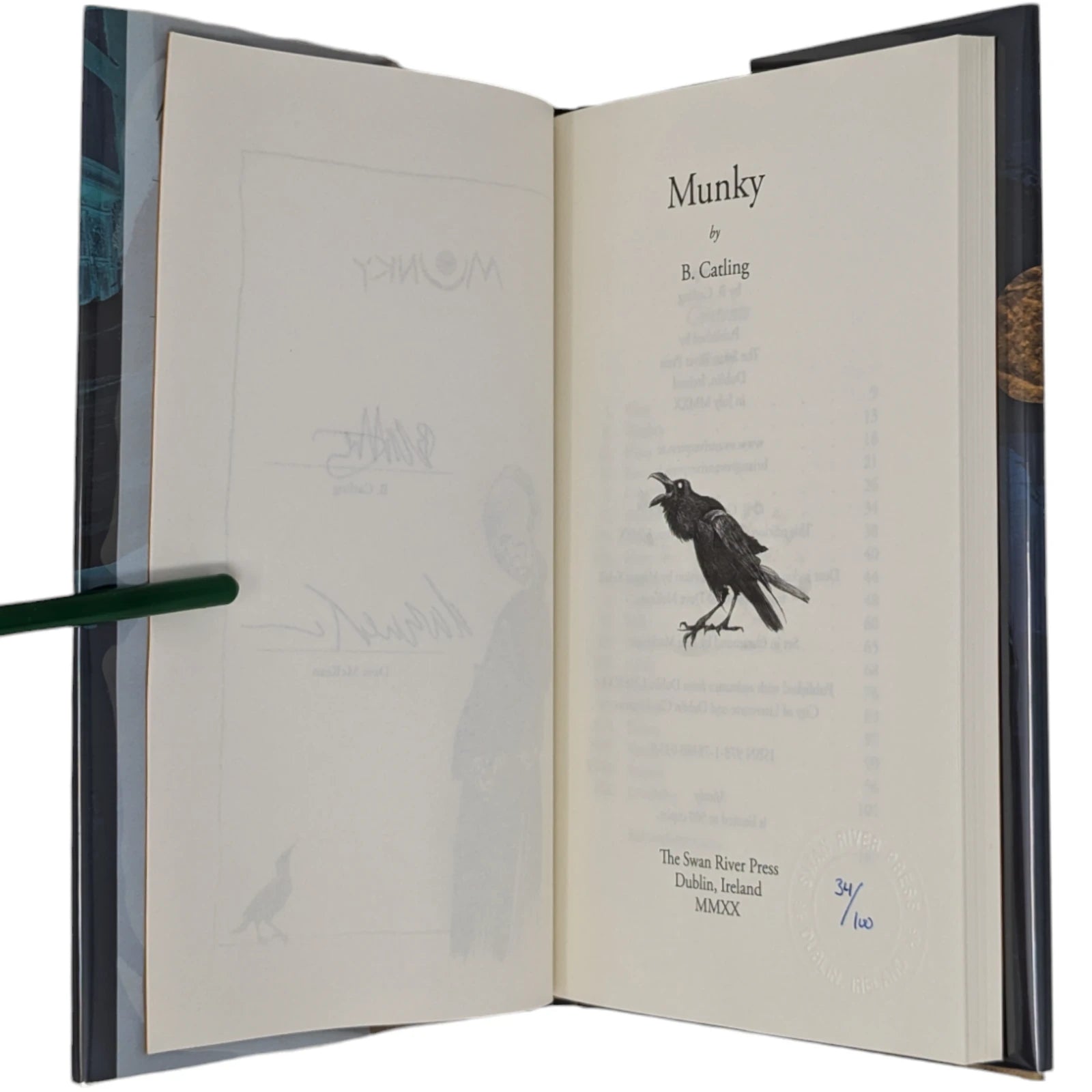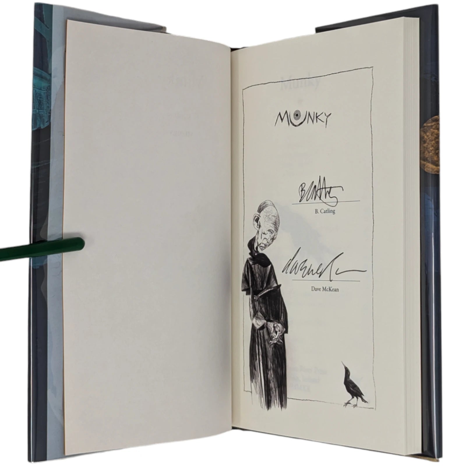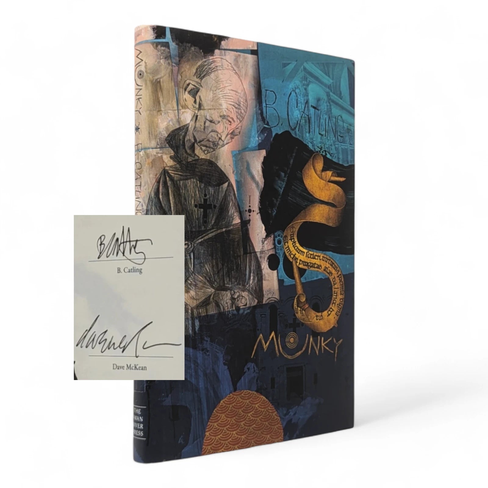 Munky by B. Catling. Dublin: Swan River Press, 2020. Hardback edition limited to 500 copies out of which the first 100 were embossed and hand-numbered. This is number 34, embossed and hand-numbered to title page. Signed by both author Brian Catling and illustrator Dave McKean. Now out of print as a hardback. Rare to find one of the first 100.