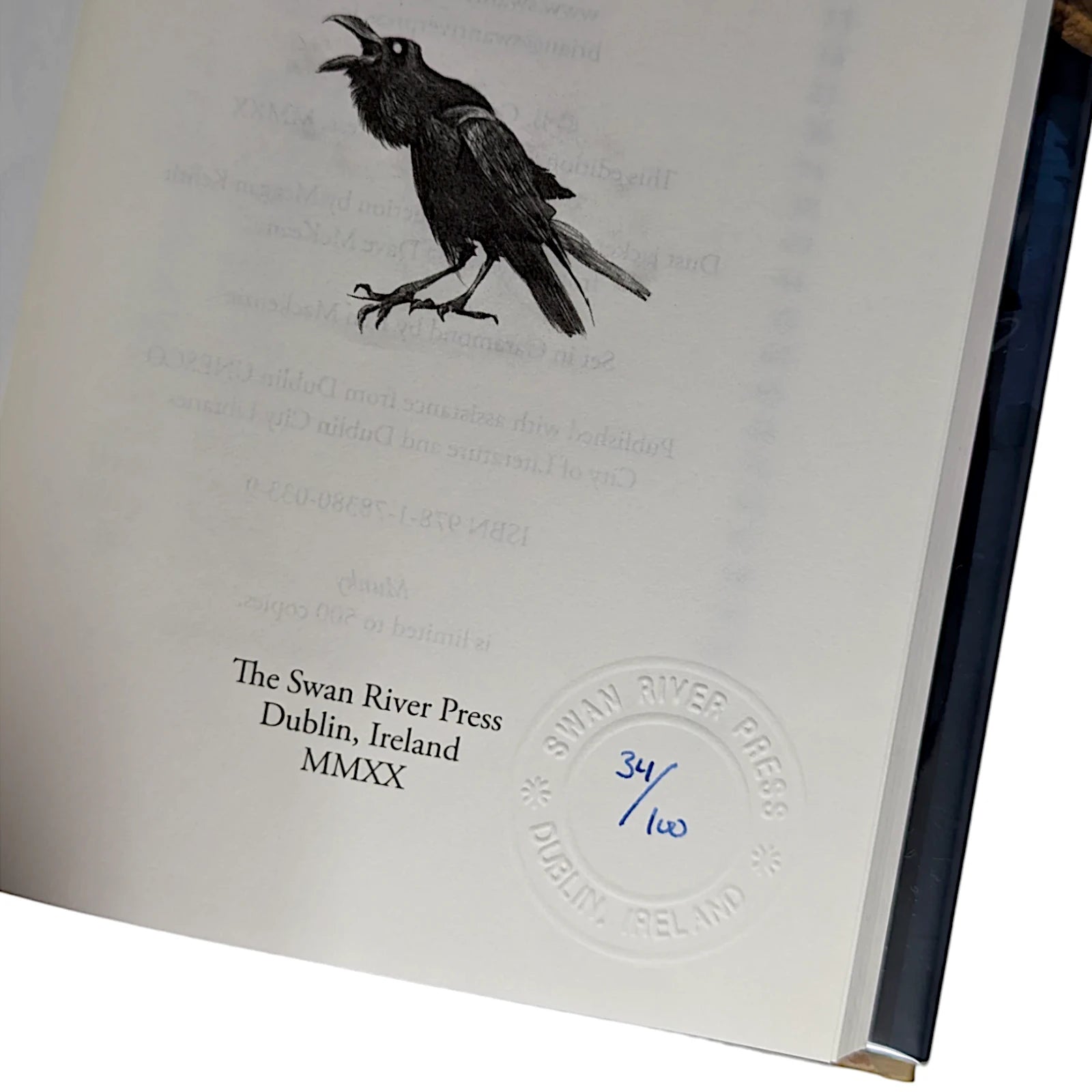 Hardback in dust wrapper. Beautiful cover art by Dave McKean; jacket design by Meggan Kehrli; edited by Brian J. Showers and Timothy J. Jarvis; copyedited by Jim Rockhill; typeset by Ken Mackenzie; published by Swan River Press. Published on 21 July 2020; 112 pages; lithographically printed on 80 gsm paper; dust jacketed; illustrated boards; sewn binding; head- and tail-bands; issued with two illustrated postcards; ISBN: 978-1-78380-033-9.
