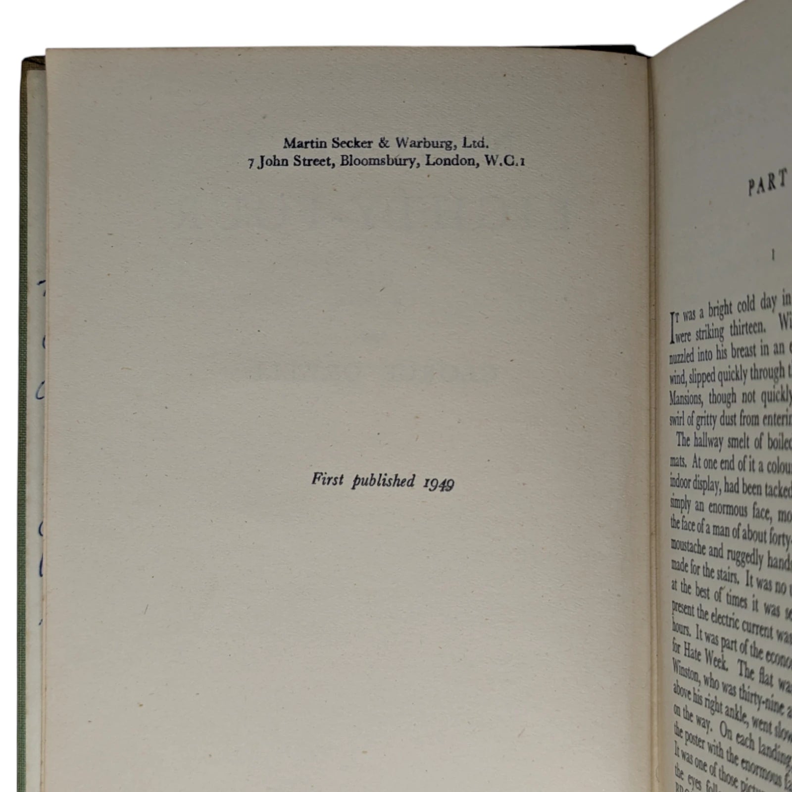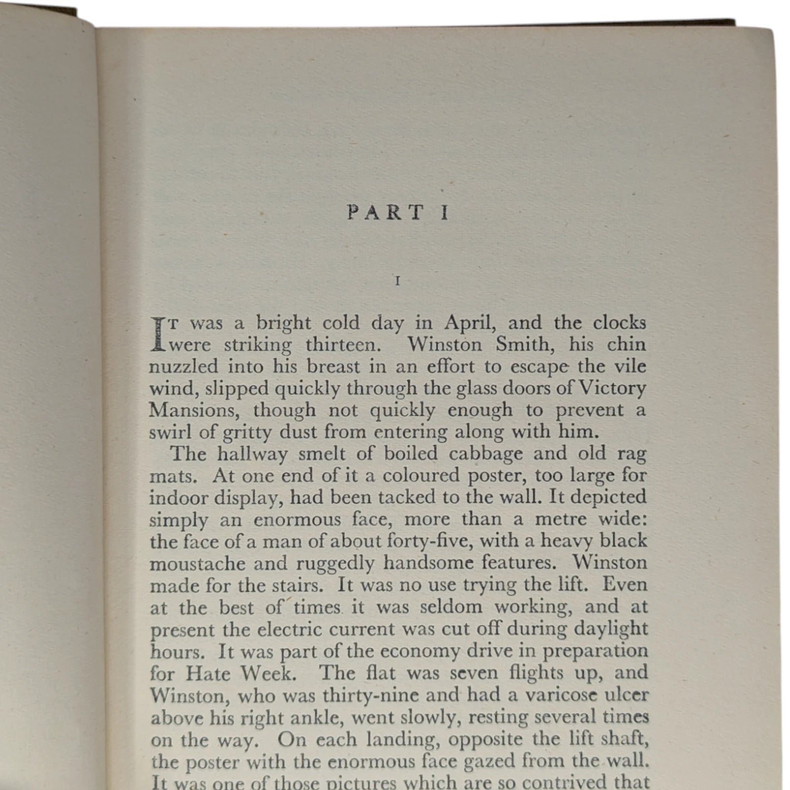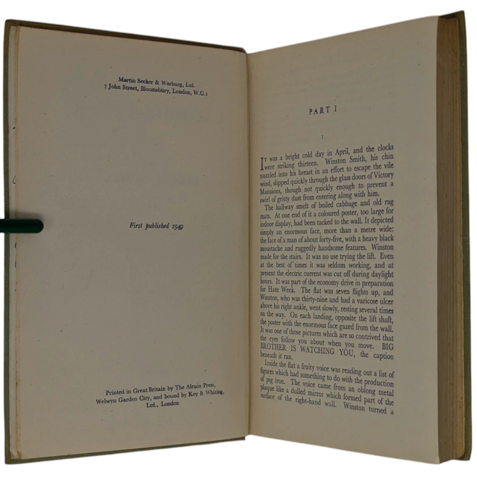 ORWELL, George. Nineteen Eighty-Four. London: Secker & Warburg, 1949. First edition, first printing of the author's iconic novel.
