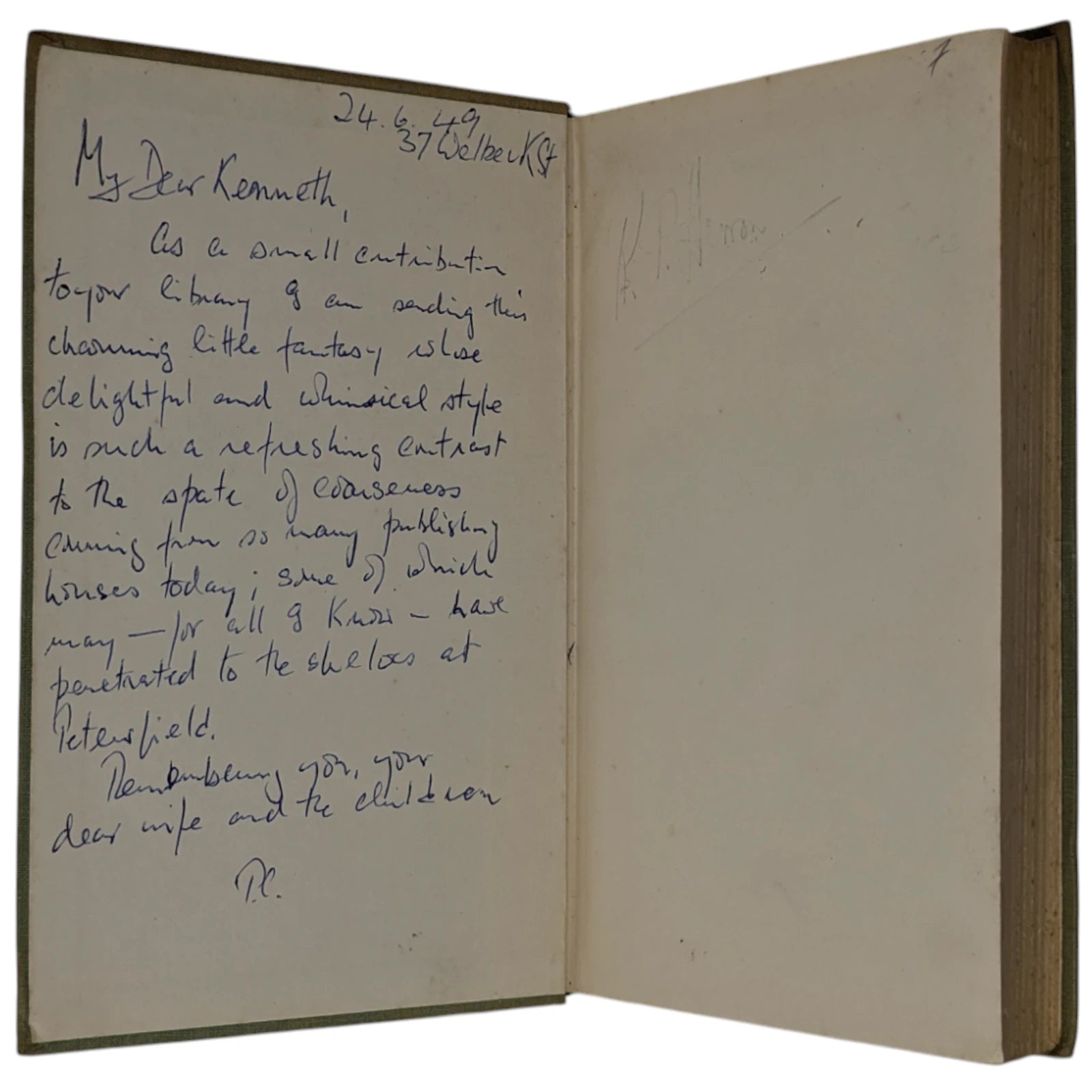 Publisher's green cloth, red lettering to spine, top edge dyed red; no dust jacket. This is a good copy, binding with a slight lean but secure, covers lightly marked with a larger faded stain to rear, sunning and spotting to spine, some foxing spots to the closed text block, and a little wear and bumping to spine tips and corners. Internally clean and bright with only a large inscription penned to front paste-down and small name written on the FFEP. Still a bright, tight copy of this increasingly scarcer edition.