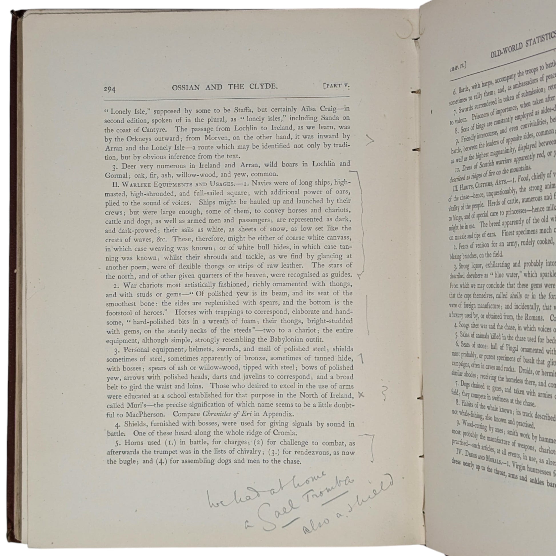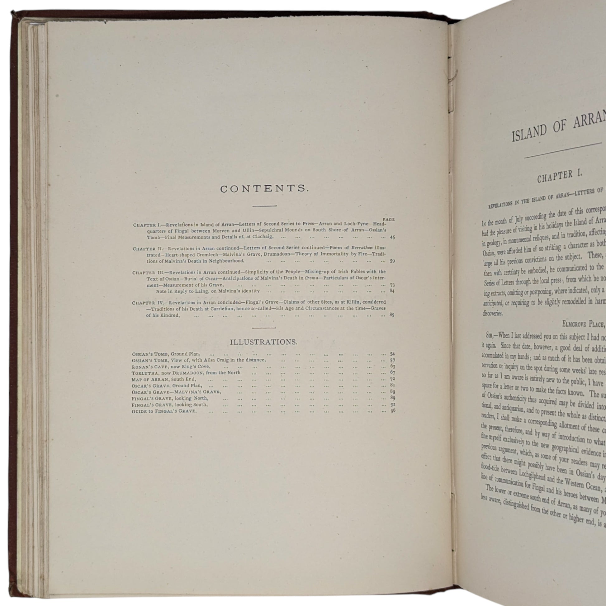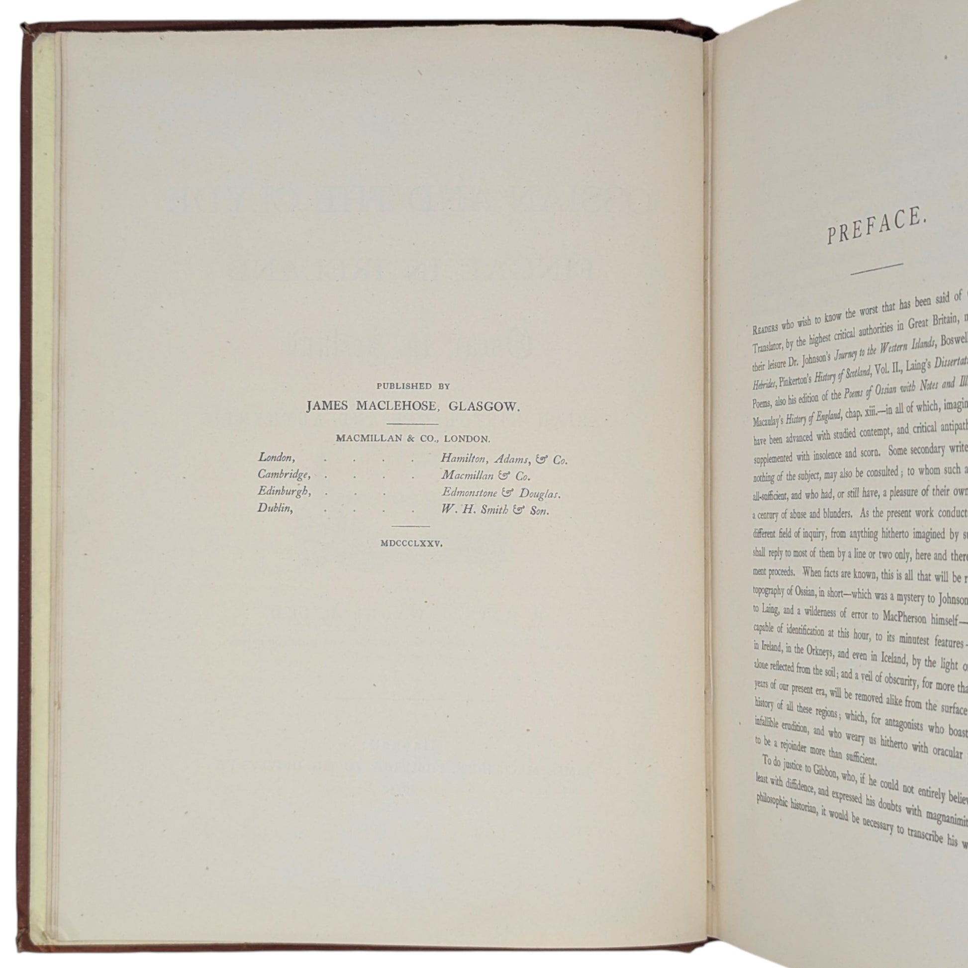 First Edition and Presentation Copy of this scarce work detailing a Scottish cleric's attempt to confirm the authenticity of the Ossianic poems by the identification of topographical references that could not be known to James Macpherson. Inscribed and dedicated by the author to Miss Mary Wilson in 1876. A rare work, particularly as an author presentation copy.