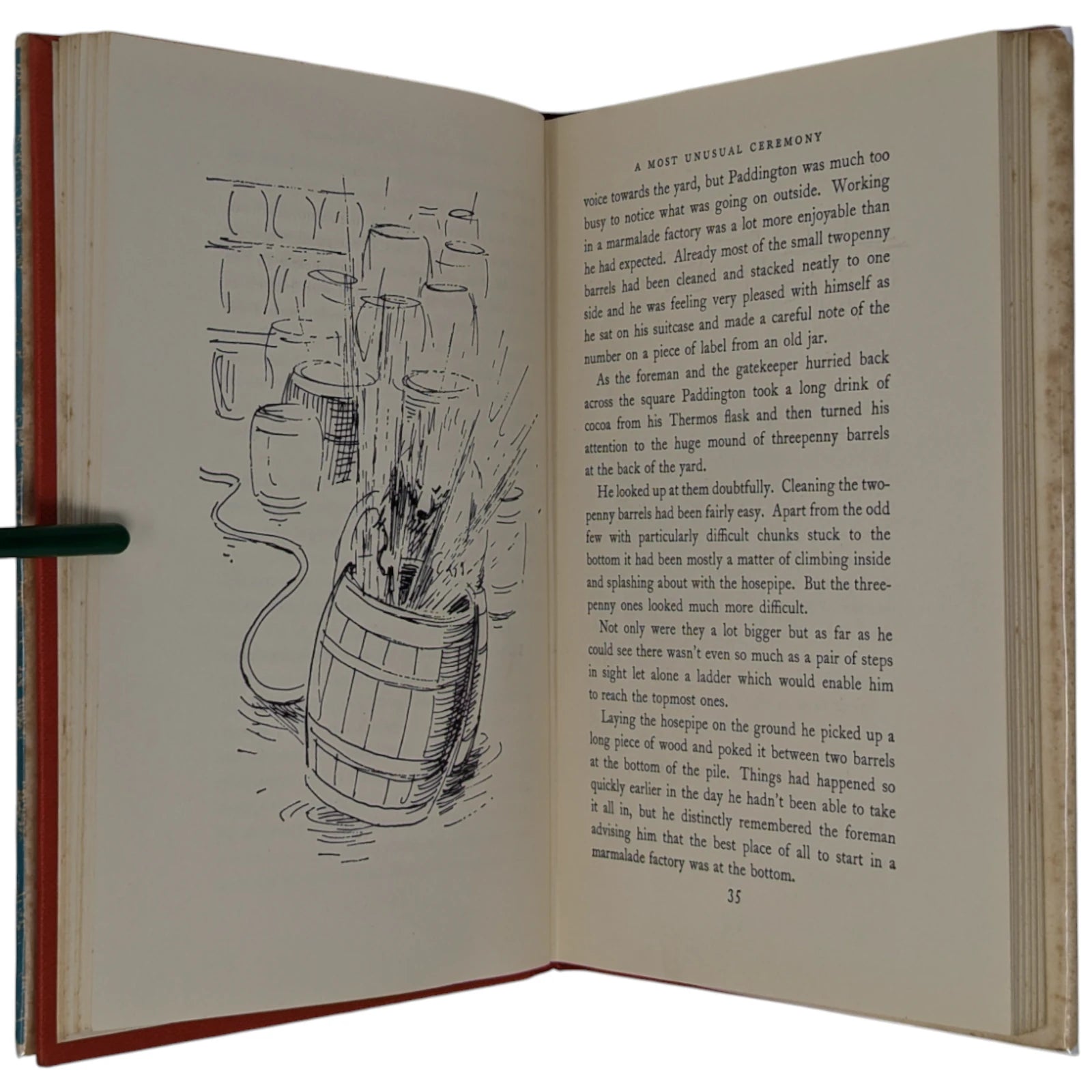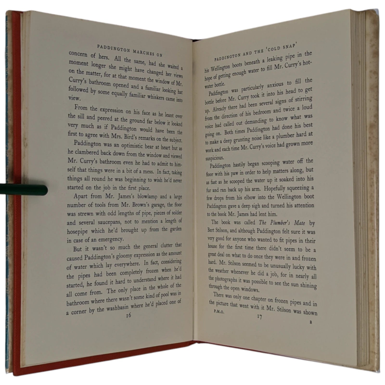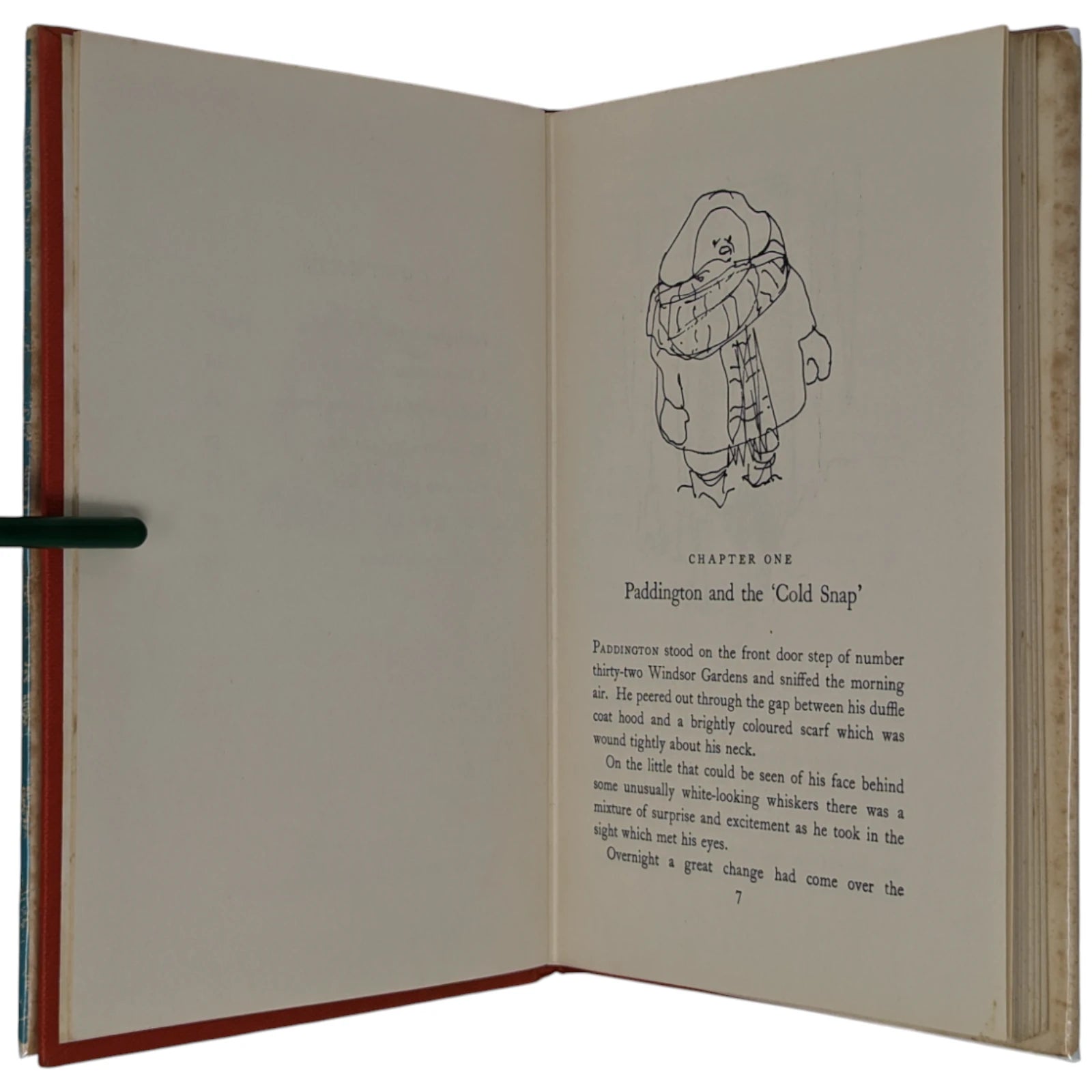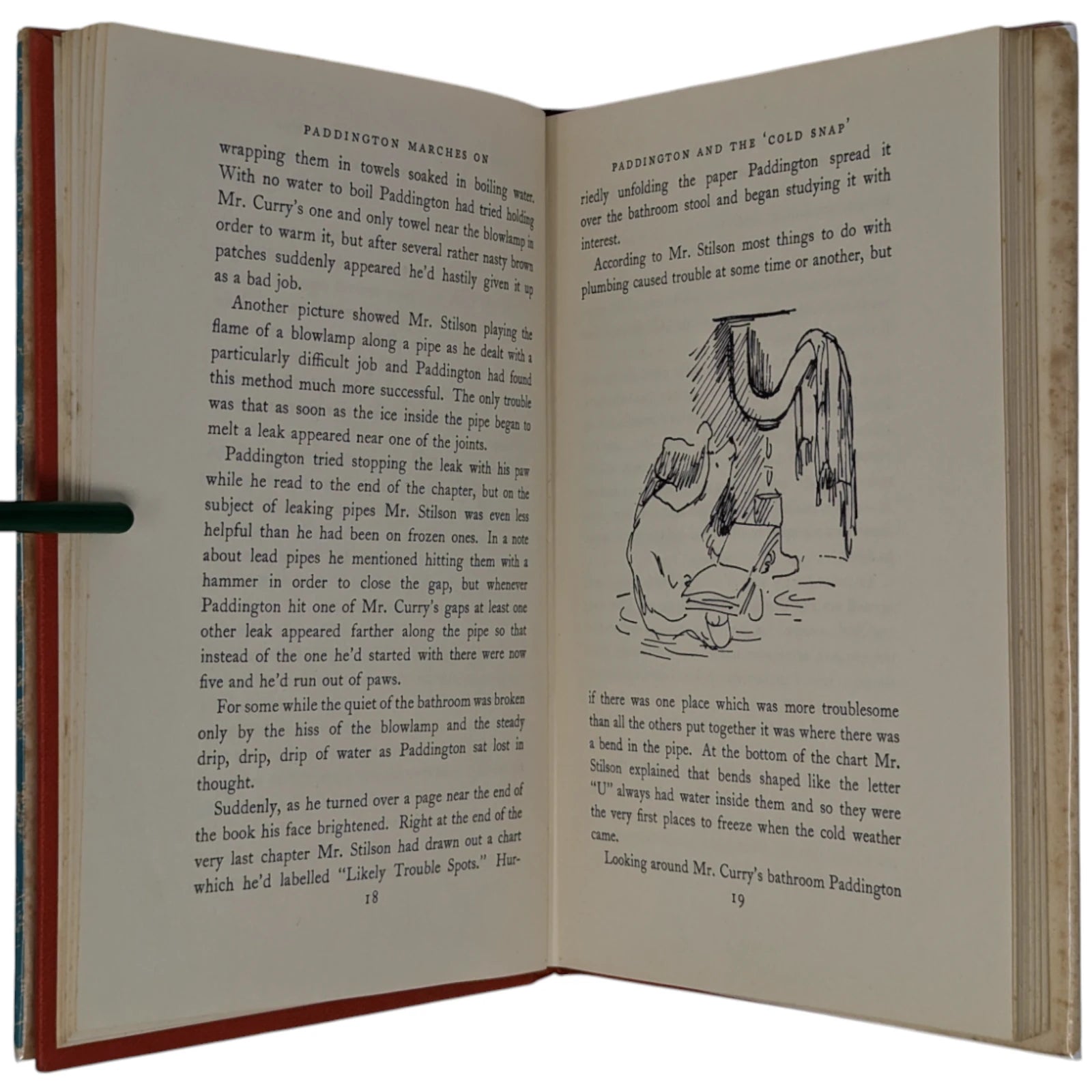 Paddington Marches On, by Michael Bond. London: Collins, 1964. First edition, first impression. Pp. 127. Publisher's binding, silver titles to spine, plain endpapers; in unclipped dust wrapper showing price 9s 6d to front flap.