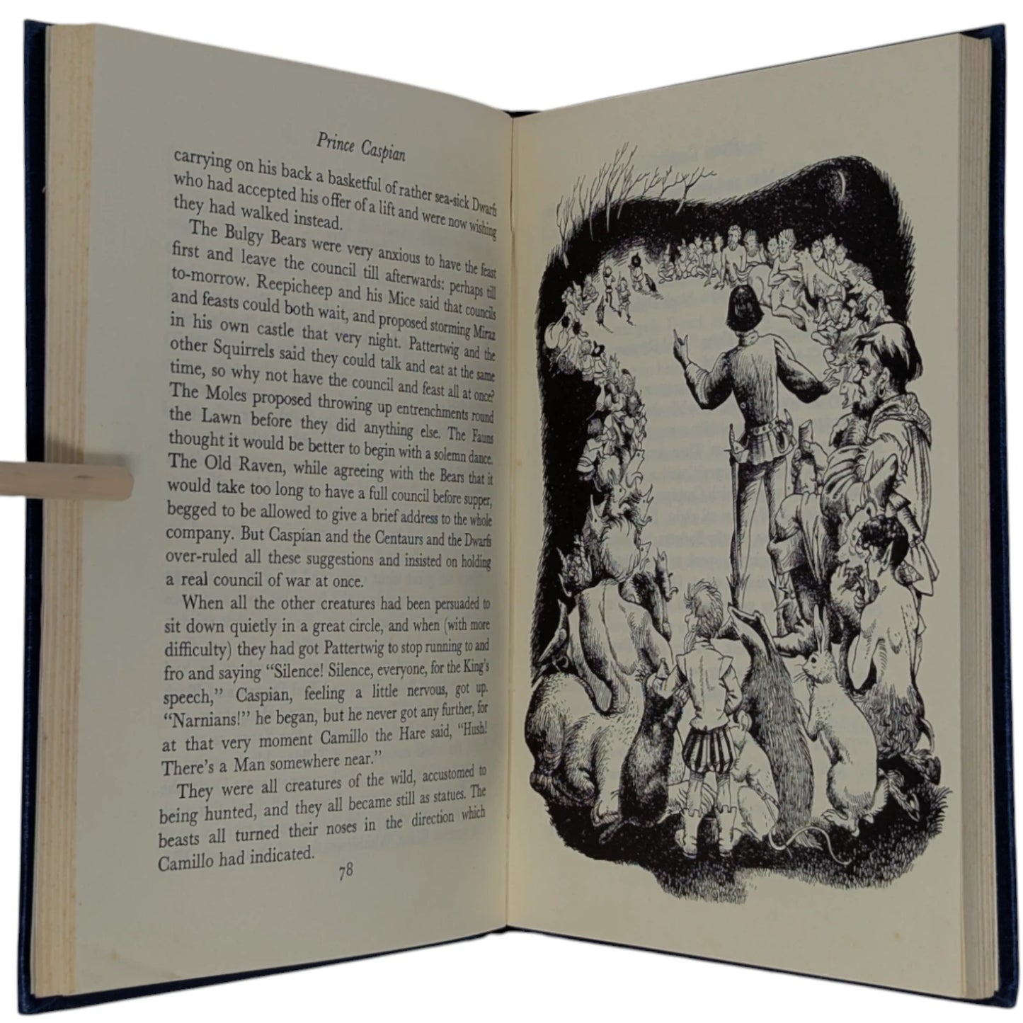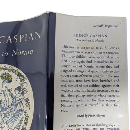 A first edition, seventh printing copy of the story of The Pevensie siblings who return to Narnia to help Prince Caspian reclaim his rightful throne and restore peace to a land under tyranny.
