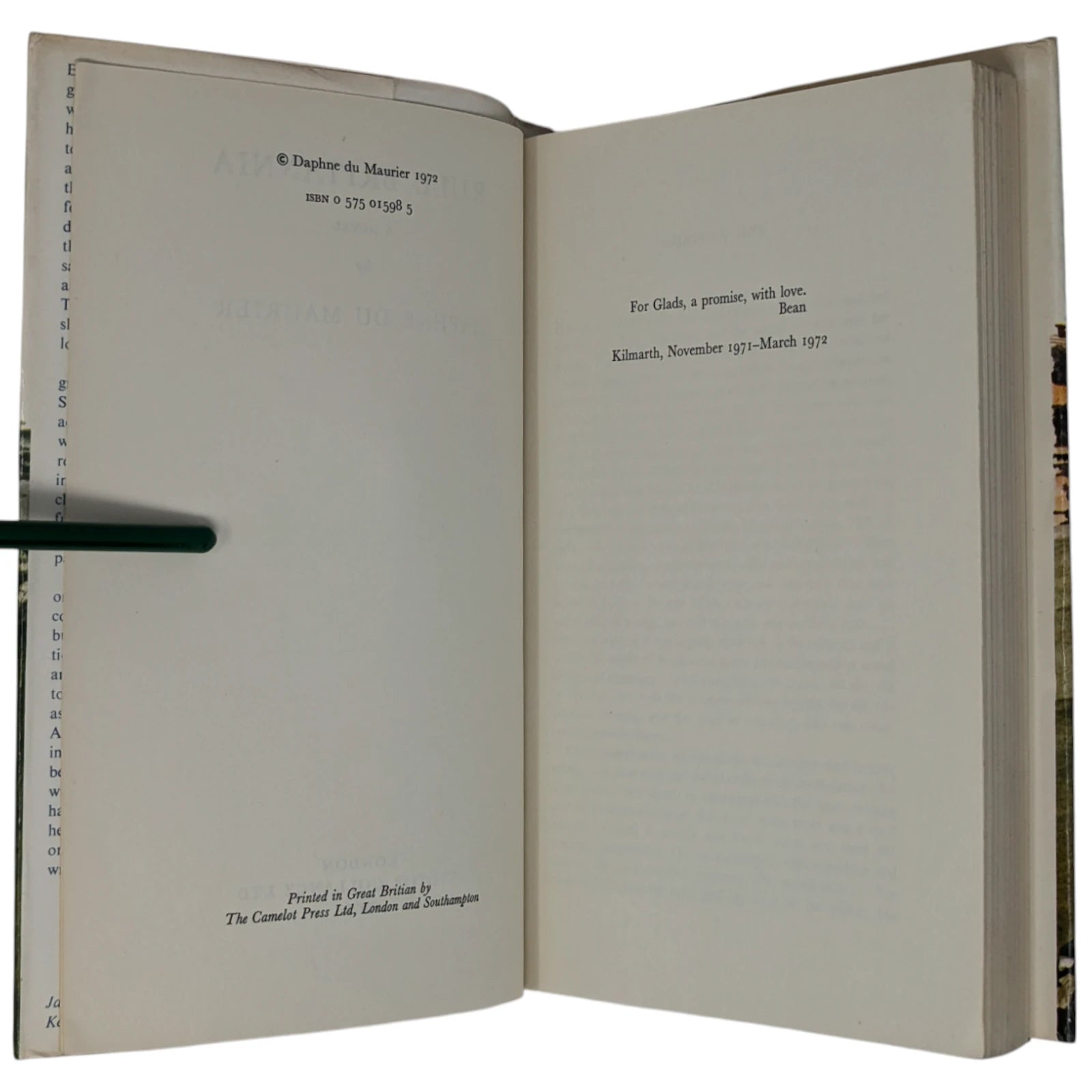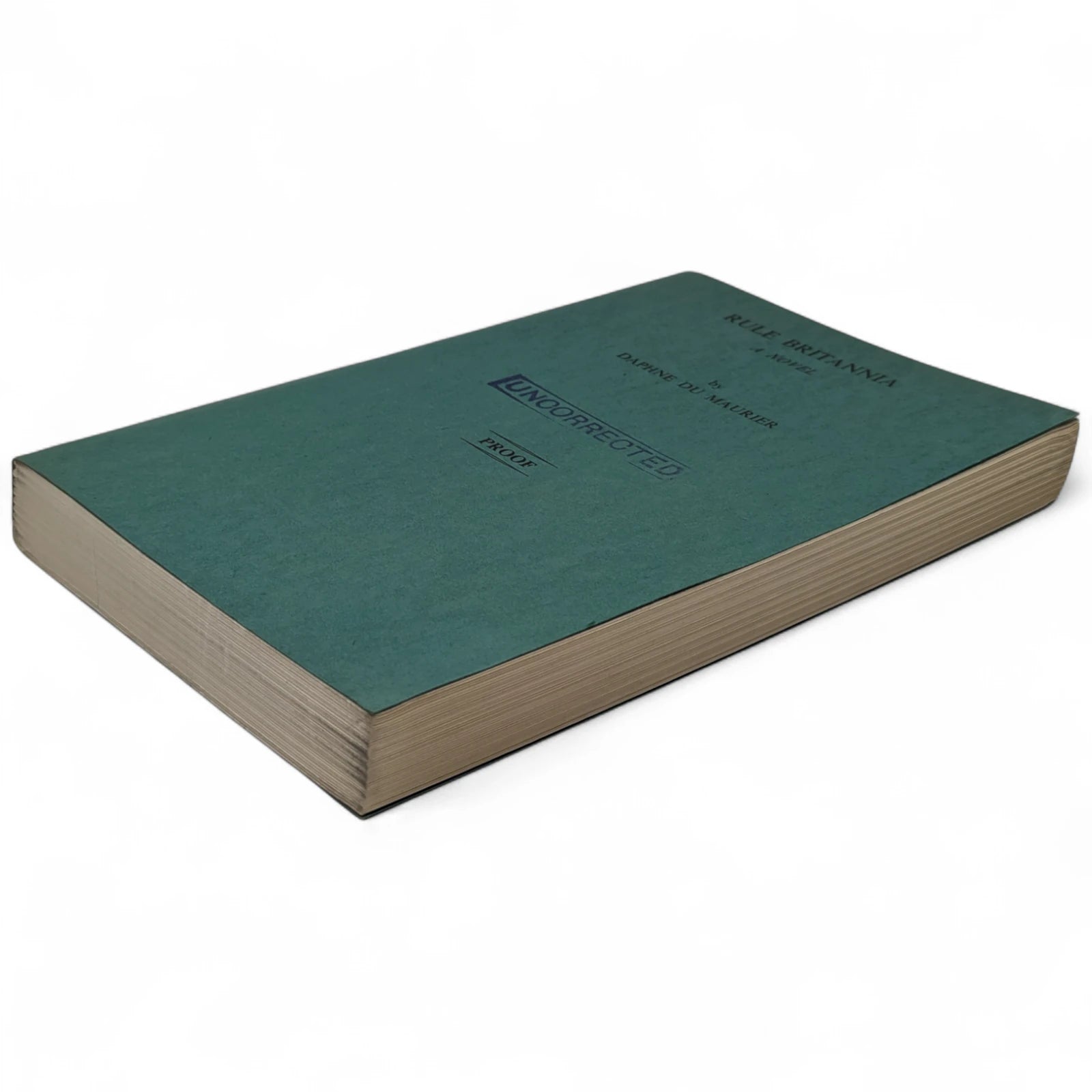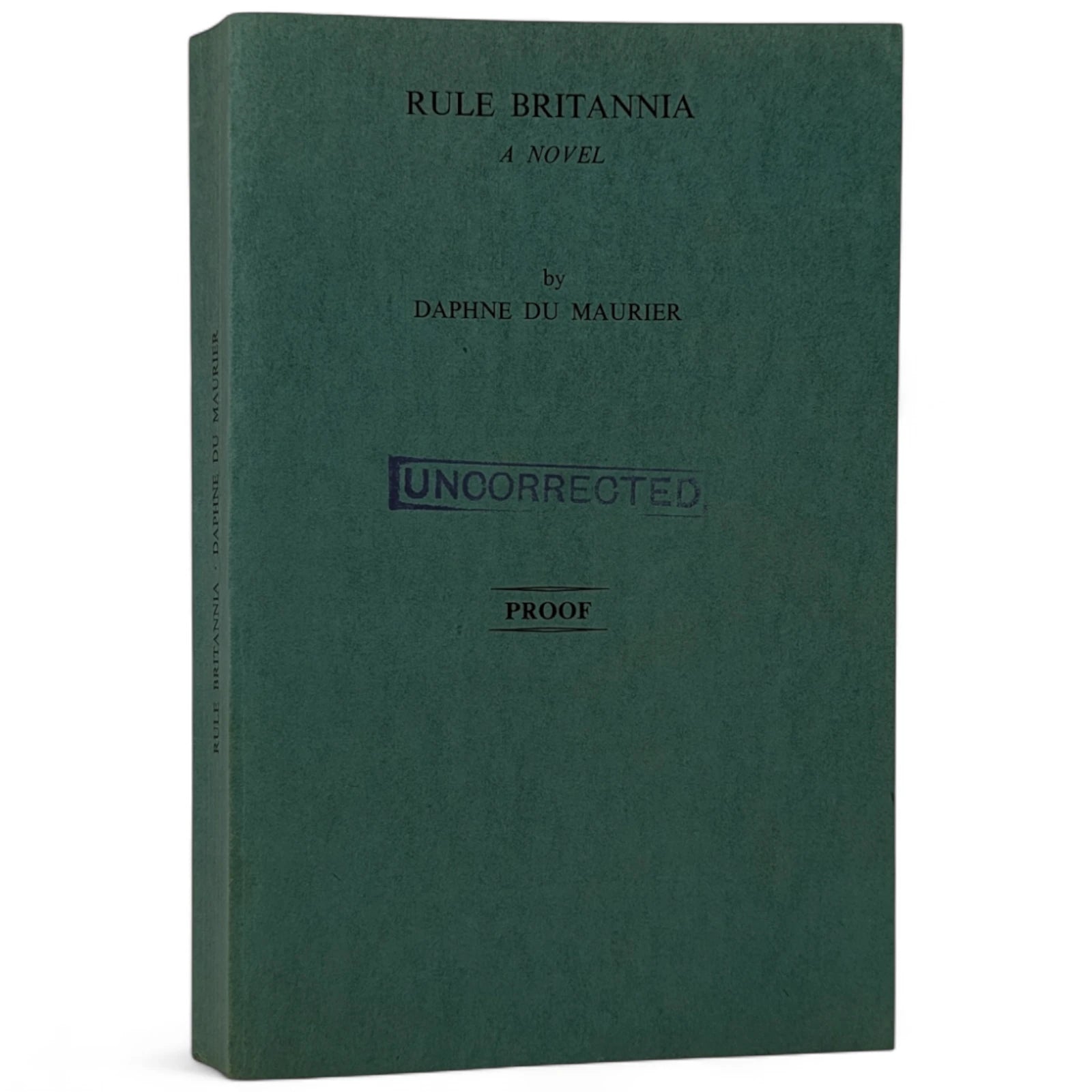 Rare uncorrected proof, with publisher's compliments slip containing publication date (October 16th) and price (£1.90), as well as publisher's letter to bookshops stating that the novel is proving more popular than Du Maurier's previous bestseller (The House on The Strand) and is a must-read for those who care about the future of Britain. Paperback copy with green covers and black lettering to front and spine, and 'Uncorrected' blue stamp to front cover; with clipped, loose-fitting dust jacket with an illustration by Keith Ritchens. Slightly cocked and dusty to the closed text block, with the dustwrapper a little creased to extremities.