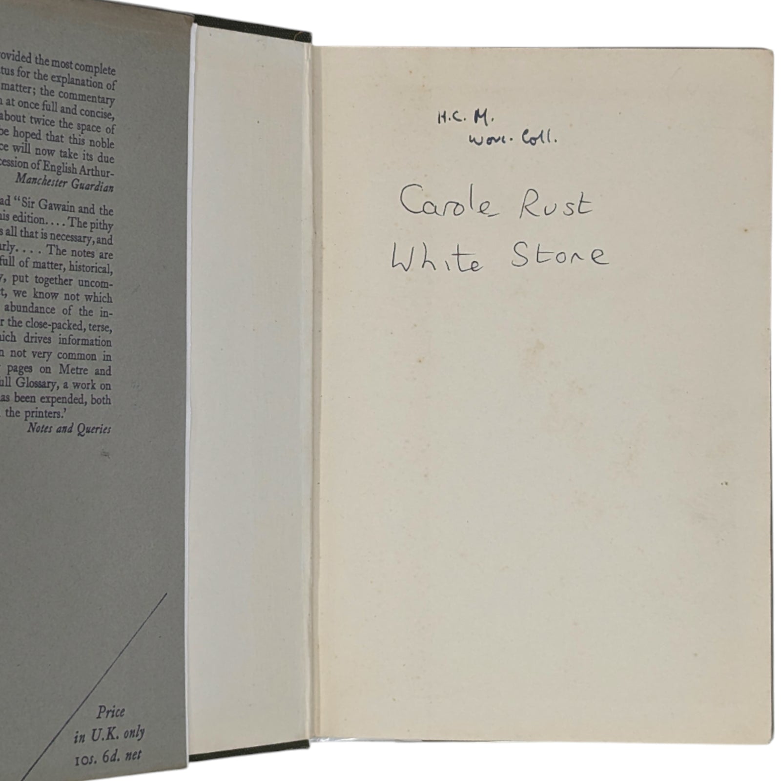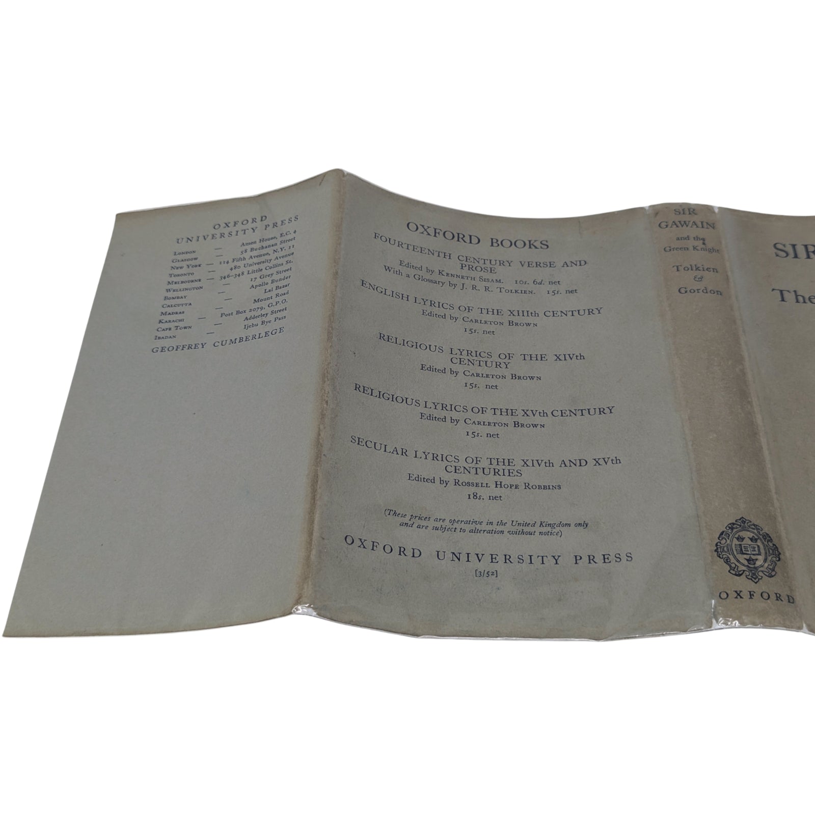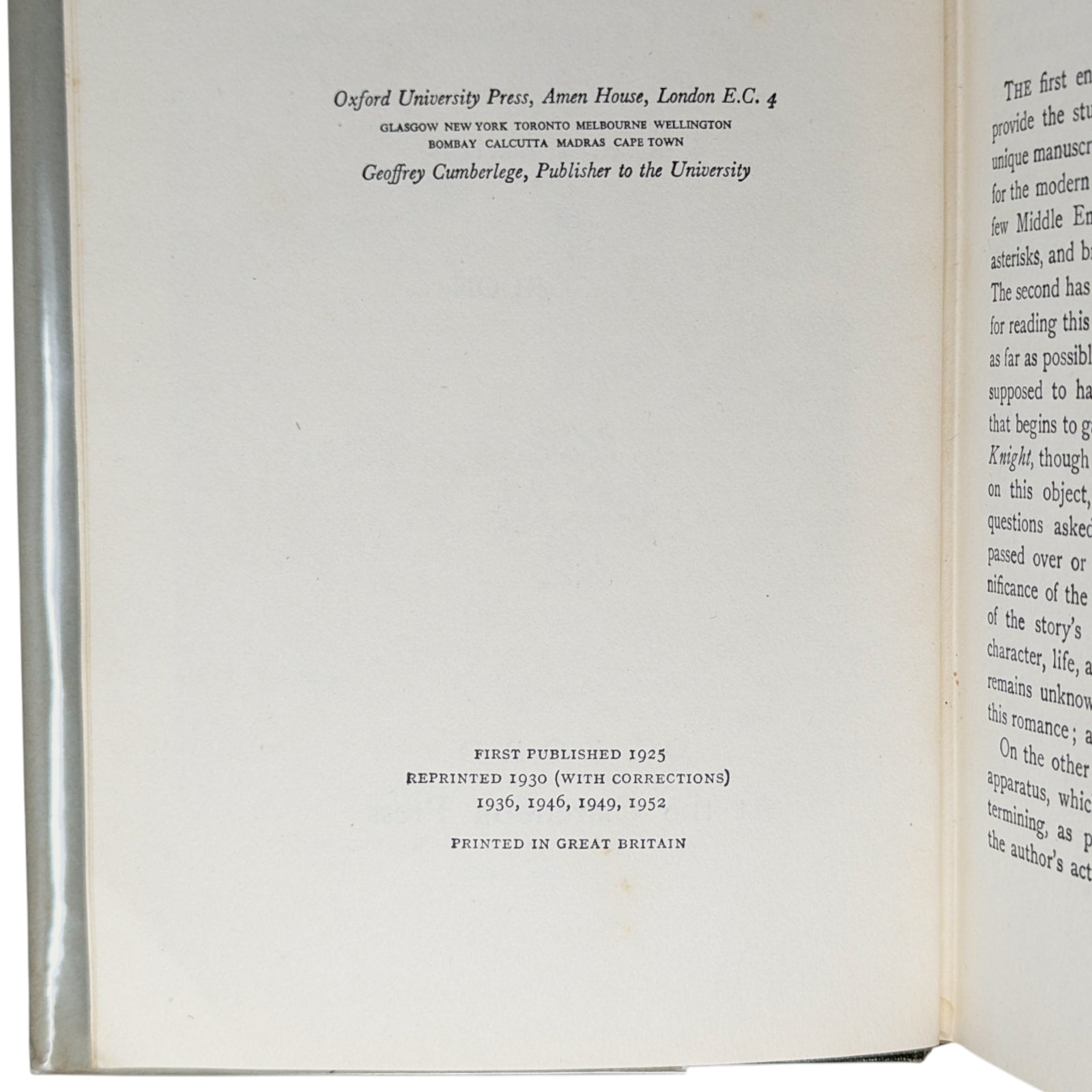 Post-war reprint of this first edition co-edited by J. R. R. Tolkien and E. V., not often found in a complete dust wrapper. Publisher's green cloth with gilt lettering to spine, plain endpapers; with unclipped (10s. 6d. net) dust wrapper. Pp. 211.