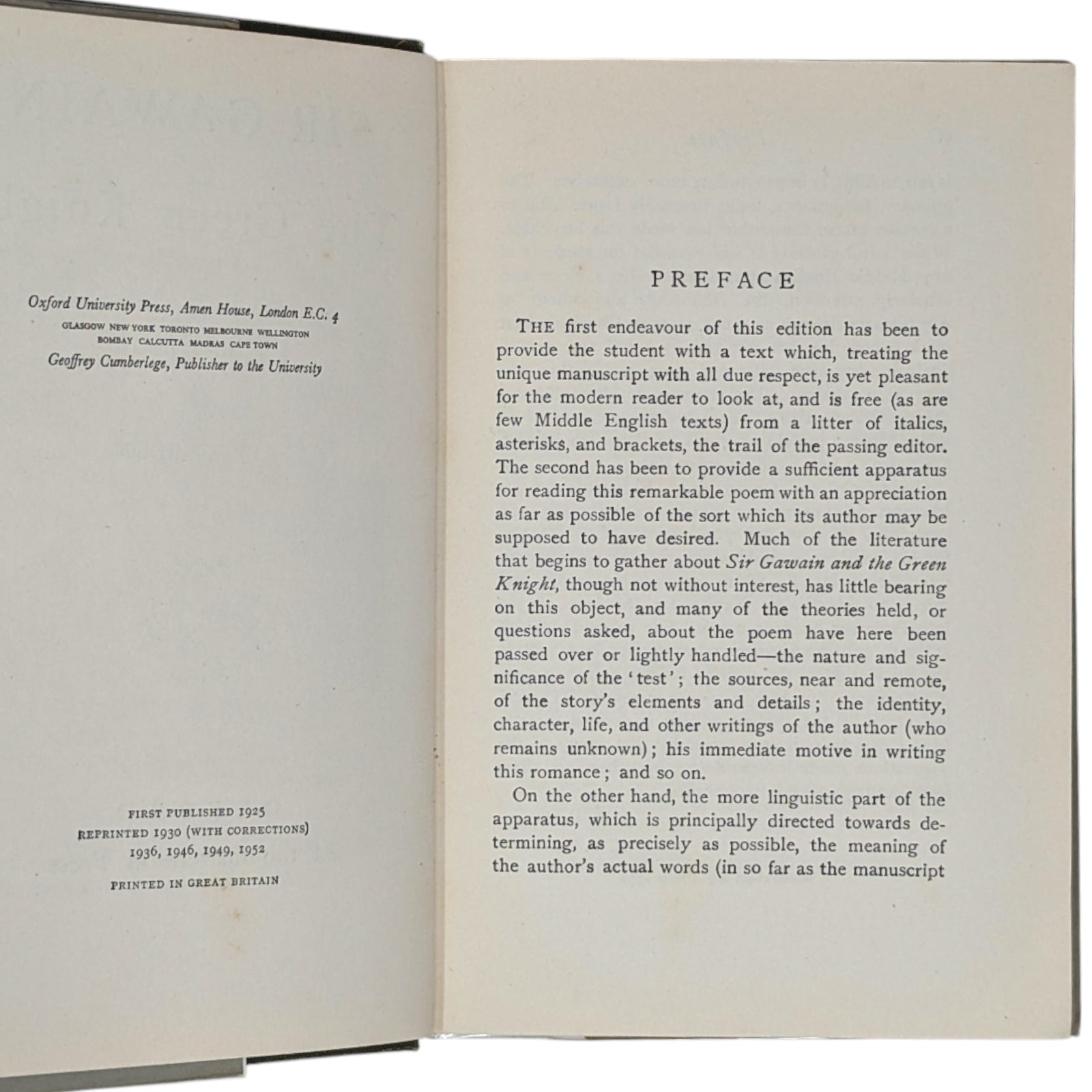 Sir Gawain & The Green Knight, edited by J. R. R. Tolkien and E. V. Gordon. Oxford at the Clarendon Press, 1925, this being the 1952 reprint (with corrections).