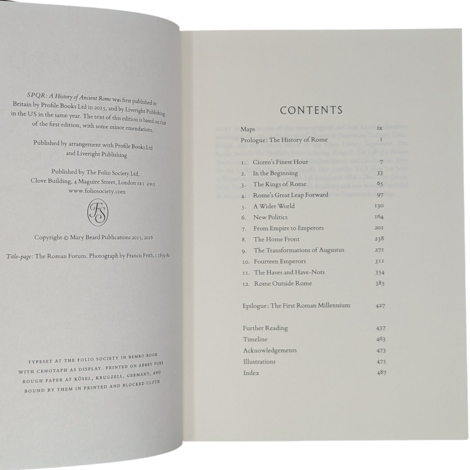 BEARD, Mary. SPQR (Senatus Populusque Romanus): A History of Ancient Rome. London: The Folio Society, 2018. First printing thus.