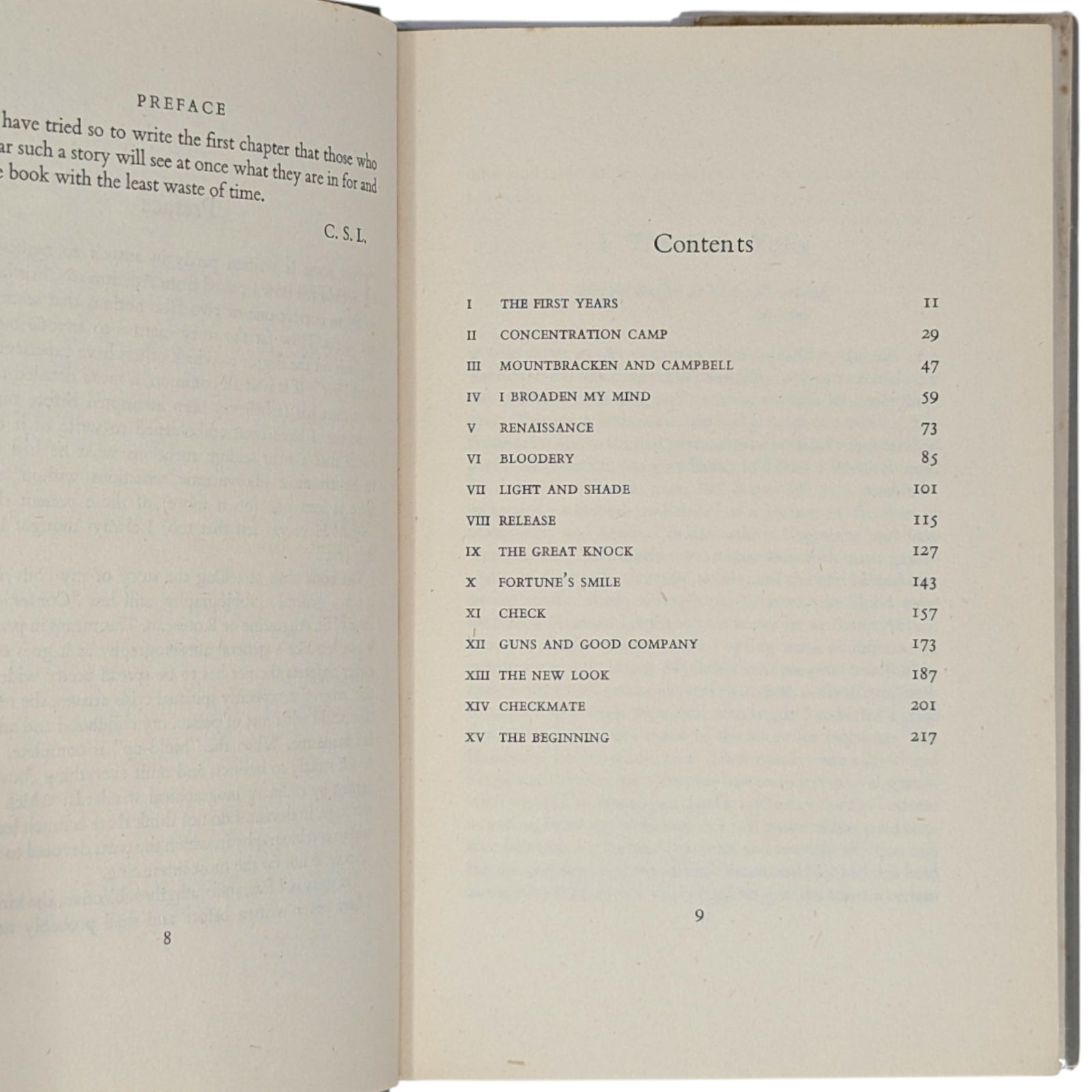 The author's auto-biographical work detailing his life from very early childhood until his conversion to Christianity in 1931. The title comes from William Wordsworth's poem "Surprised by Joy".