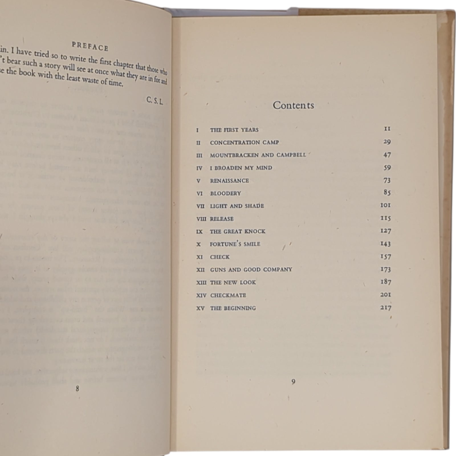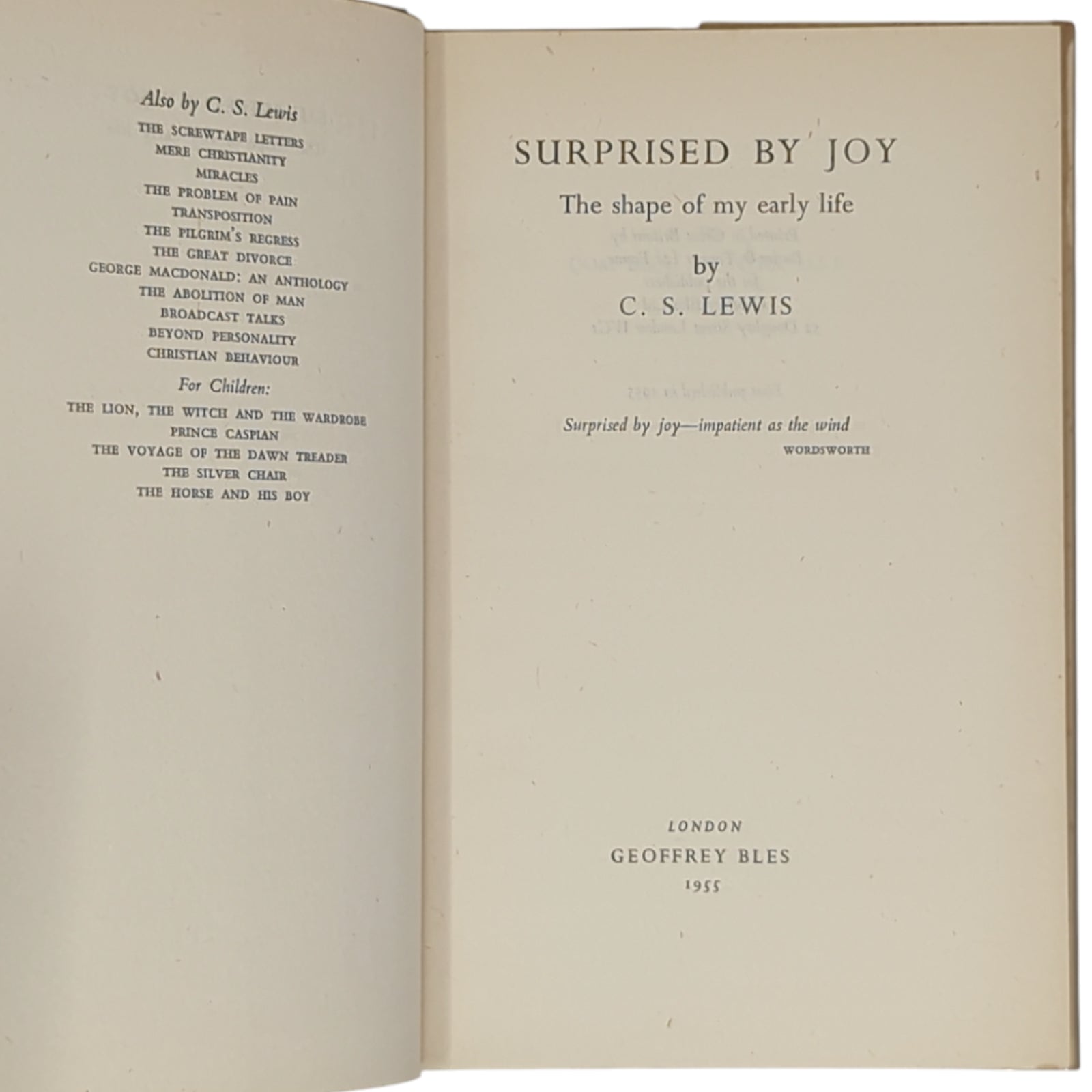 The author's auto-biographical work detailing his life from very early childhood until his conversion to Christianity in 1931. The title comes from William Wordsworth's poem "Surprised by Joy".