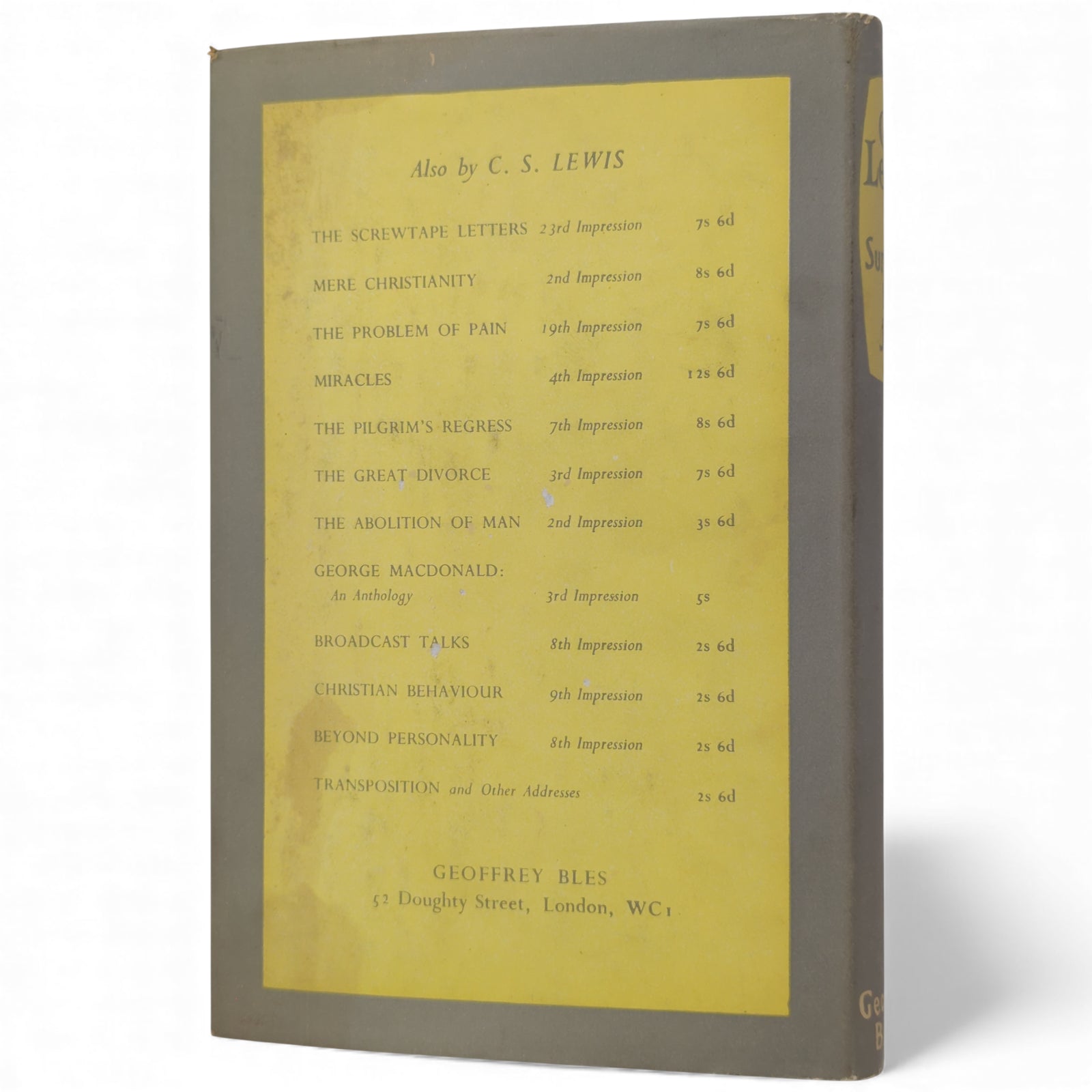 From the extensive C. S. Lewis collection of Mark Allaby; a collector, writer and poet who has contributed several pieces to Mythlore, a scholarly journal that focuses heavily on the works of C.S. Lewis, J.R.R. Tolkien, and Charles Williams.