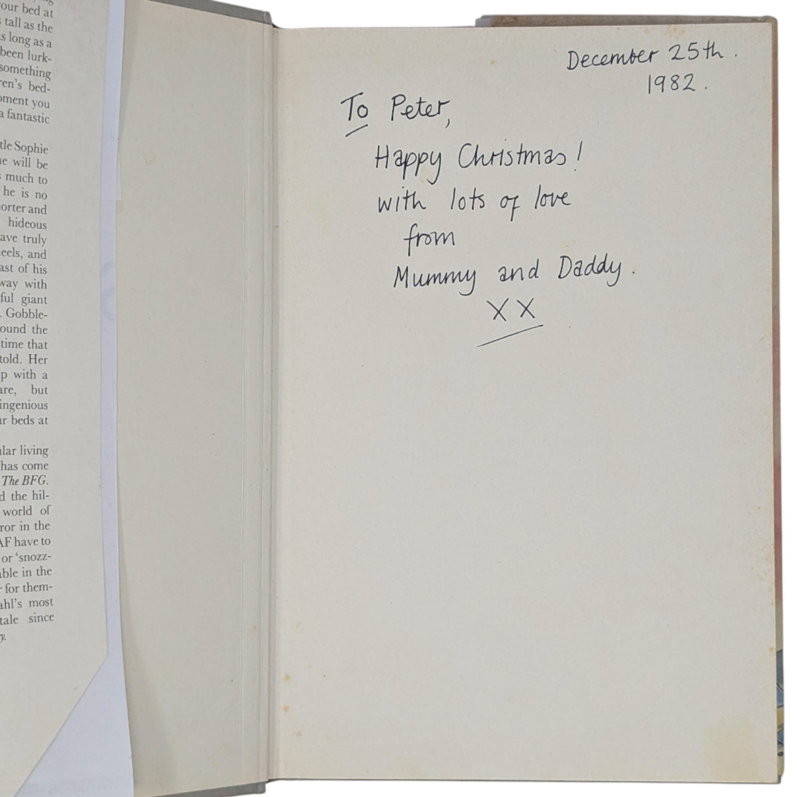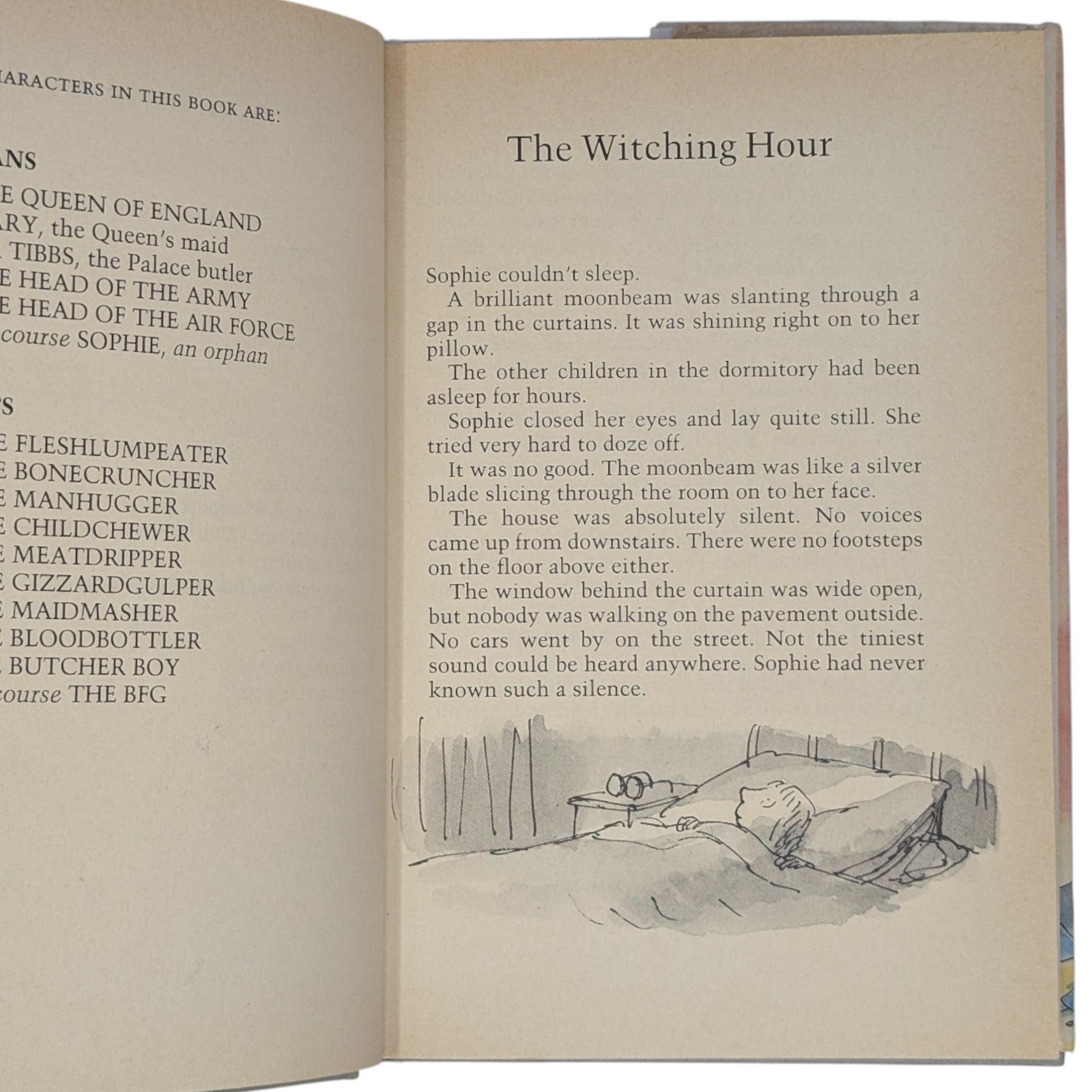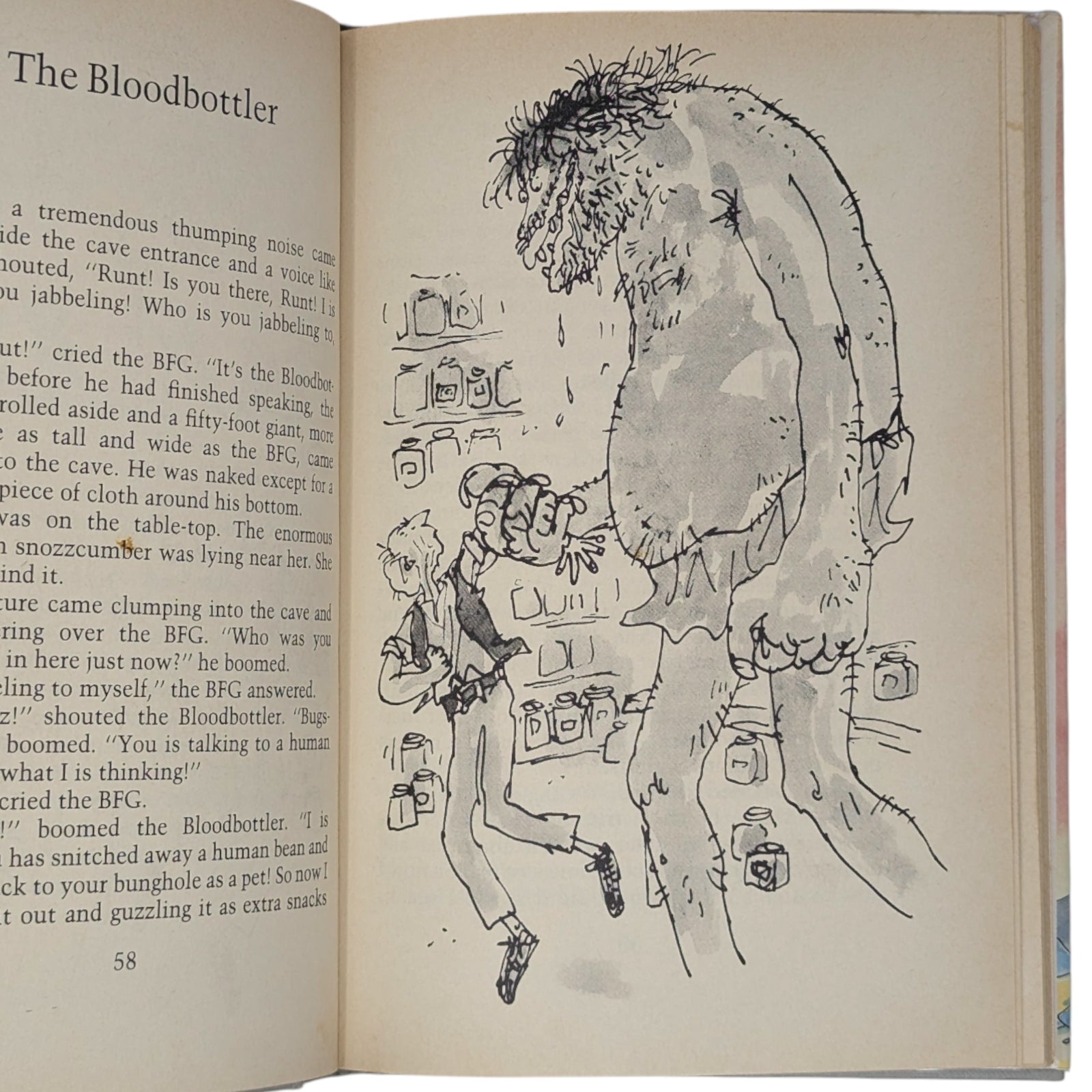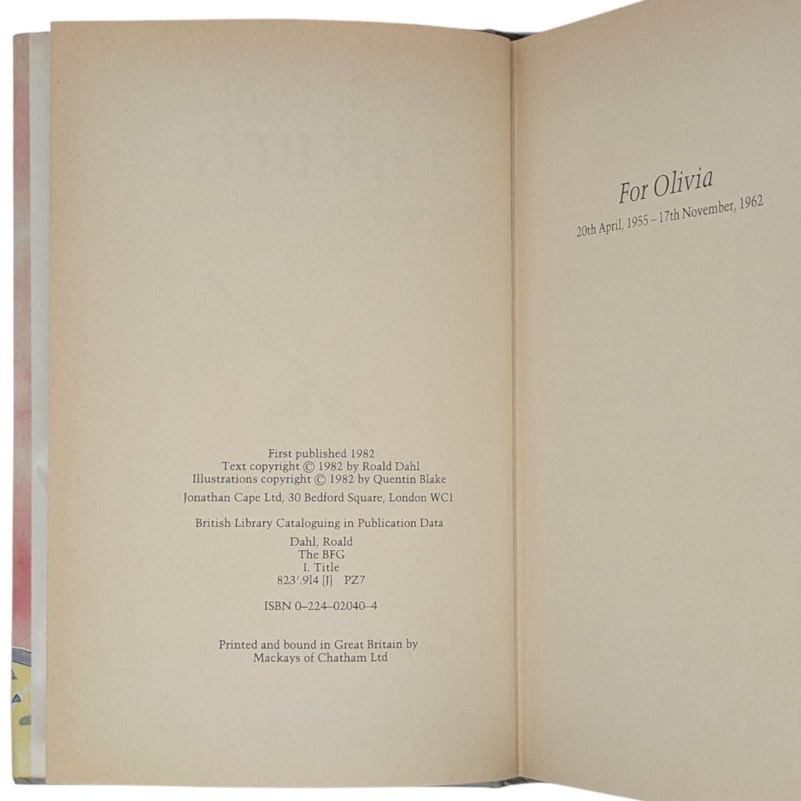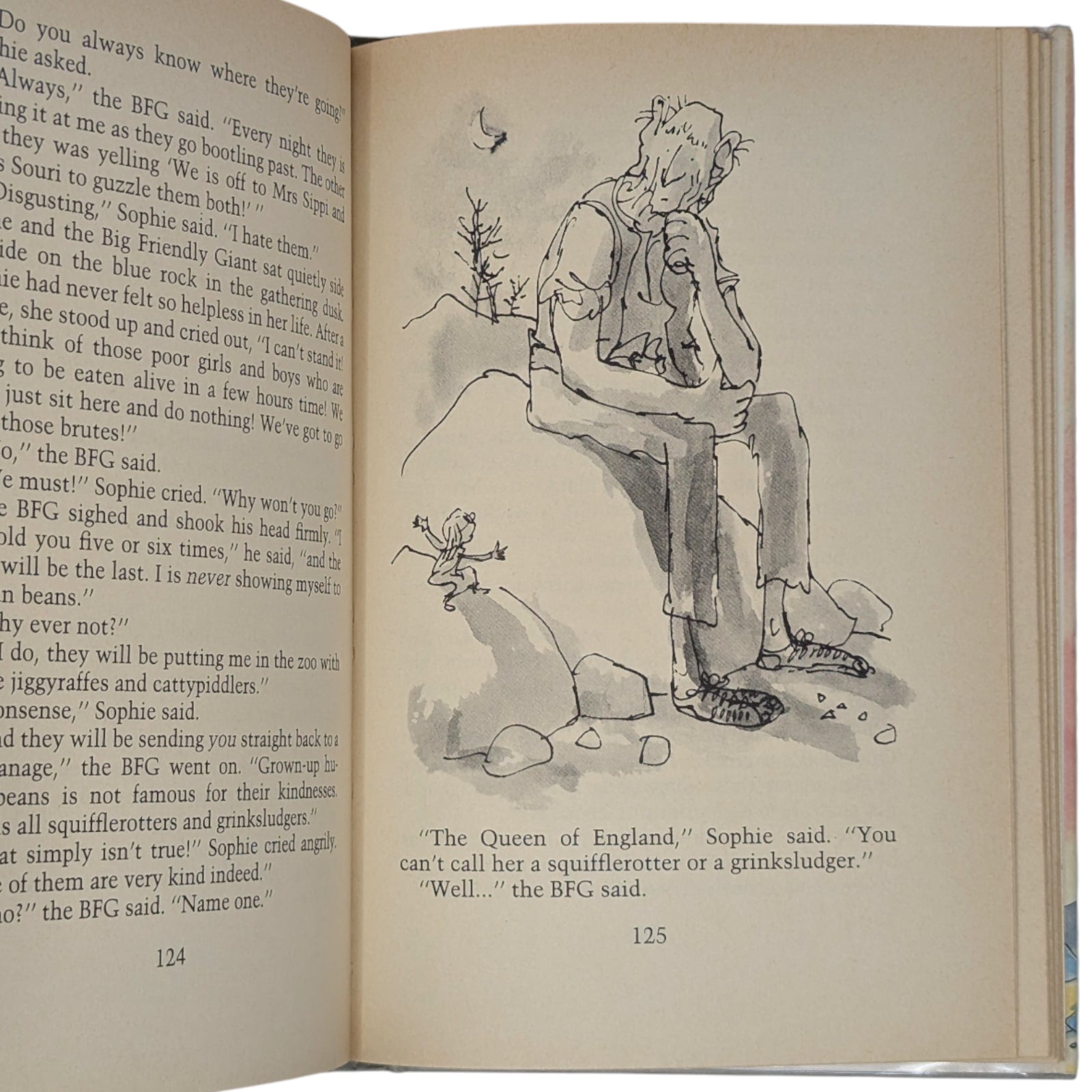 The BFG, by Roald Dahl. London: Jonathan Cape, 1982. First UK edition, first impression. Hardcover, 24.1 x 16.2 cm, pp. 224. Publisher's original gray binding, gilt lettering to spine, plain endpapers; in the original price-clipped dustwrapper.