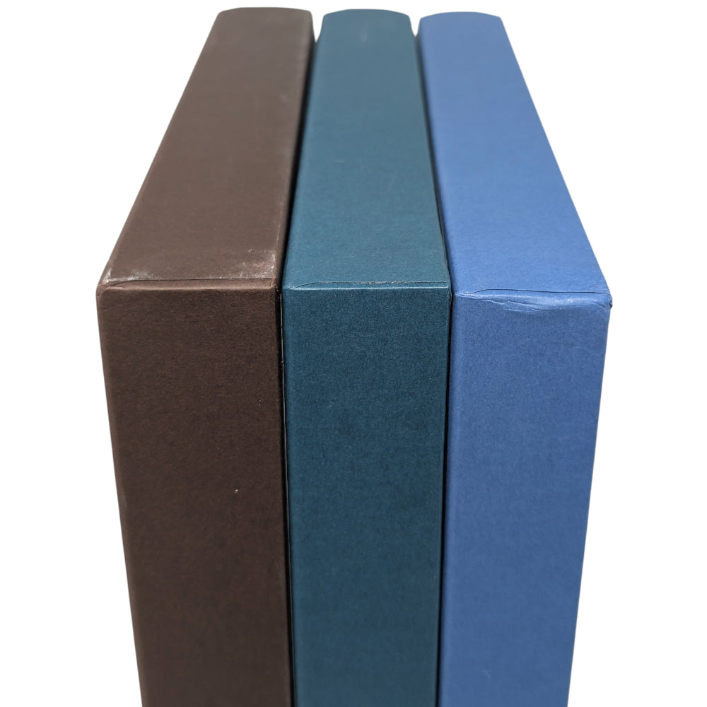 Near-fine copies, bindings square and firm, pages clean and bright, with lightest wear to the leather bindings and 'Inferno' with a small, innocuous mark to fore edge. In ever-so-slightly scuffed slipcases, the one for 'Paradiso' with a bump to rear. A really lovely set.