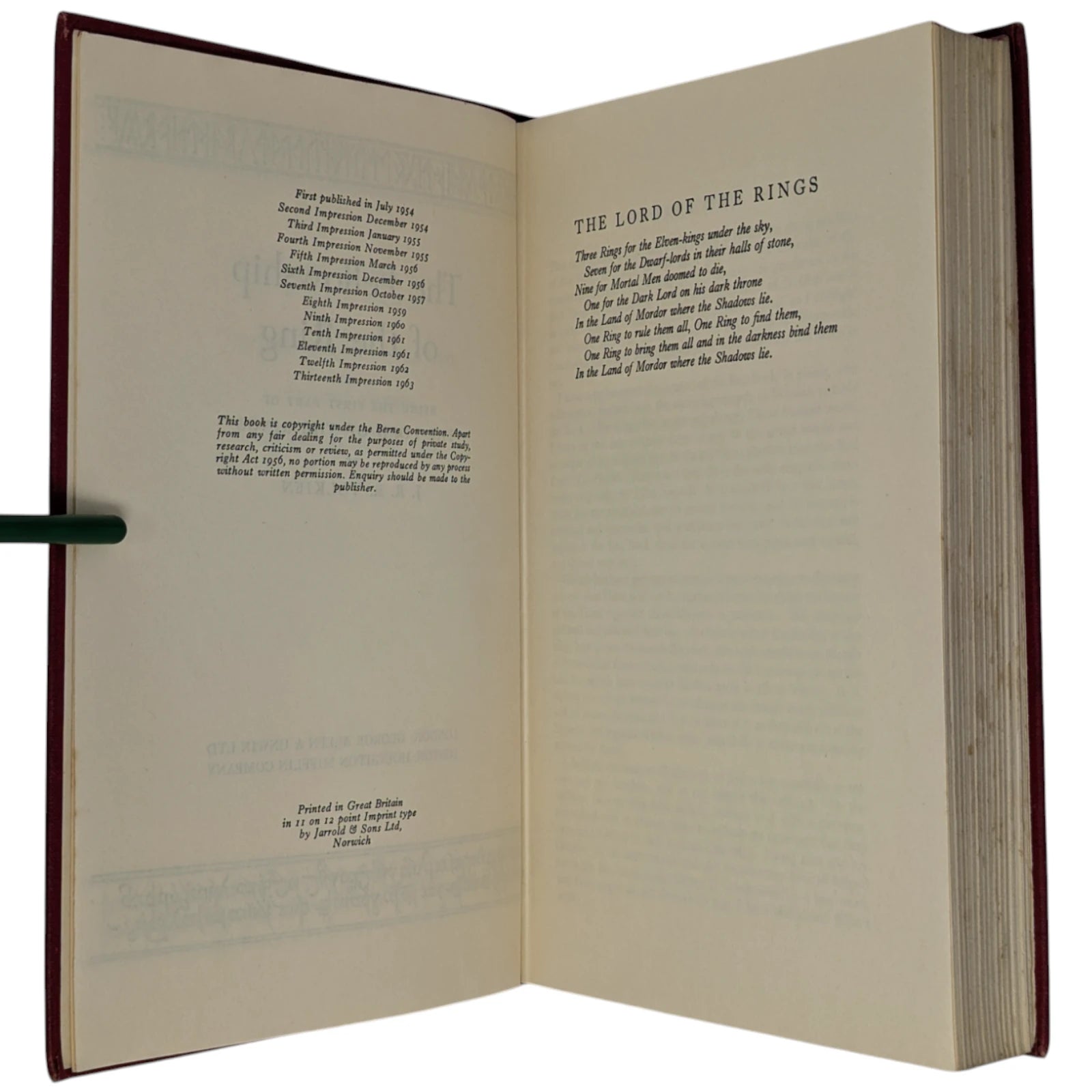 The Fellowship of the Ring, by J.R.R. Tolkien. London: George Allen & Unwin, 1963. First edition, 13th print.