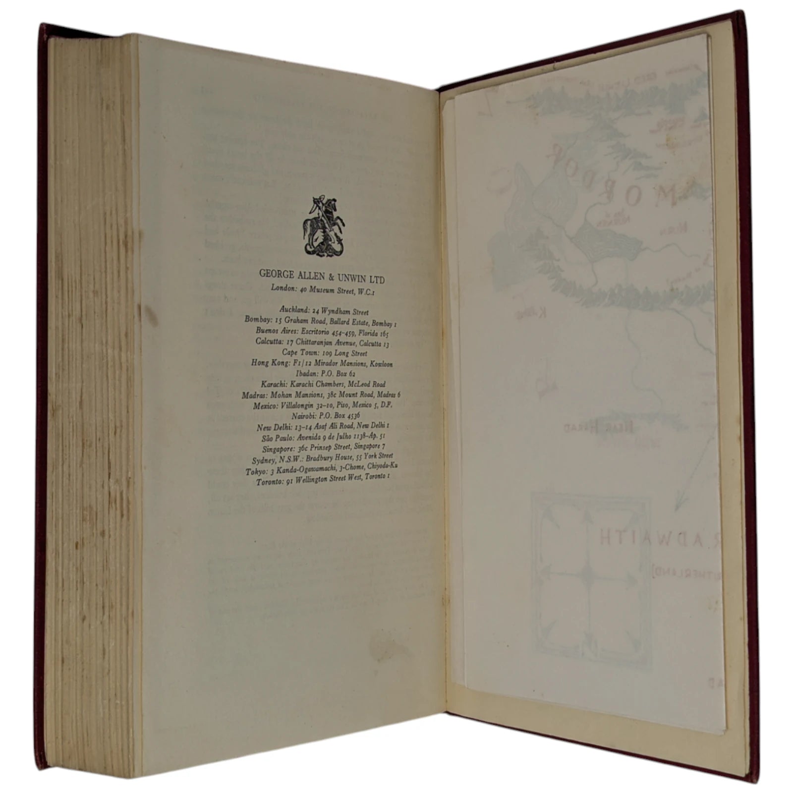 Poor condition, binding with a heavier lean but holding firm, covers stained and worn, foxing to the closed text block and sporadically throughout, small inscription in pen to FFEP, a couple of foxing spots and two small nicks to the right extremity of the map; else a clean book. No dustwrapper.