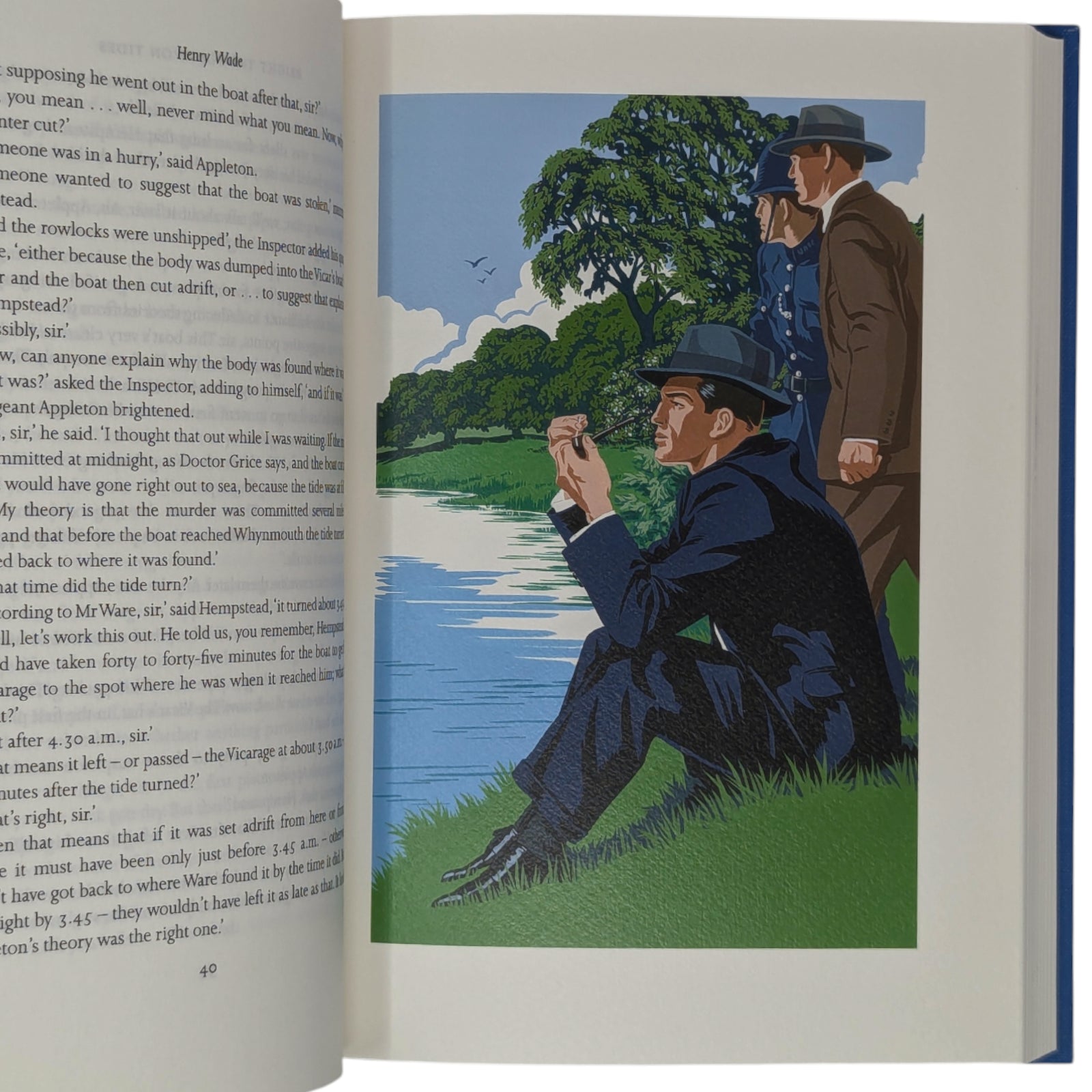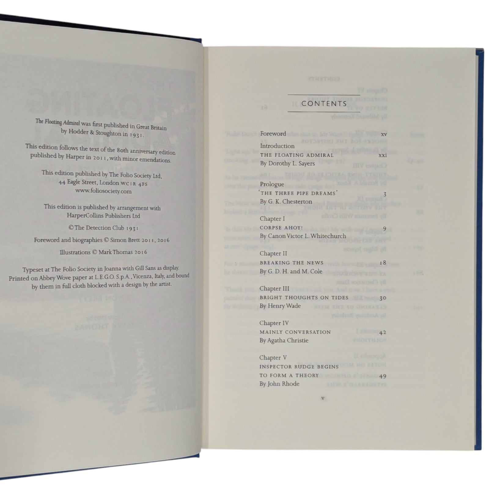 London: The Folio Society, 2016. First printing thus. Foreword by Simon Brett, illustrated by Mark Thomas. 228 × 164 × 28 mm. Pp. [i–iv] v–xxiv, [1–2] 3–247 [248]: [7] leaves of colour plates (facing pp. [iii], 40, 57, 88, 105, 168 and 201). Type: Joanna with Gill Sans for display. Printed and bound by L.E.G.O. in full pale blue cloth blocked in dark blue and cream with design by Thomas; dark blue endleaves. Dark blue slip case. Each author contributed one chapter.