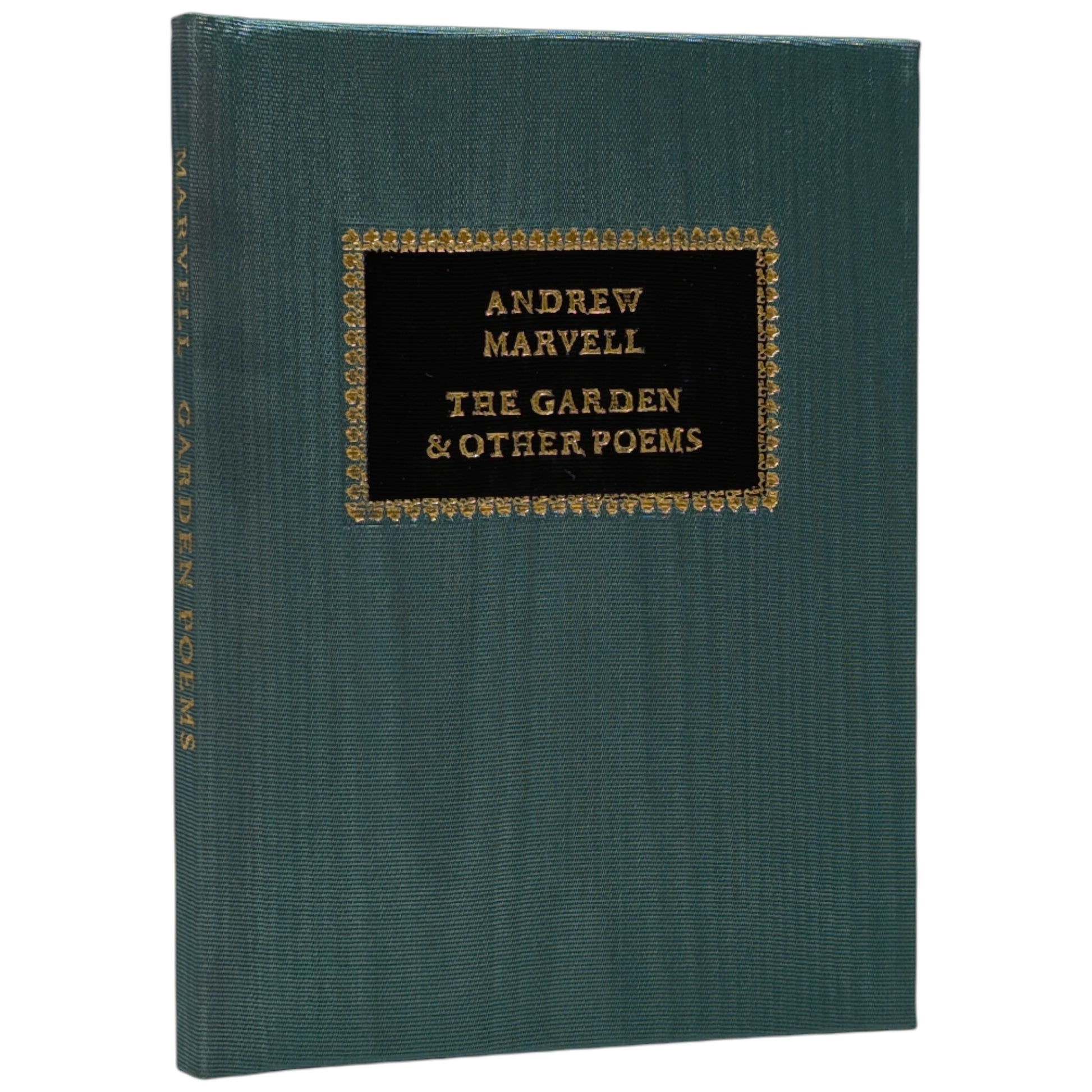 - MARVELL, Andrew. The Garden & Other Poems. London: The Folio Society, 1993. Andrew Marvell, the garden & other poems, [wood-] engravings by Harry Brockway. 115 × 85 × 7 mm. Pp. [1–32]. Type: Fournier. Typeset by Gloucester Typesetting, printed by the Bath Press. Bound by Hunter and Foulis in blue-green series binding; dark green endleaves. There are nine small wood-engravings by Brockway. This book had the honour to be chosen by Designer Bookbinders for their 1994 exhibition, staged to mark the centenary of the 1894 Tregaskis exhibition at which William Morris’s translation of The tale of King Florus & the fair Jehane, published by the Kelmscott Press, was the set book.