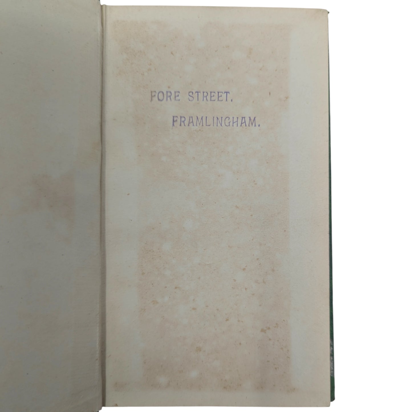 Publisher's blind-stamped cloth with a repeated pattern, picture to front, gilt titles to upper cover and spine; no dustwrapper. Scuffs to the binding and bumps to extremities, gilt a little rubbed, location stamp to FFEP (Fore Street, Framlingham), tear with unprofessional repair to the page featuring Miller's 1909 "ghost signature", a couple of breaks to gutter; else a clean example with pages well bound, and 39 pages used, with 9 remaining unused.